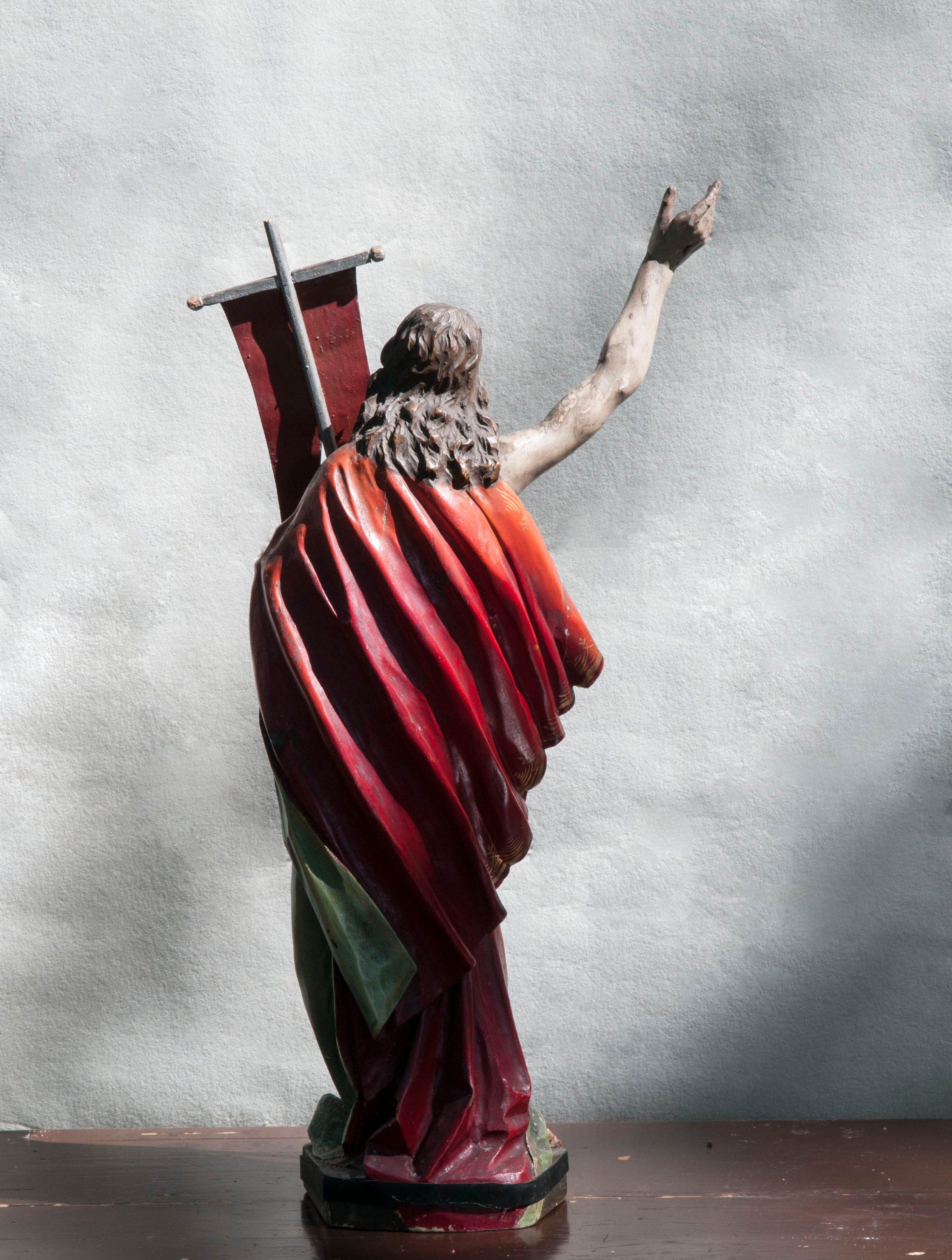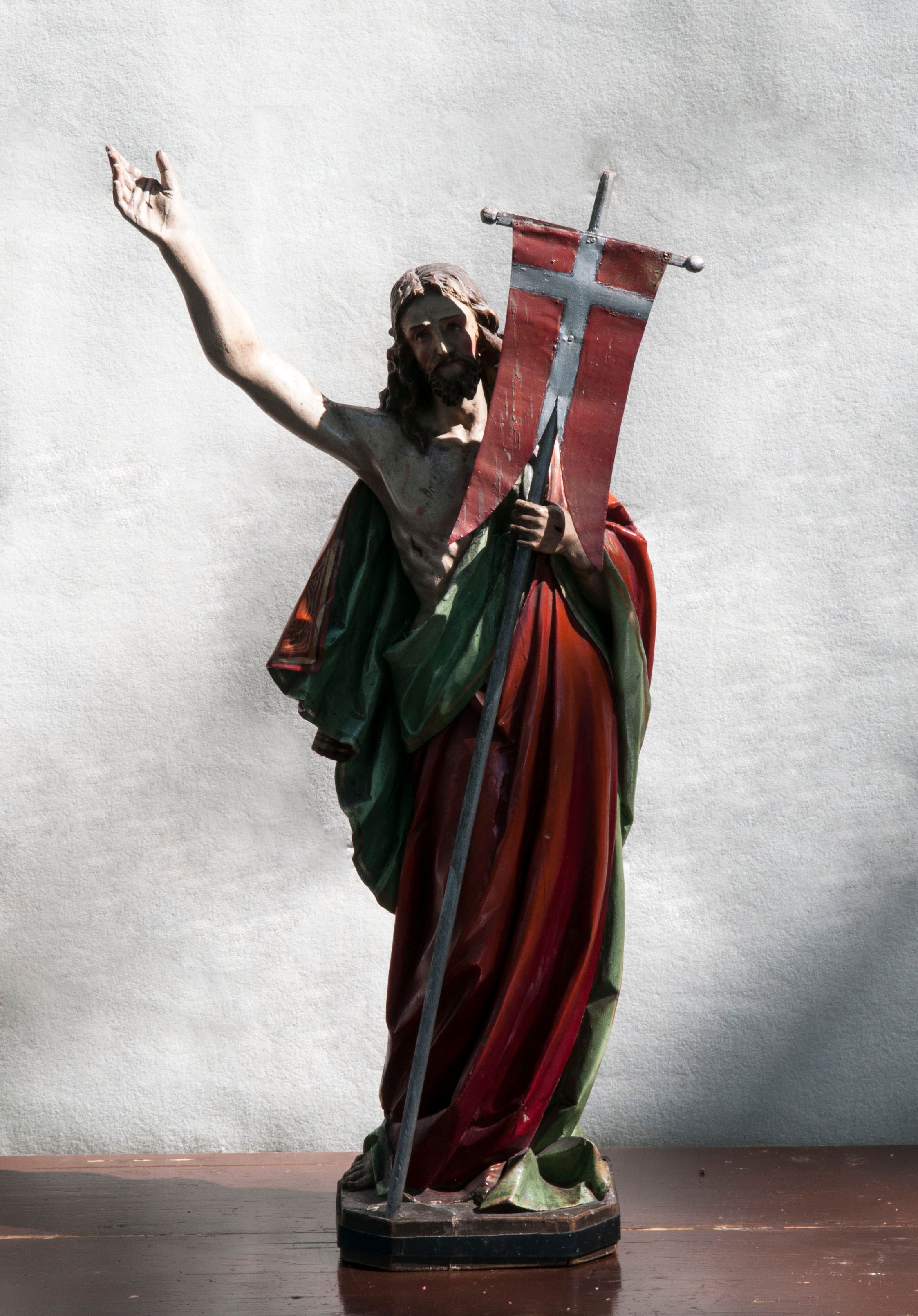 The sculpture of the Risen Christ was made in the 19th or 20th century. In this type of representation, artists concentrated on showing the moment of triumph over death. According to the convention, the sculpture has a subtle expression.