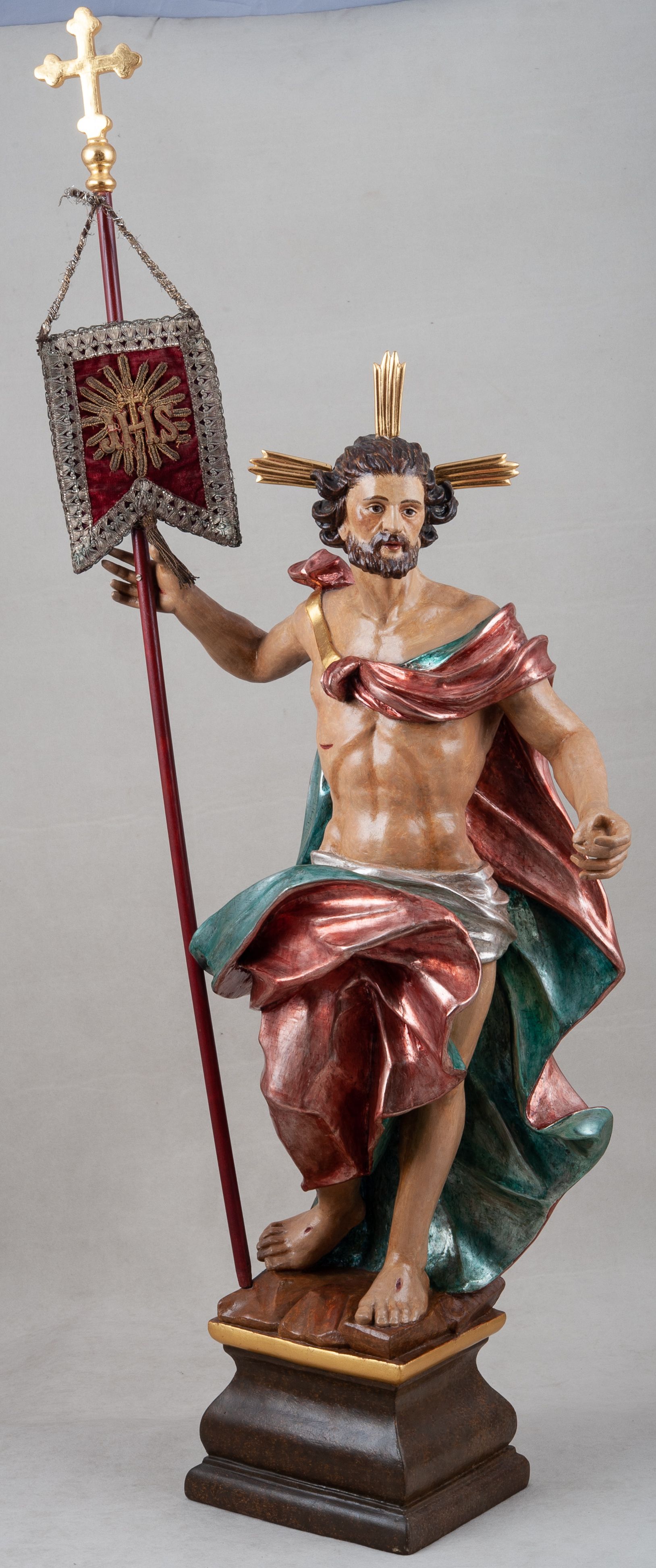 The statue of the Risen Christ was made by Antoni Kornecki in 1781 – a sculptor and a painter, coming from a family with multi-generational artistic tradition. It shows the Triumphant Christ after he rose from the grave. The red robe indicates his martyrdom and the flag is a symbol of victory over death.