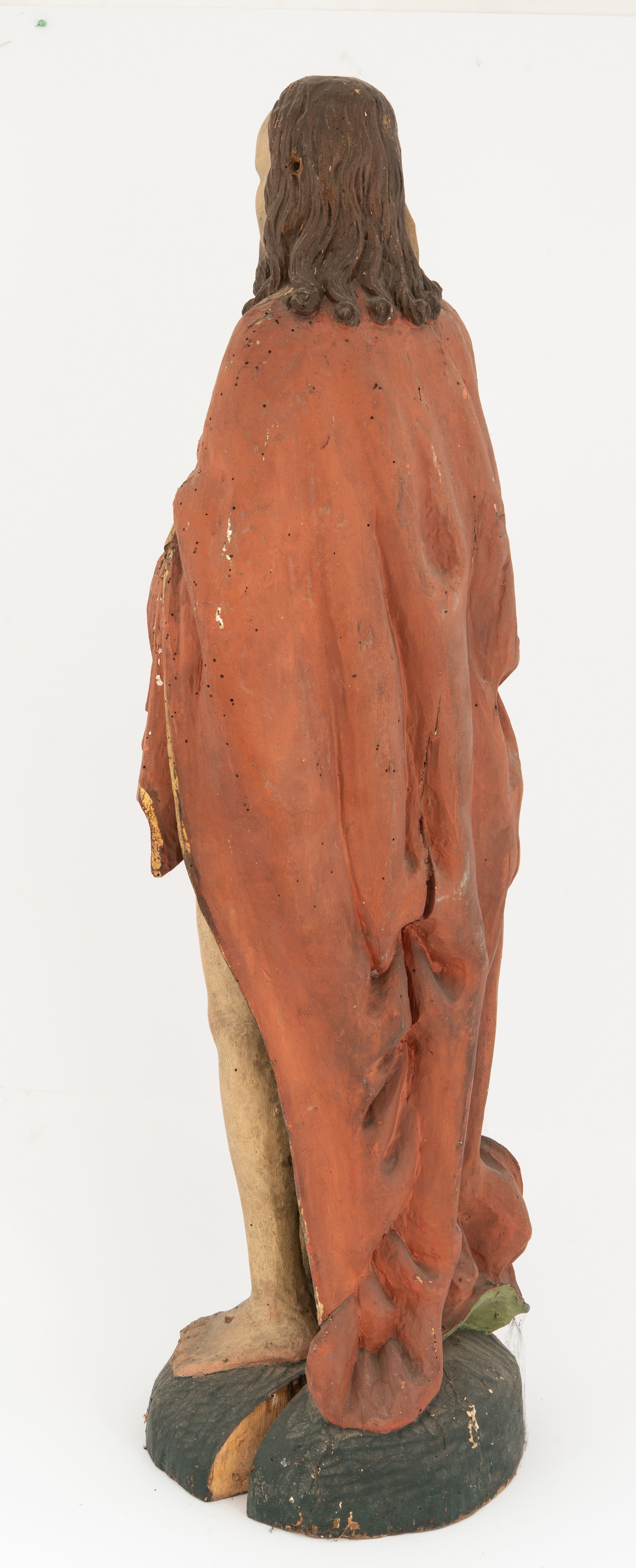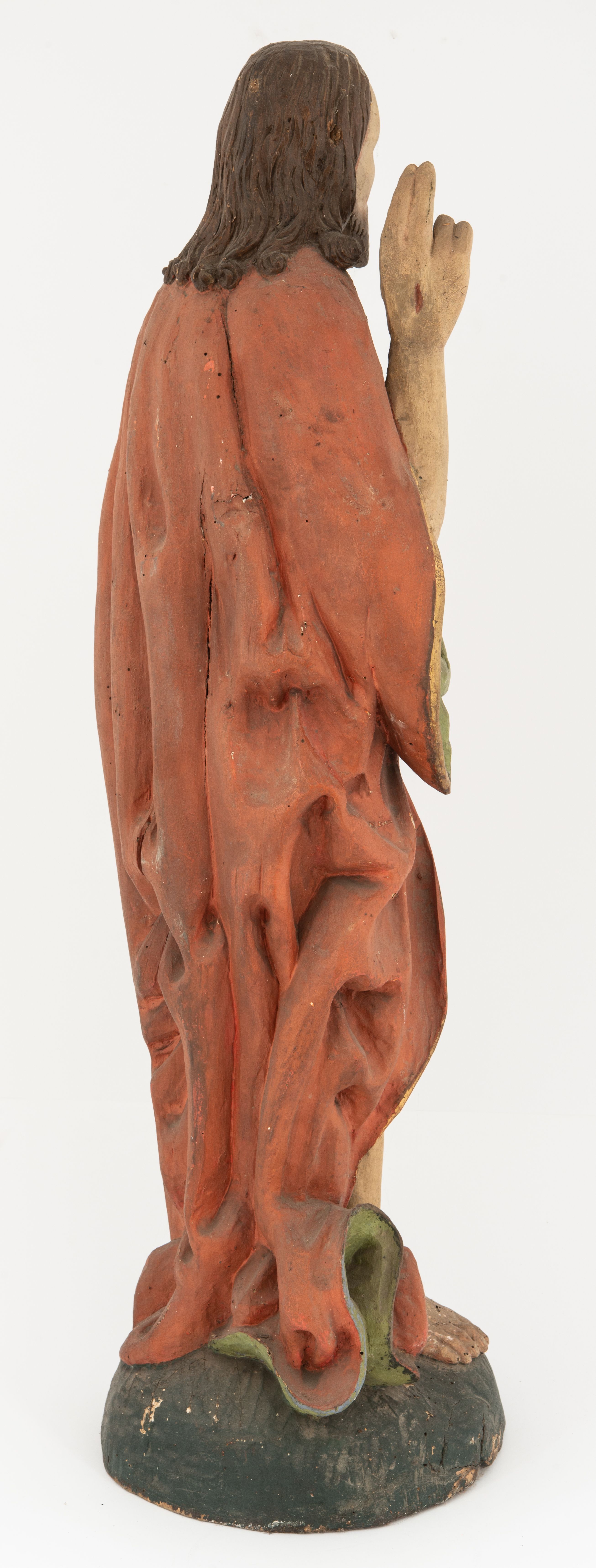 The statue of the Risen Christ was created in a 16th-century sculpture workshop. It carries late gothic features, as evidenced by the way of carving of a face with a high forehead, hair in regular curls, drapery robes and some stiffness of the silhouette. Unfortunately, archival sources do not reveal the author and the place of its creation. The sculpture represents a typical shot of the Risen Christ, dating back to the Middle Ages: Christ is half-naked, has a red cloak, blesses with one hand, and in the other (non-preserved) he probably held a flag with a cross as a sign of triumph over sin and death.