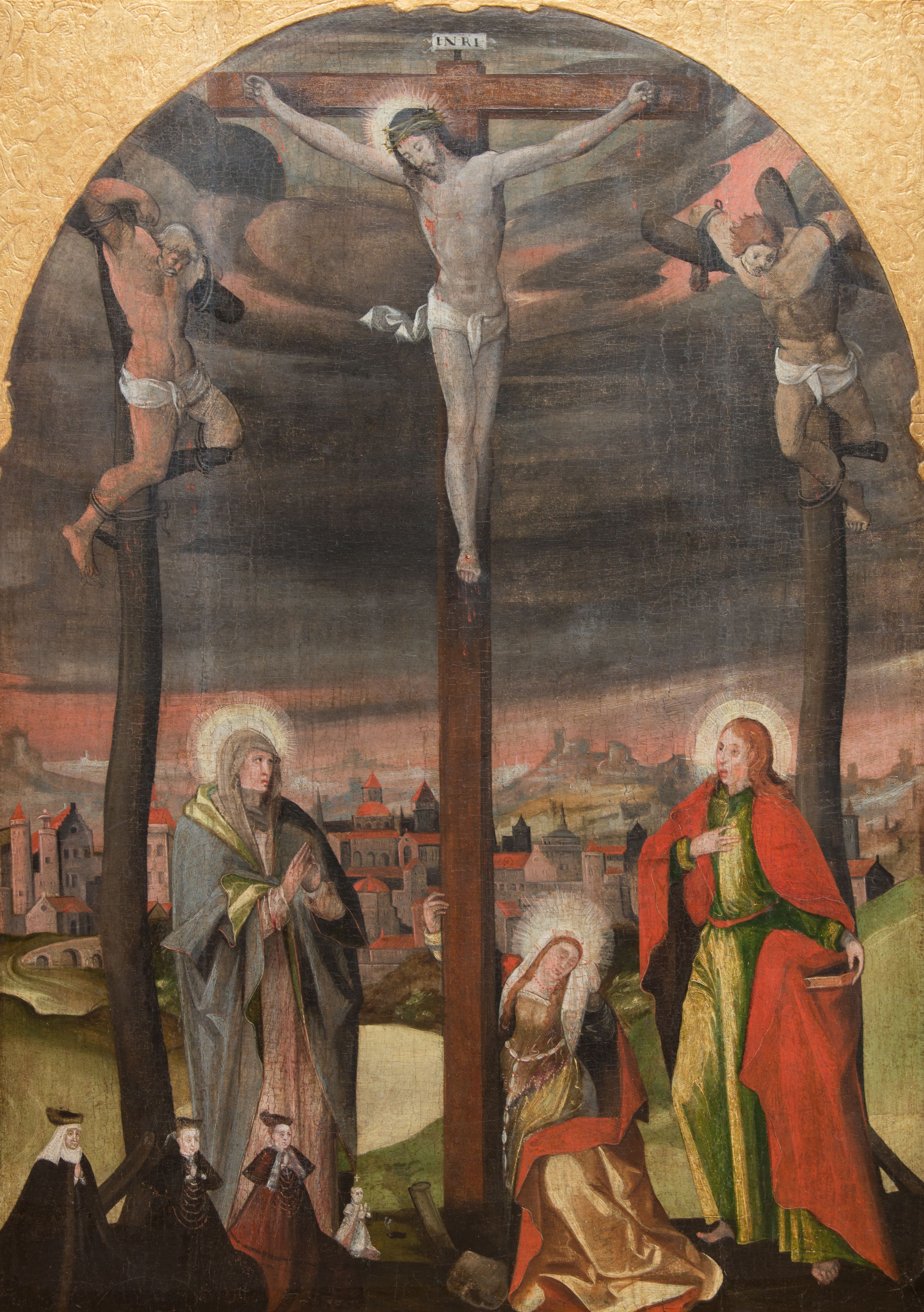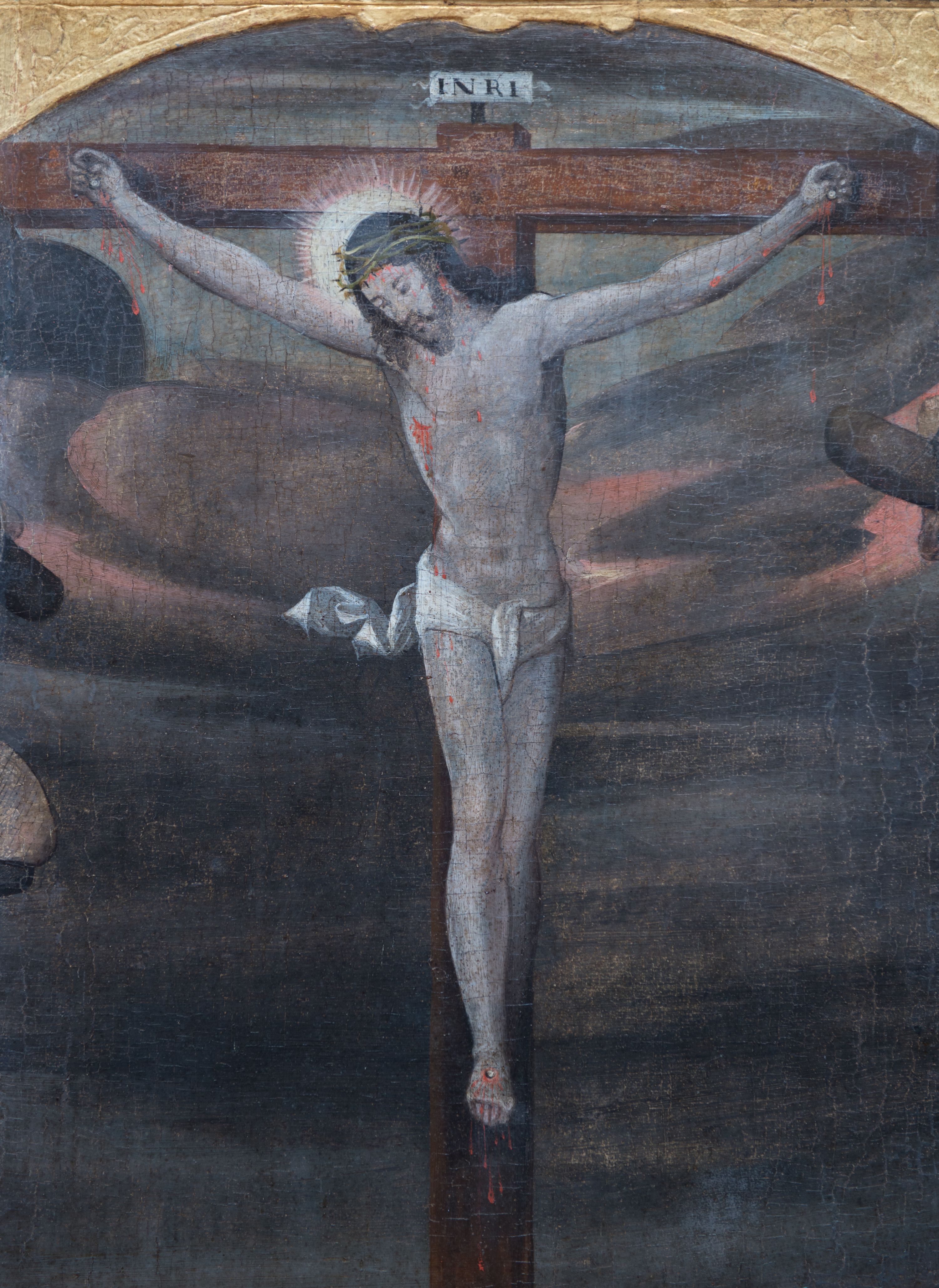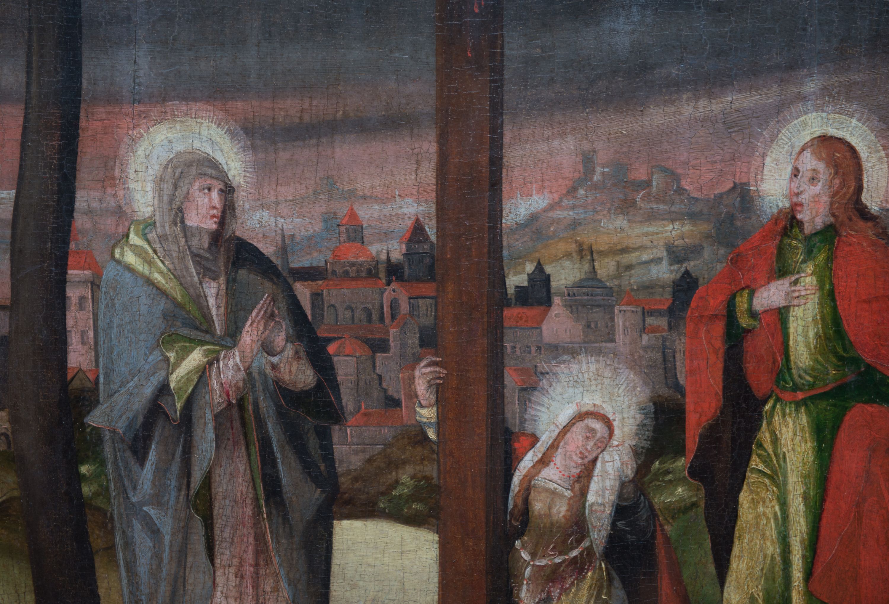 The painting of the Crucifixion was probably created in the last quarter of the 16th century and comes from the former chapel in Tokarnia. It may have been funded by Anna (née Sieniawska) Jordanowa, who is probably depicted in the painting together with her unmarried daughters. The work in question depicts a well developed Crucifixion Group with Christ, scoundrels, Mary, St. John and Mary Magdalene.