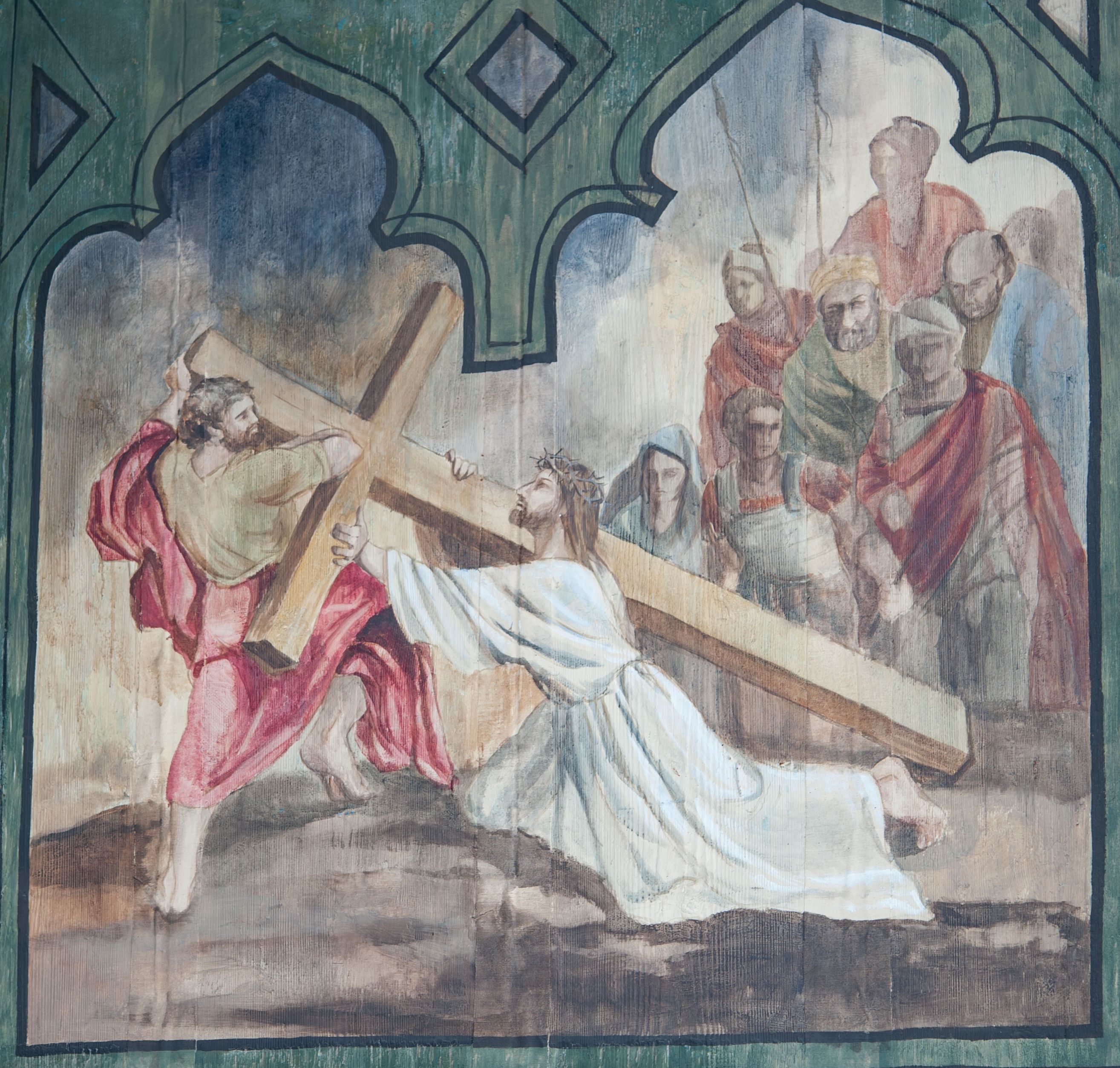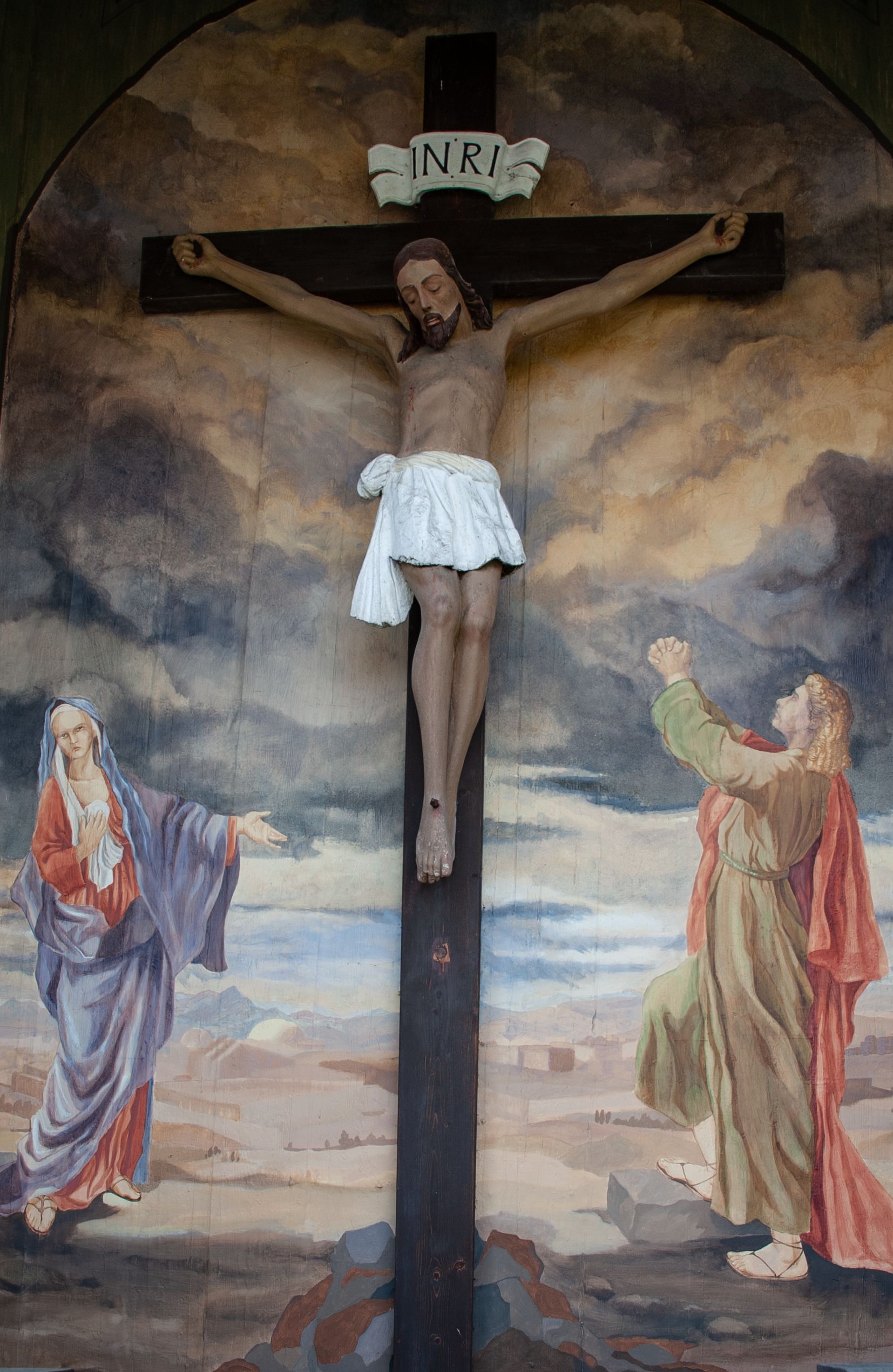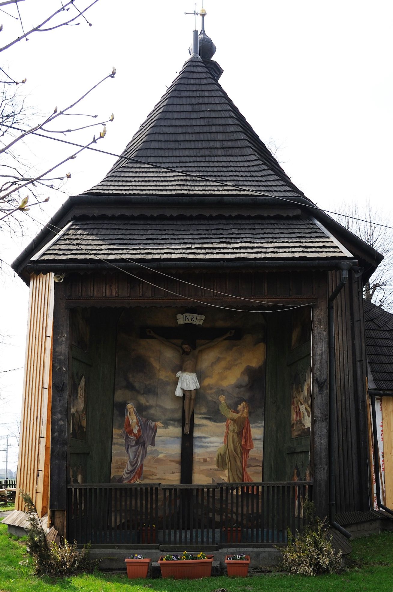 A garden with a 19th-century statue of the Christ Crucified, was decorated inside with a polychrome with scenes of the Passion of Christ, made by an unknown by first name Różecki of Kętka in April 1989. Thanks to the polychrome in the garden, a carved crucifix was set in a wider context. The depiction of Crucifixion with Mary and St. John – the main scene of the Passion whose series is located on the side walls of the garden, was created.