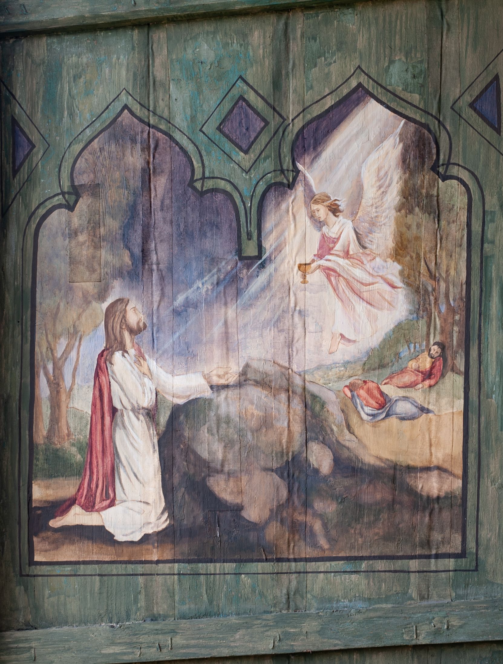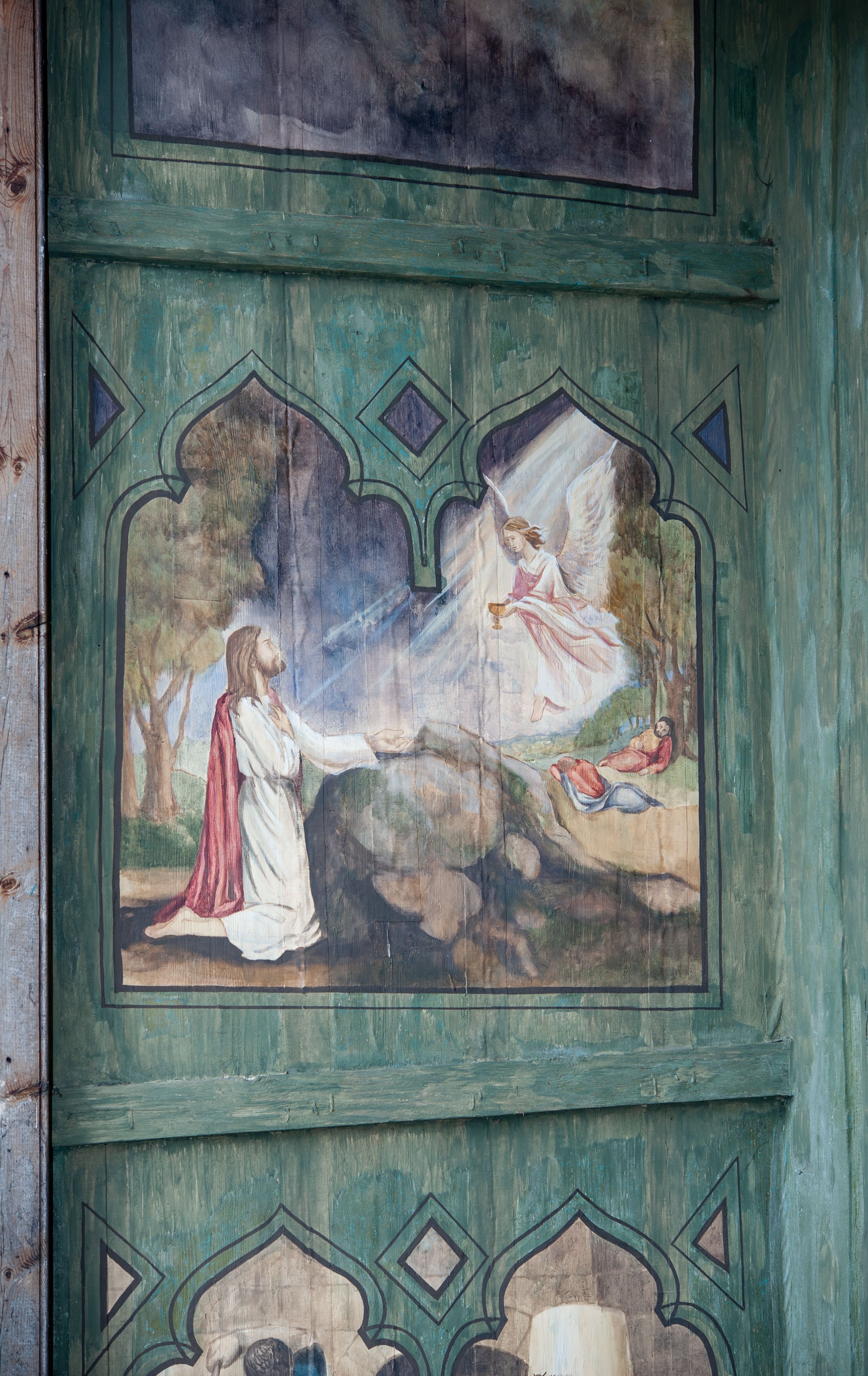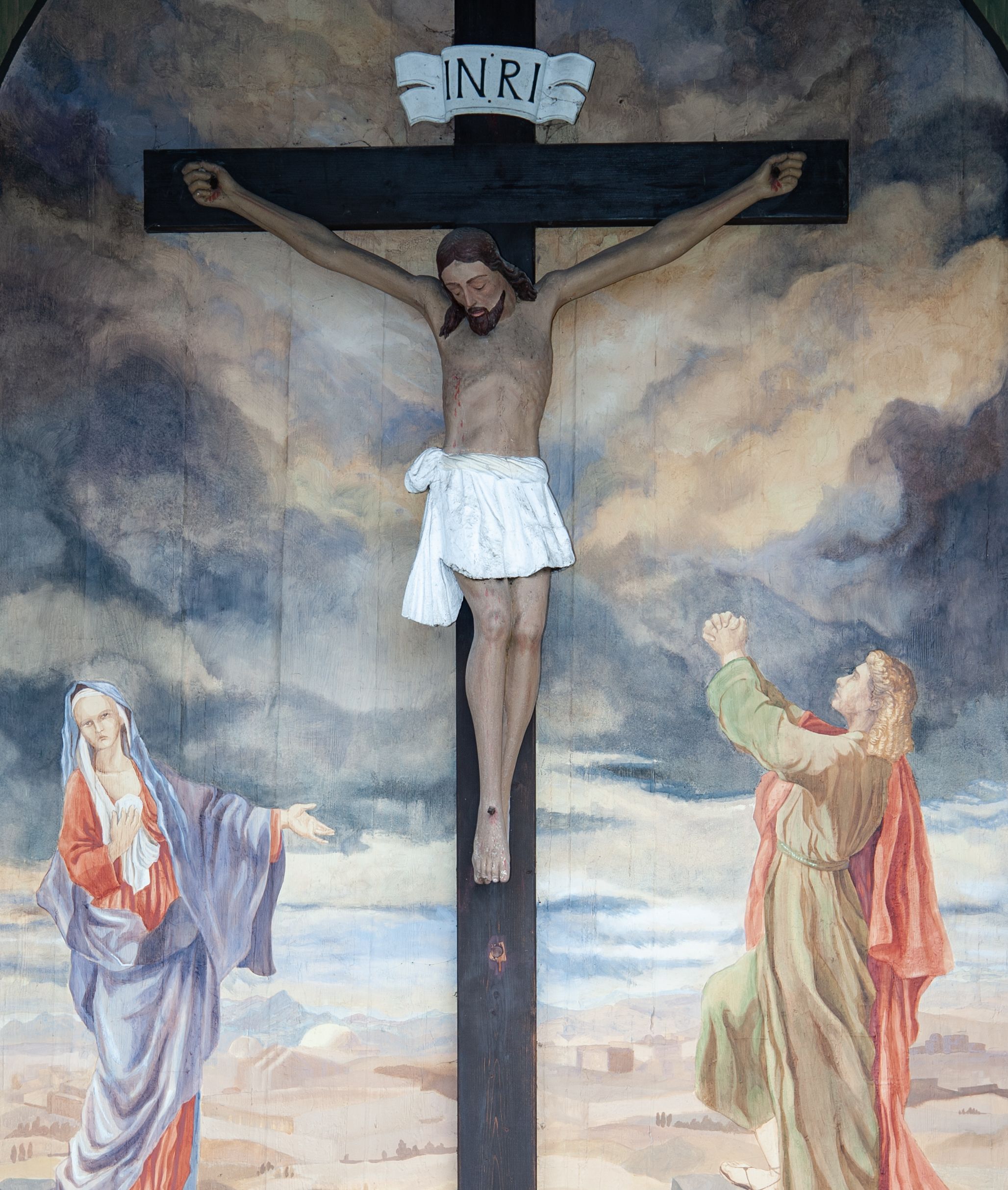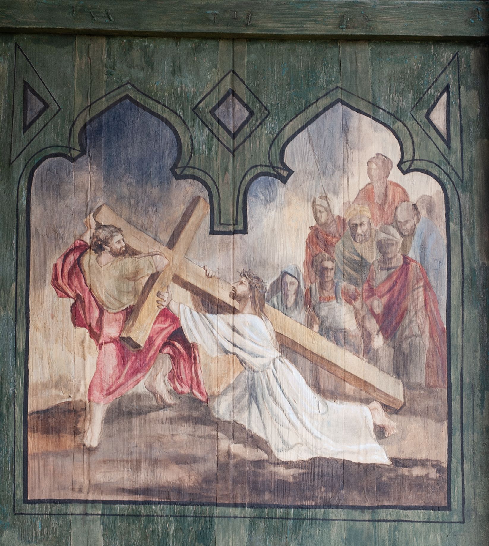 A garden with a 19th-century statue of the Christ Crucified, was decorated inside with a polychrome with scenes of the Passion of Christ, made by an unknown by first name Różecki of Kętka in April 1989. Thanks to the polychrome in the garden, a carved crucifix was set in a wider context. The depiction of Crucifixion with Mary and St. John – the main scene of the Passion whose series is located on the side walls of the garden, was created.