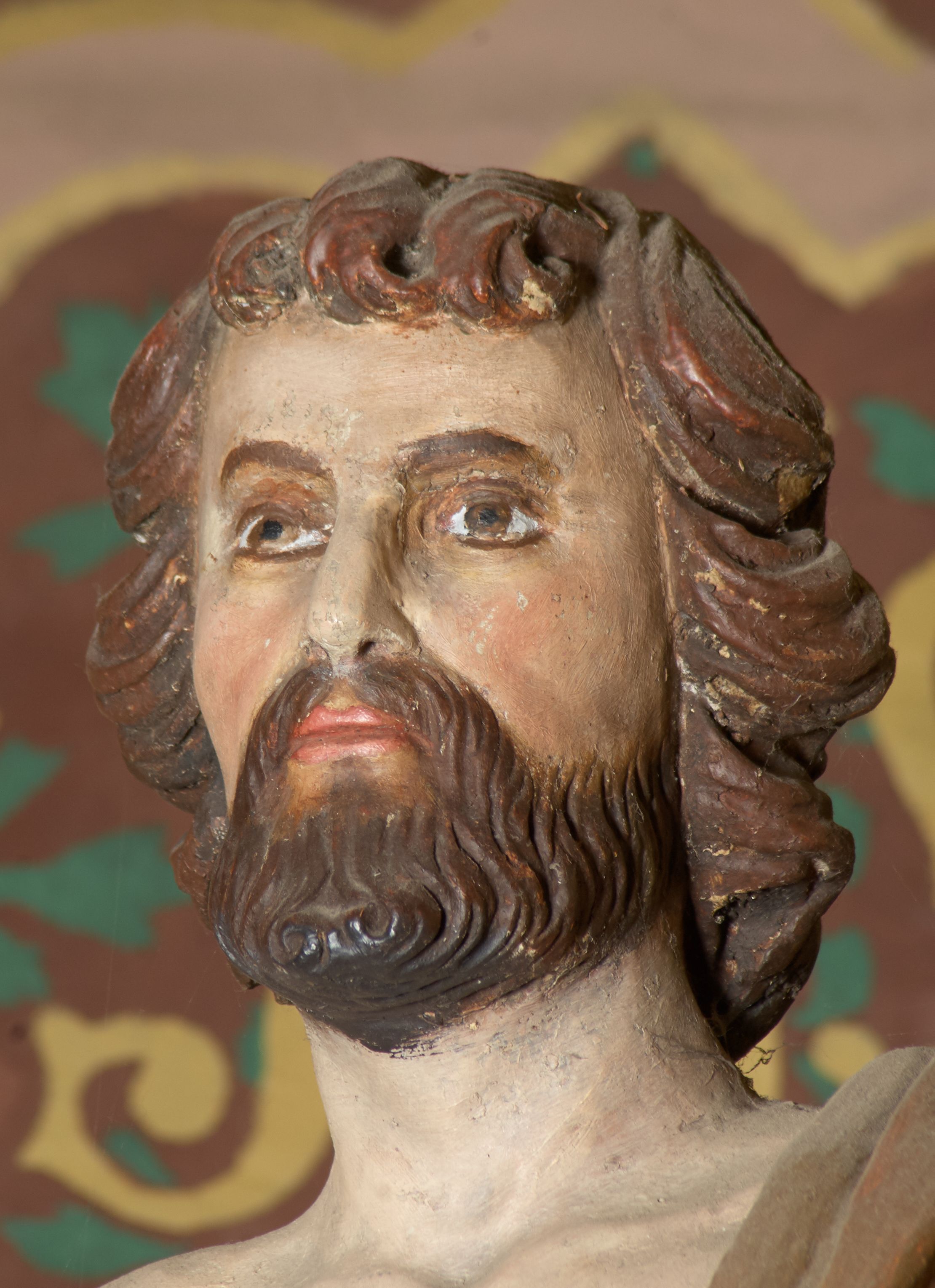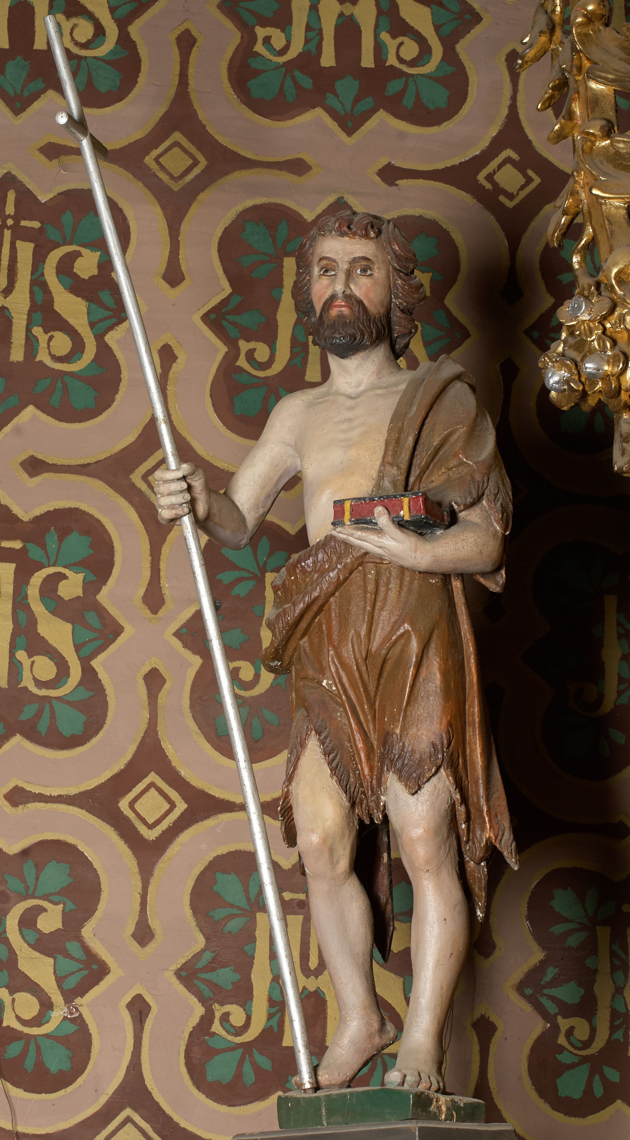 The sculpture of St. John the Baptist was made in the late 19th century by an unknown artist, and then placed over the gate at the high altar.