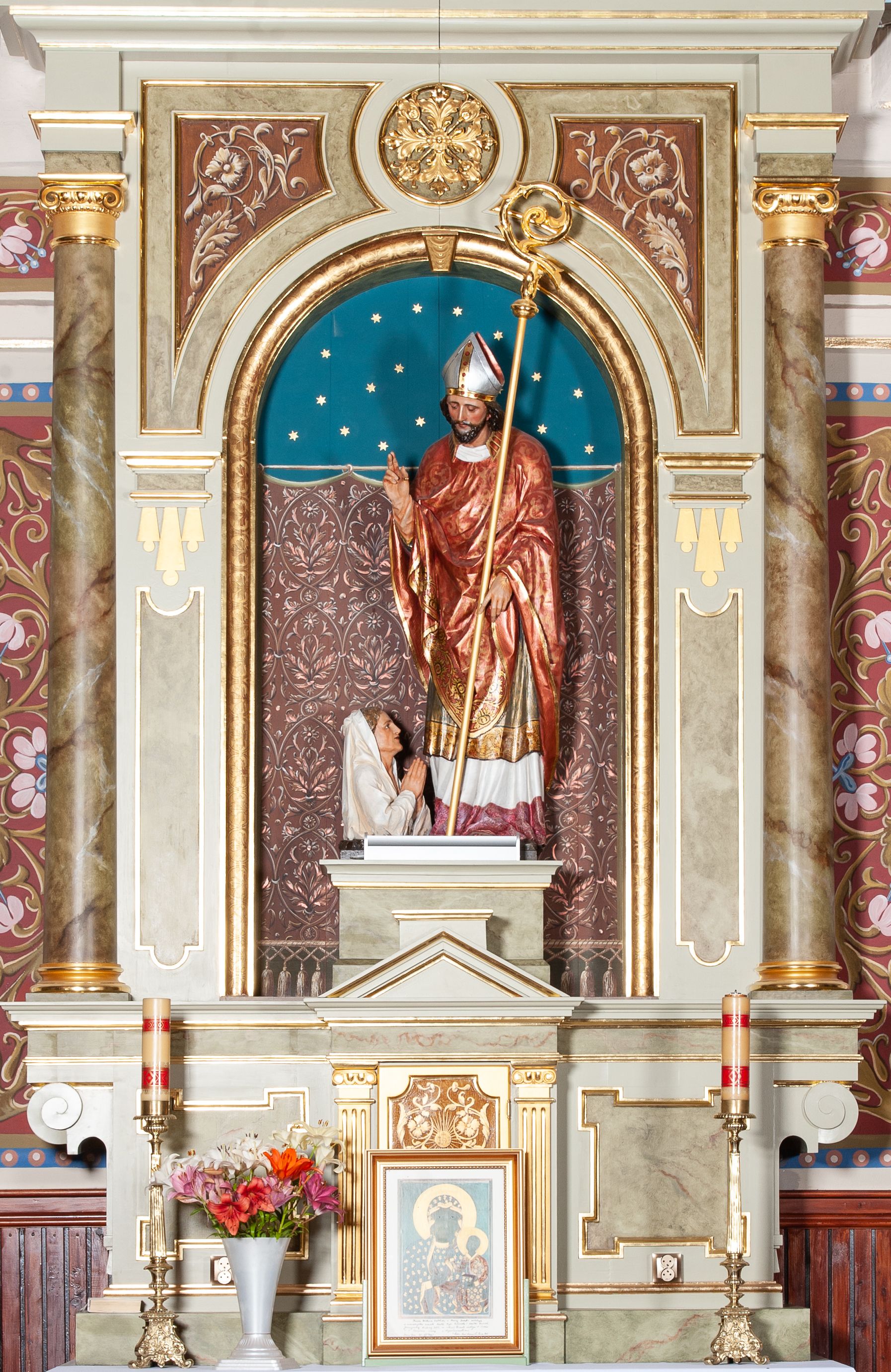 The painting of St. Stanislaus was created around the middle of the 19th century. Unfortunately, archival sources do not reveal the author of the work. The sculpture was correctly made both in iconographic terms and in formal terms, and has been generally idealized. The silhouette was displayed in a conventional, calm and static pose, but its decorated, patterned and richly gilded polychrome of the saint's garment added a decorative character.