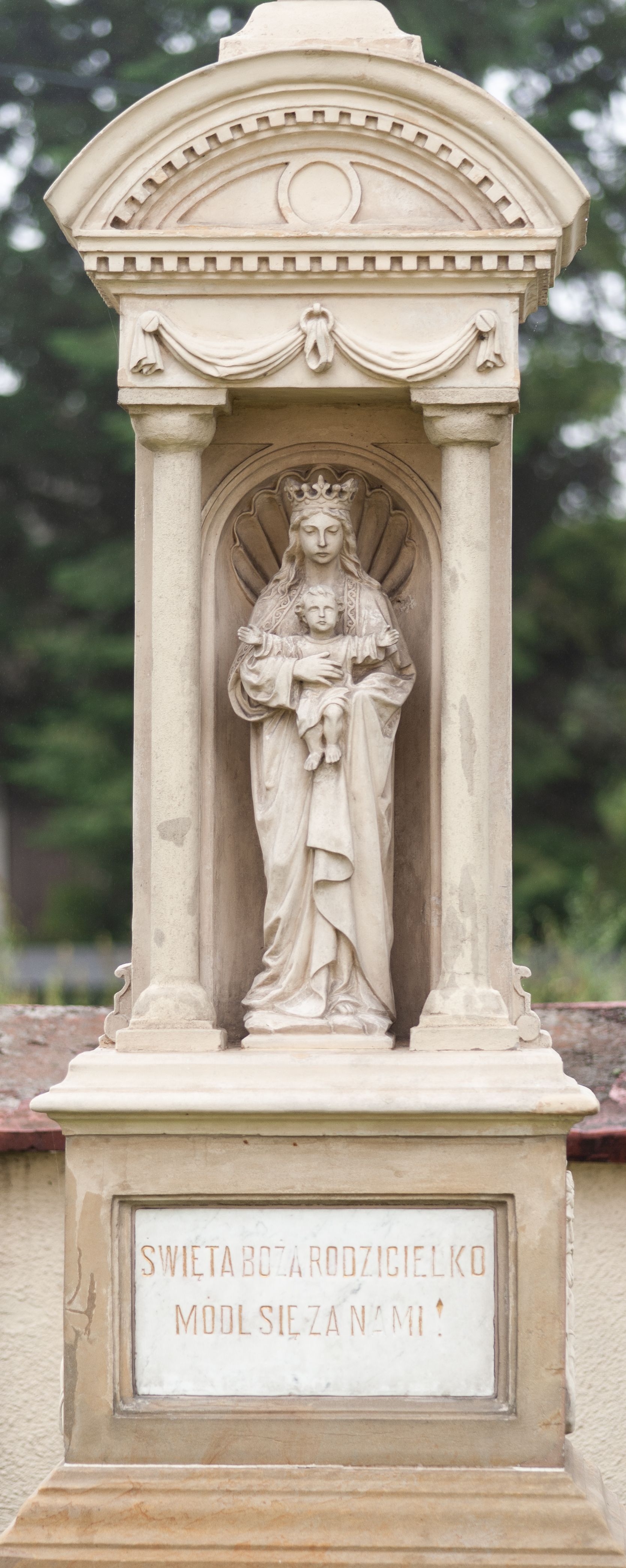 The shrine, standing free on a high pedestal along with the statue of Our Lady and the Child, was funded in 1888 by Szymon Kościelny.