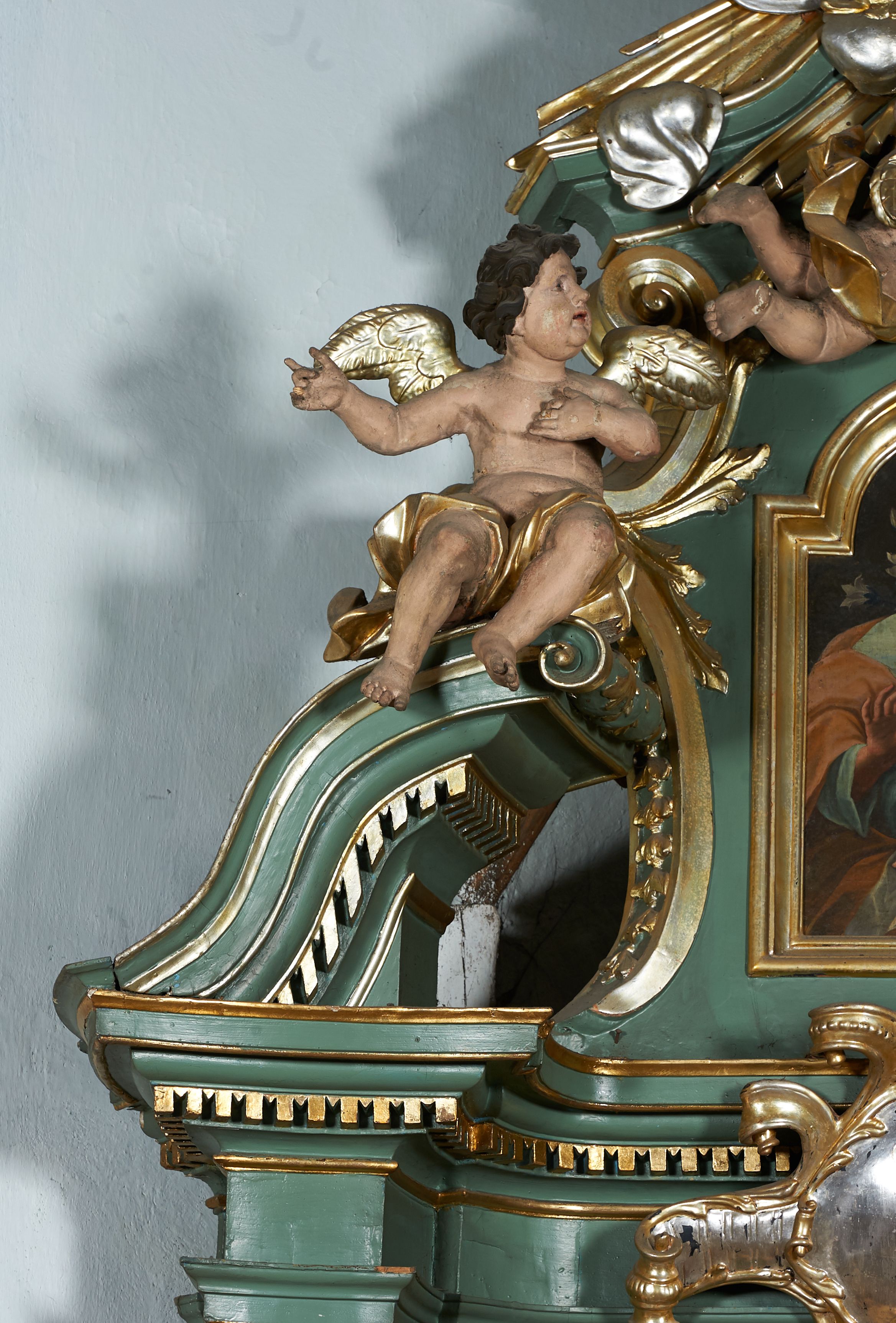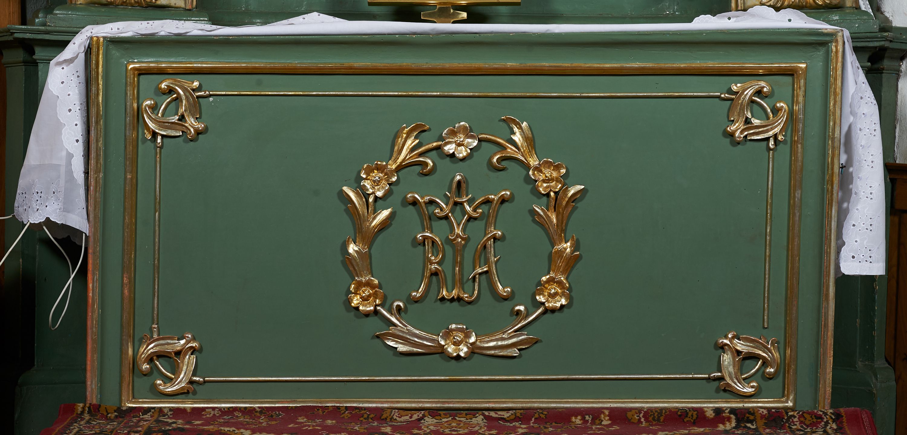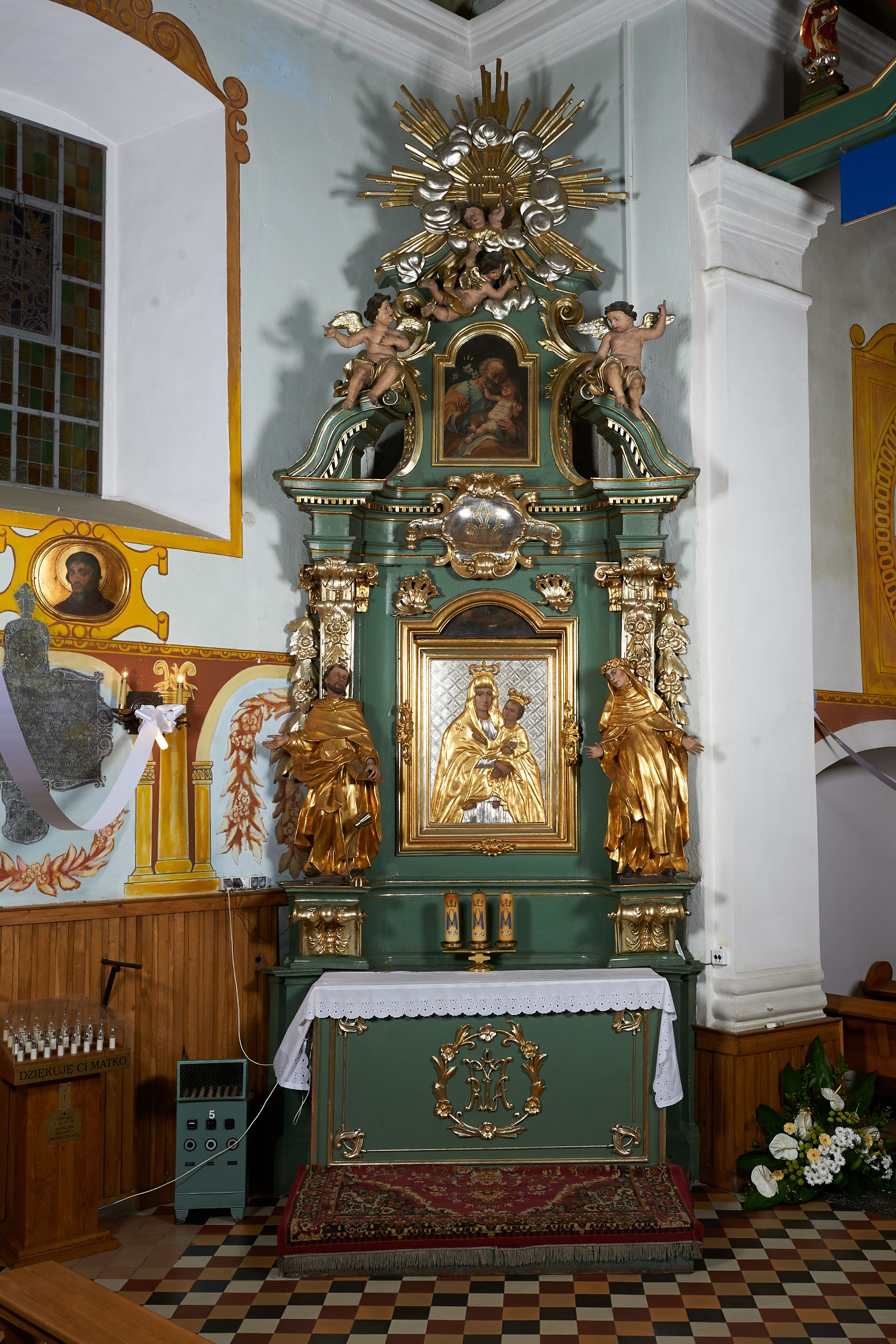 The northern side altar was built before 1748, because it was already mentioned in the visitation records of that year. Its creation is attributed to Kornecki's workshop, as well as other elements of architectural and sculptural furnishings in the church. The altar represents the aedicula type, i.e. a single-storey structure with an altar finial, placed on a pair of supports supporting the entablature – the most common type of reredos in the 18th century in Central Europe. The iconography of the whole altar is centered around the statue of the Virgin Mary.
