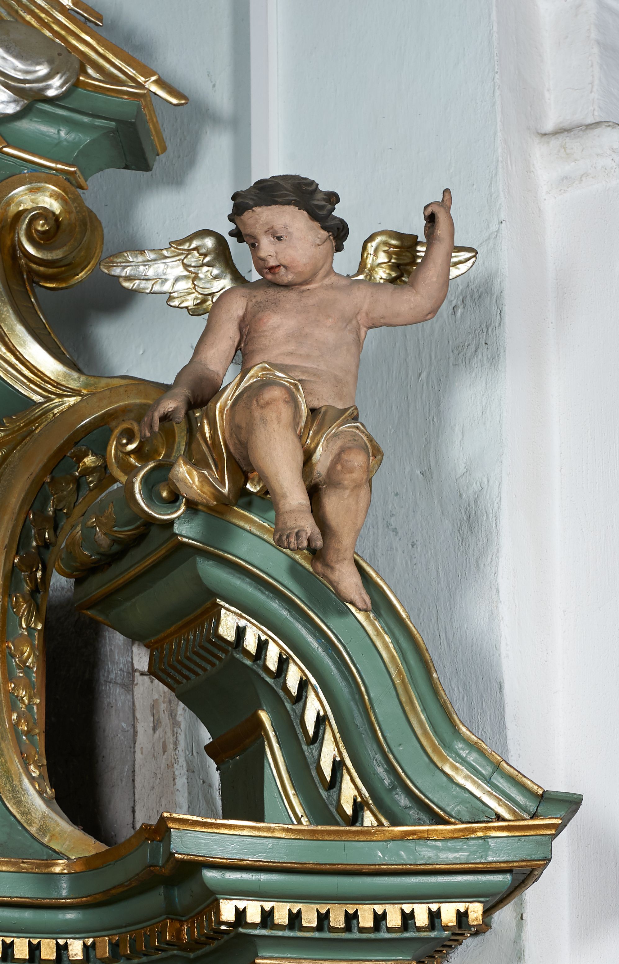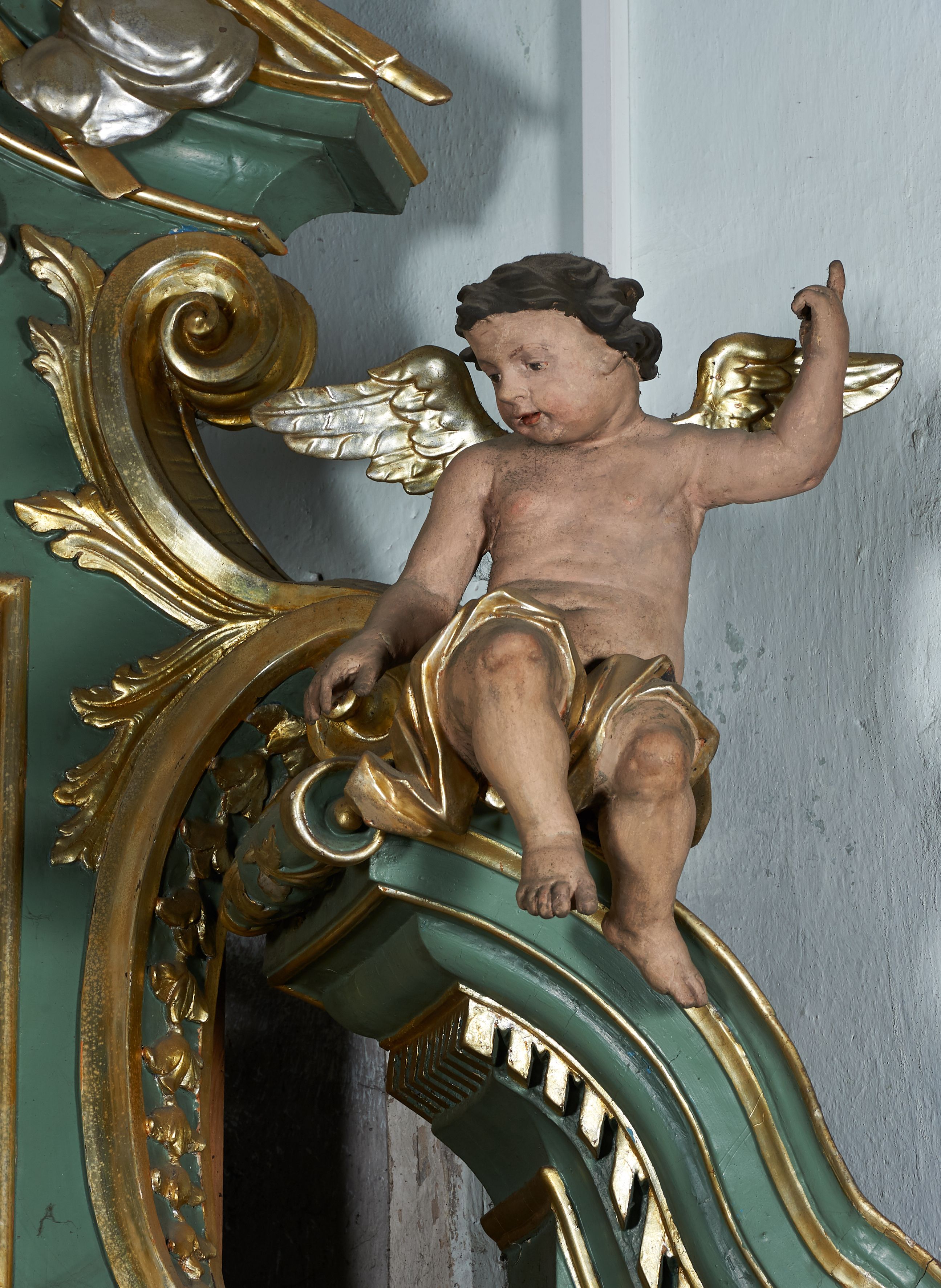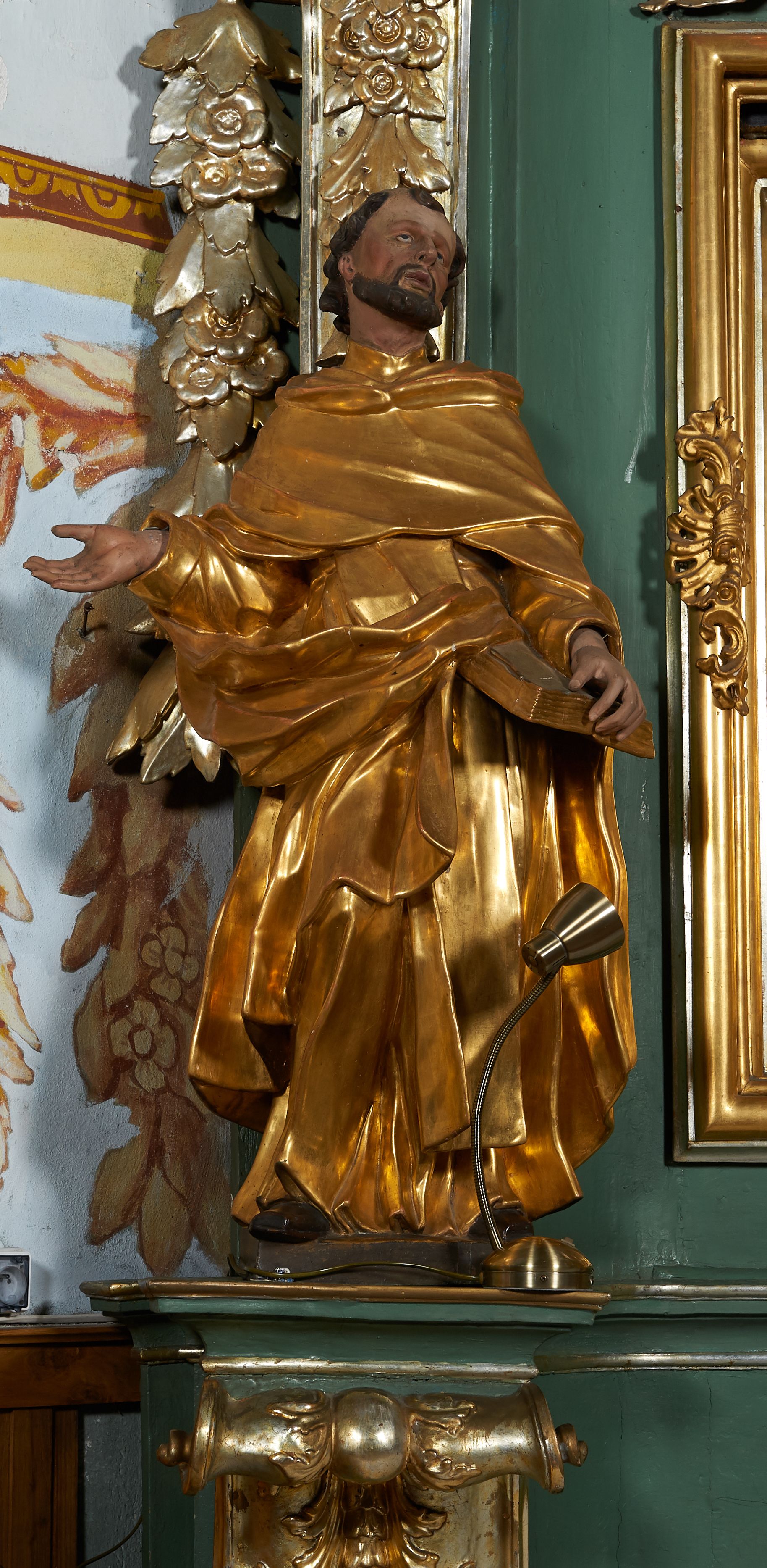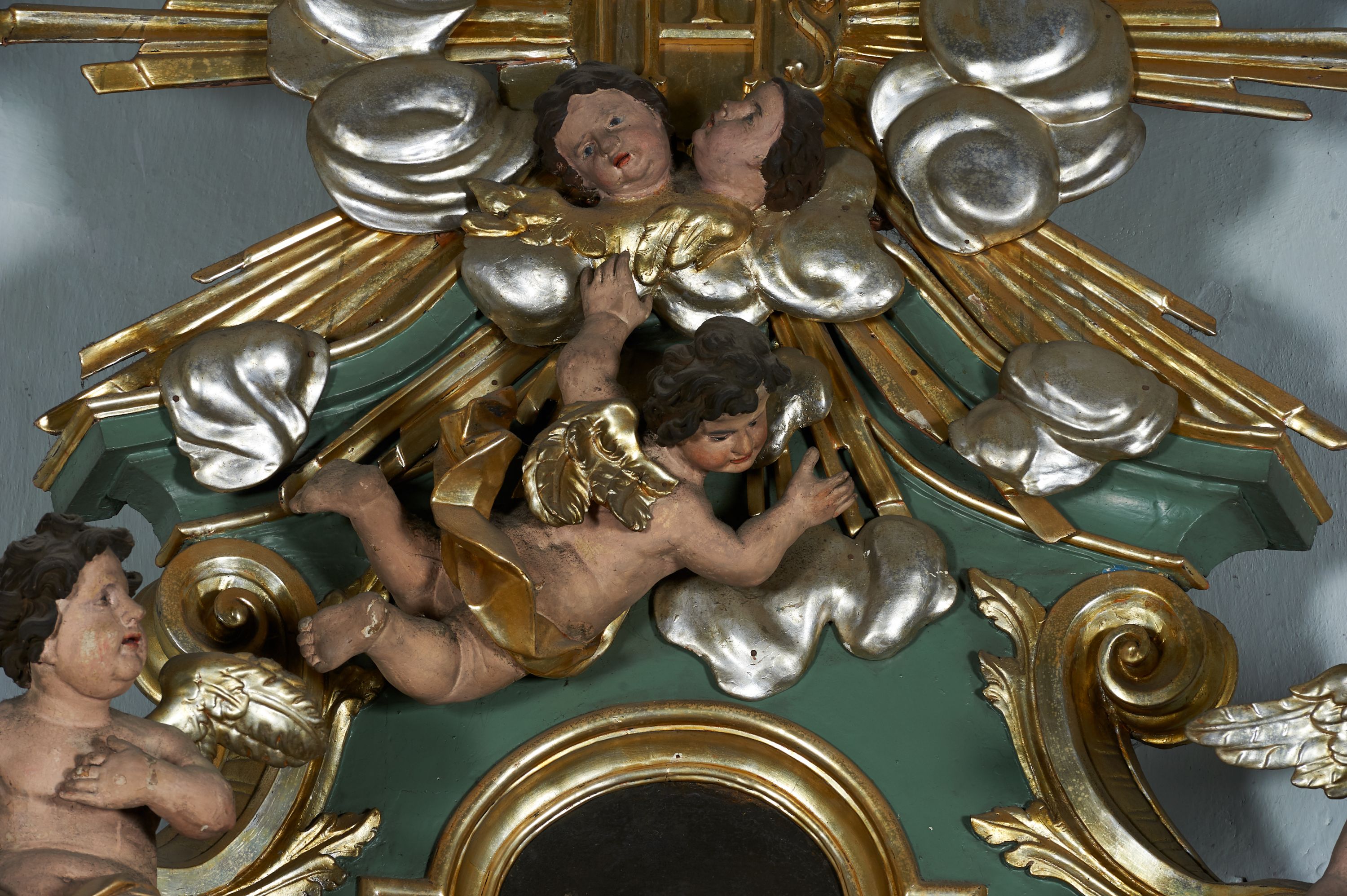 The northern side altar was built before 1748, because it was already mentioned in the visitation records of that year. Its creation is attributed to Kornecki's workshop, as well as other elements of architectural and sculptural furnishings in the church. The altar represents the aedicula type, i.e. a single-storey structure with an altar finial, placed on a pair of supports supporting the entablature – the most common type of reredos in the 18th century in Central Europe. The iconography of the whole altar is centered around the statue of the Virgin Mary.