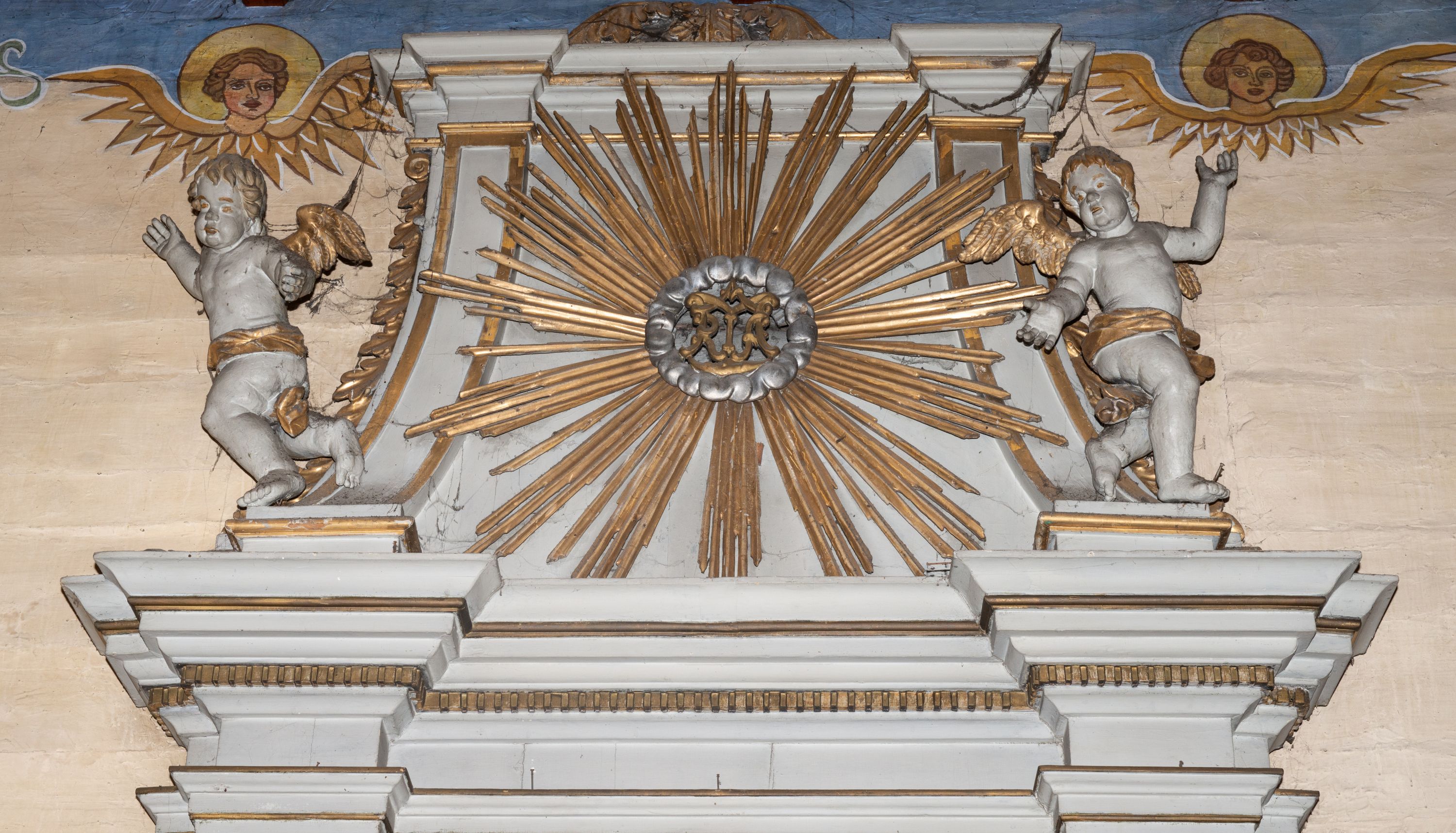 The altar in the side chapel was made in the classical style in the first half of the 19th century. Unfortunately, archival sources do not reveal the creator of this reredos. The altar's iconography is dedicated to the Most Sacred Heart of Jesus. The inscription on the altar: "ALTARE PRIVIL" is an abbreviation of the Latin words "Altare Privilegiatum", meaning that it is a privileged altar at which a full indulgence can be obtained for the soul in Purgatory while celebrating the mass (in 1967, Pope Paul VI abolished the full indulgence using the so-called privileged altars).