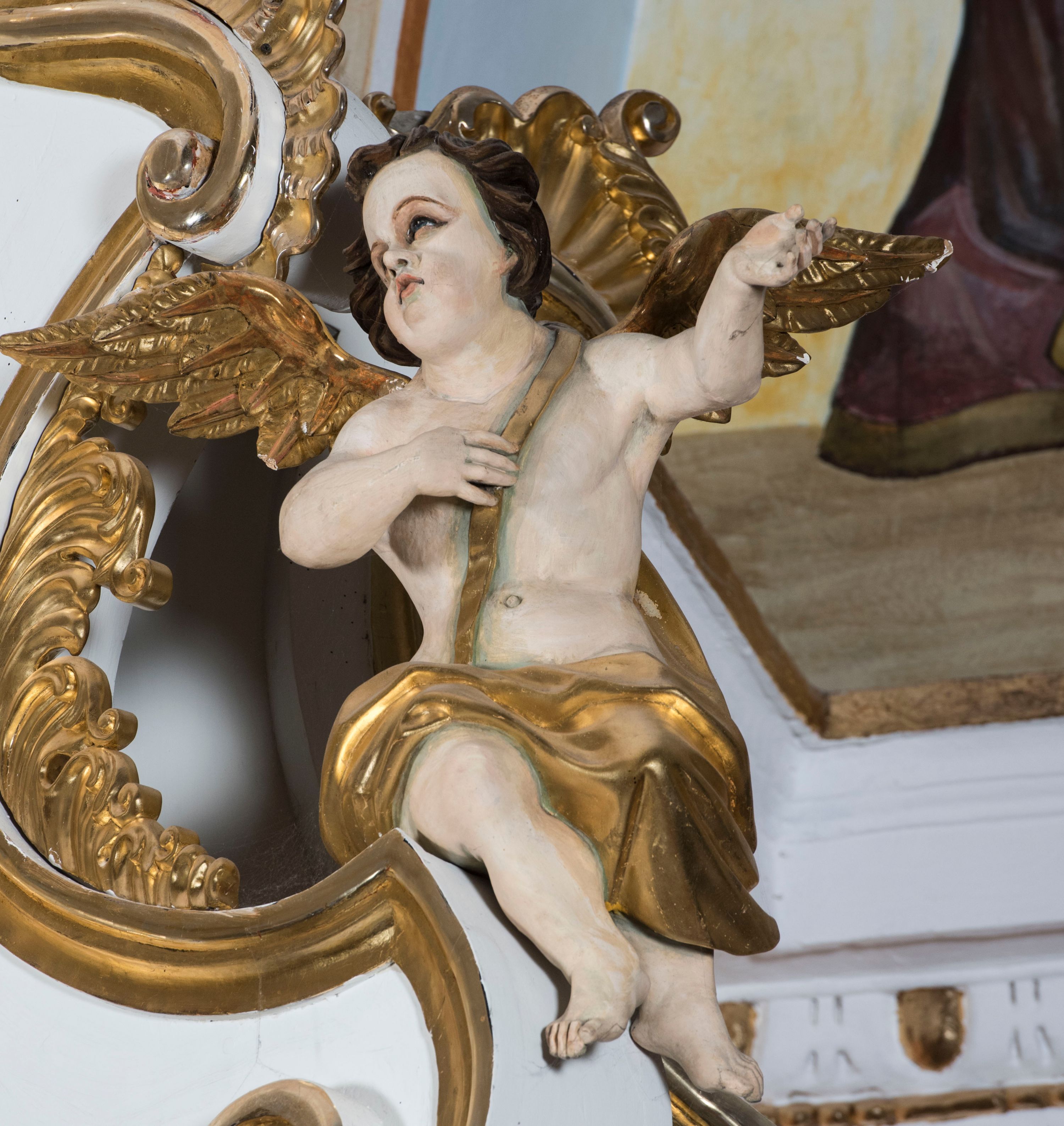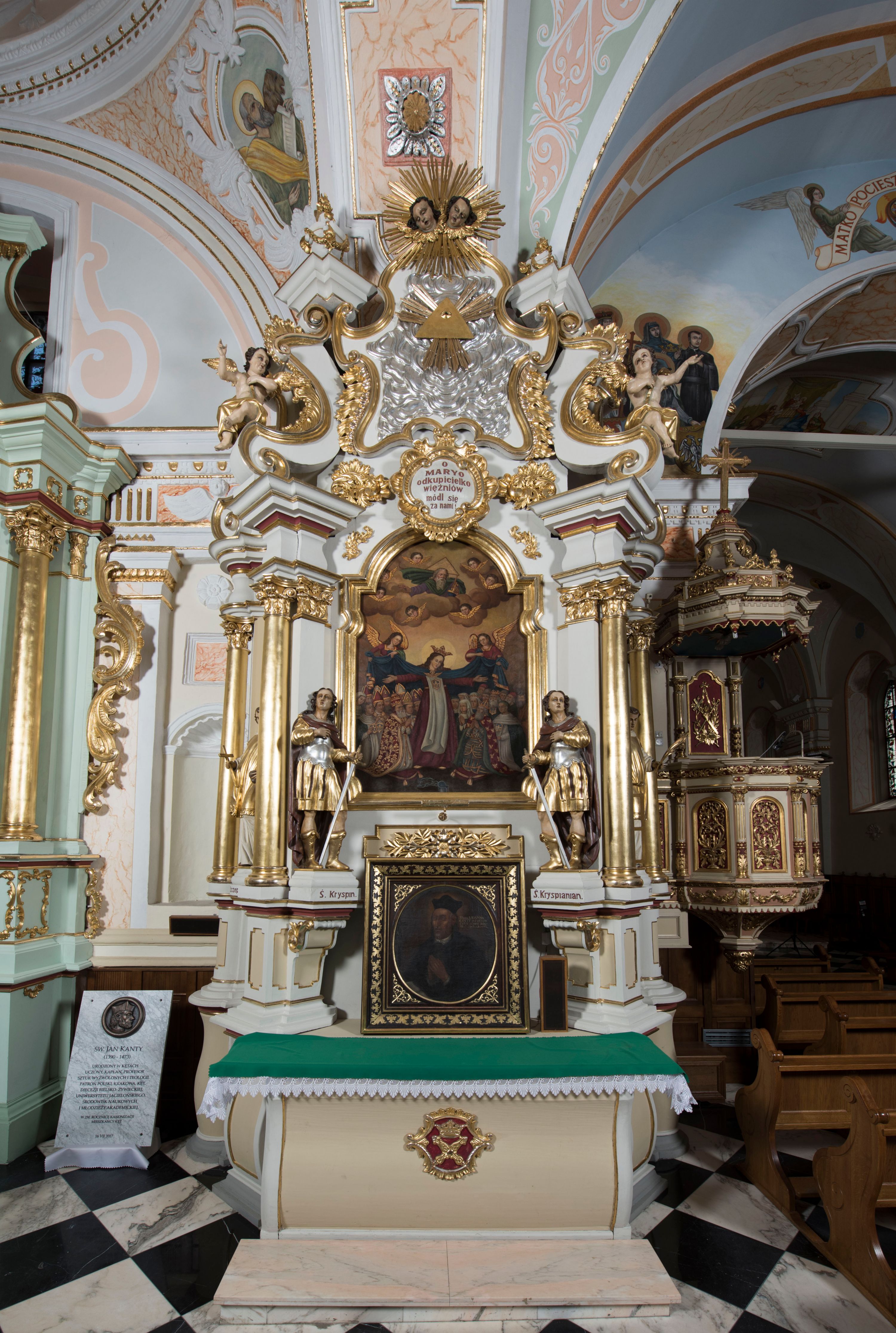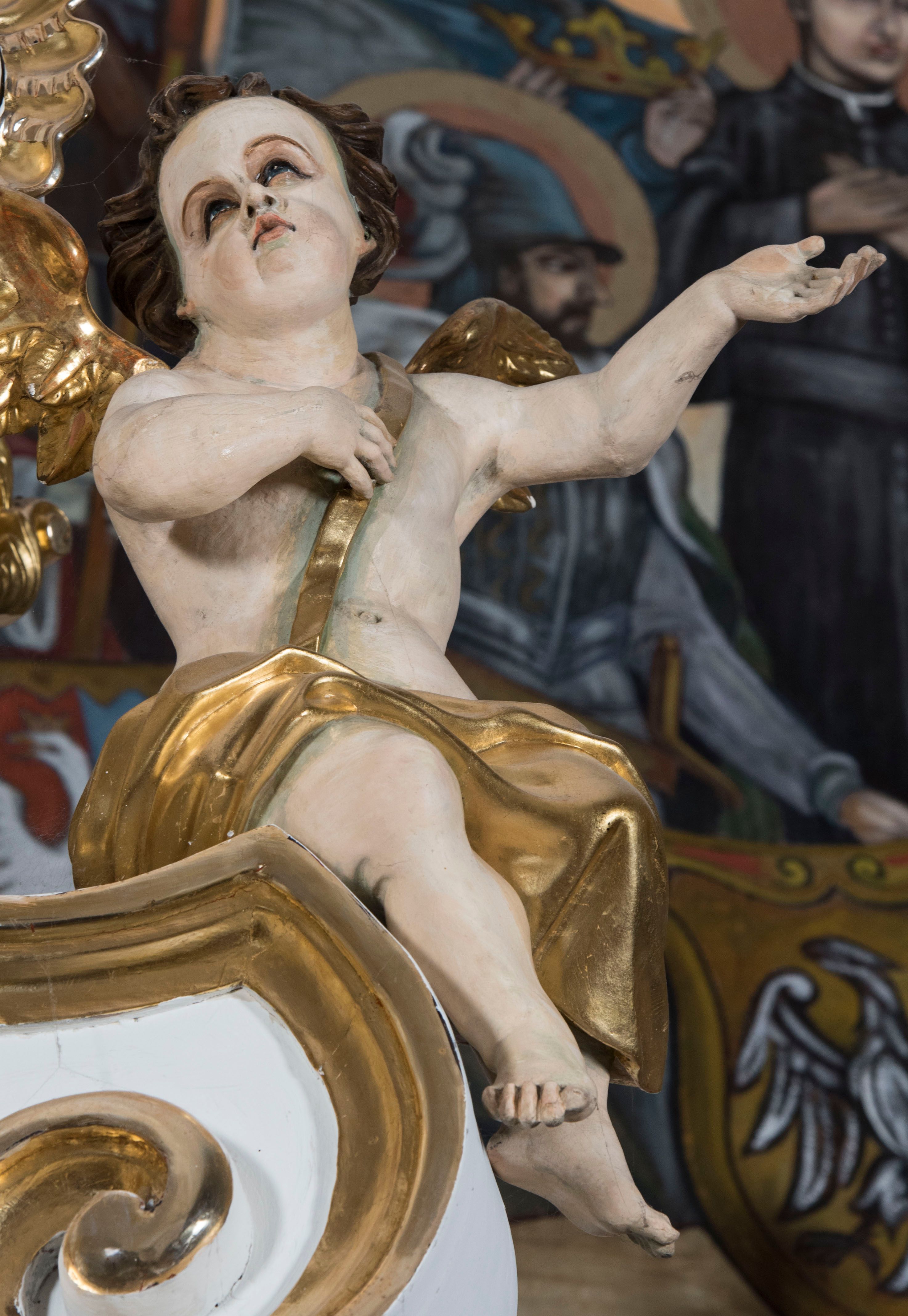 The altar in the parish church in Kęty, built in the second half of the 18th century, was most probably made in one of the Moravian workshops. The project of an extensive and extraordinarily dynamic composition of the reredos structure was probably influenced by the Augsburg ornamental engravings.