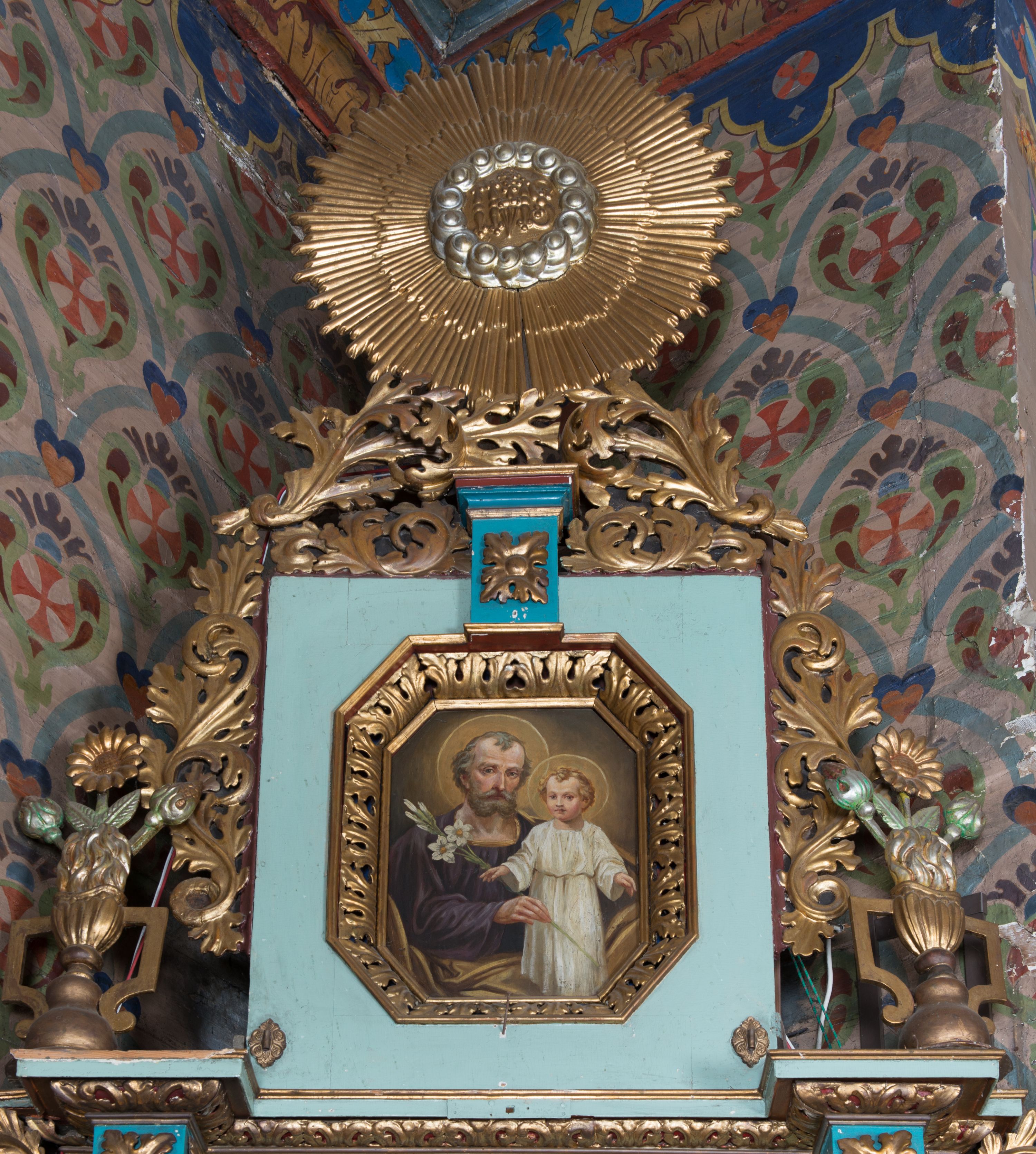 Two side altars were built probably around 1700. Probably at the turn of the 19th and 20th centuries the reredos was rebuilt. New altar final and aureole were added to the structure at that time, new paintings were inserted and a stone altar was built. Most probably, the altar finial of reredoses originally looked like the altar final of the adjacent side altar. Architecture of the reredoses in the part of a tier is based on a simple aedicula scheme. This type of altar appeared in Lesser Poland already in the first half of the 17th century.