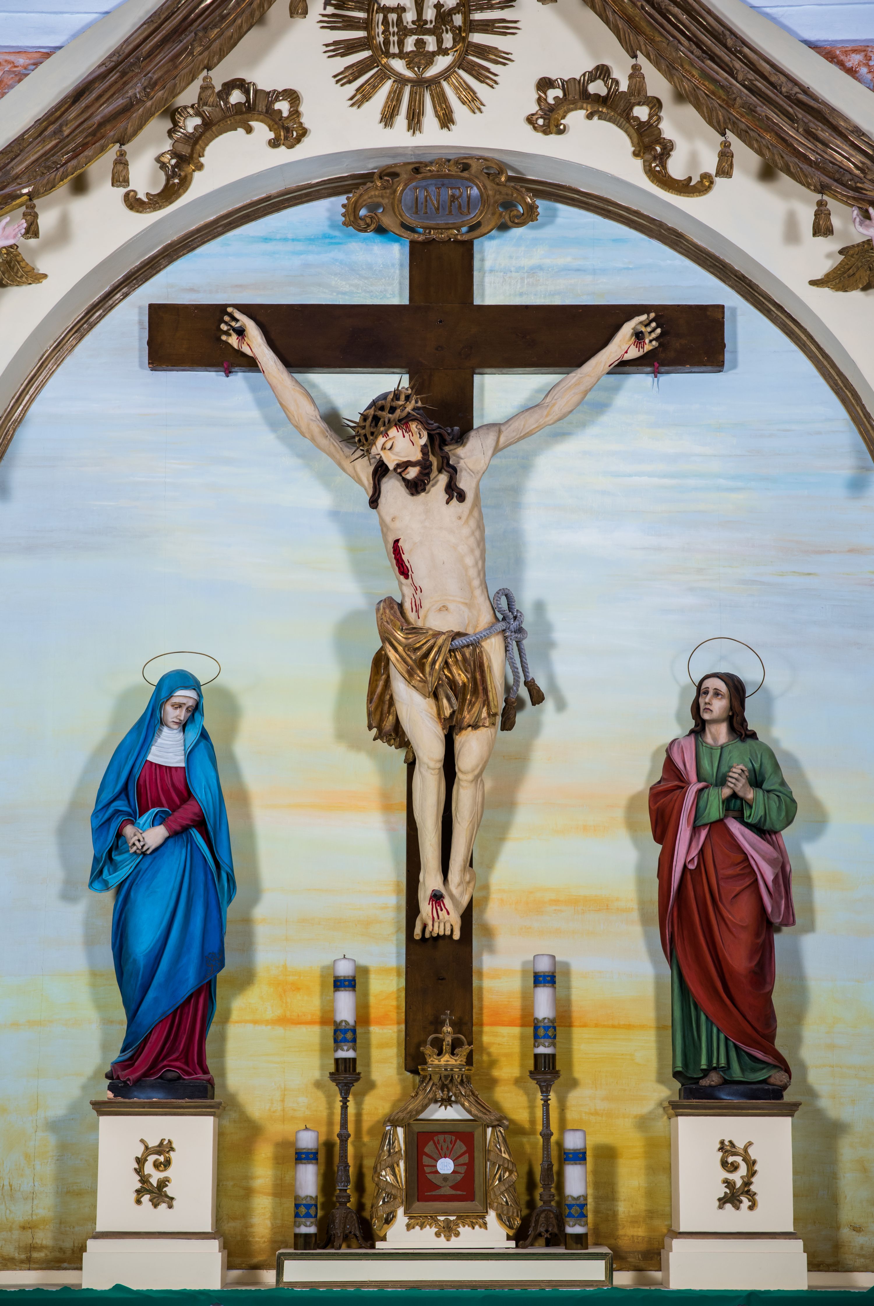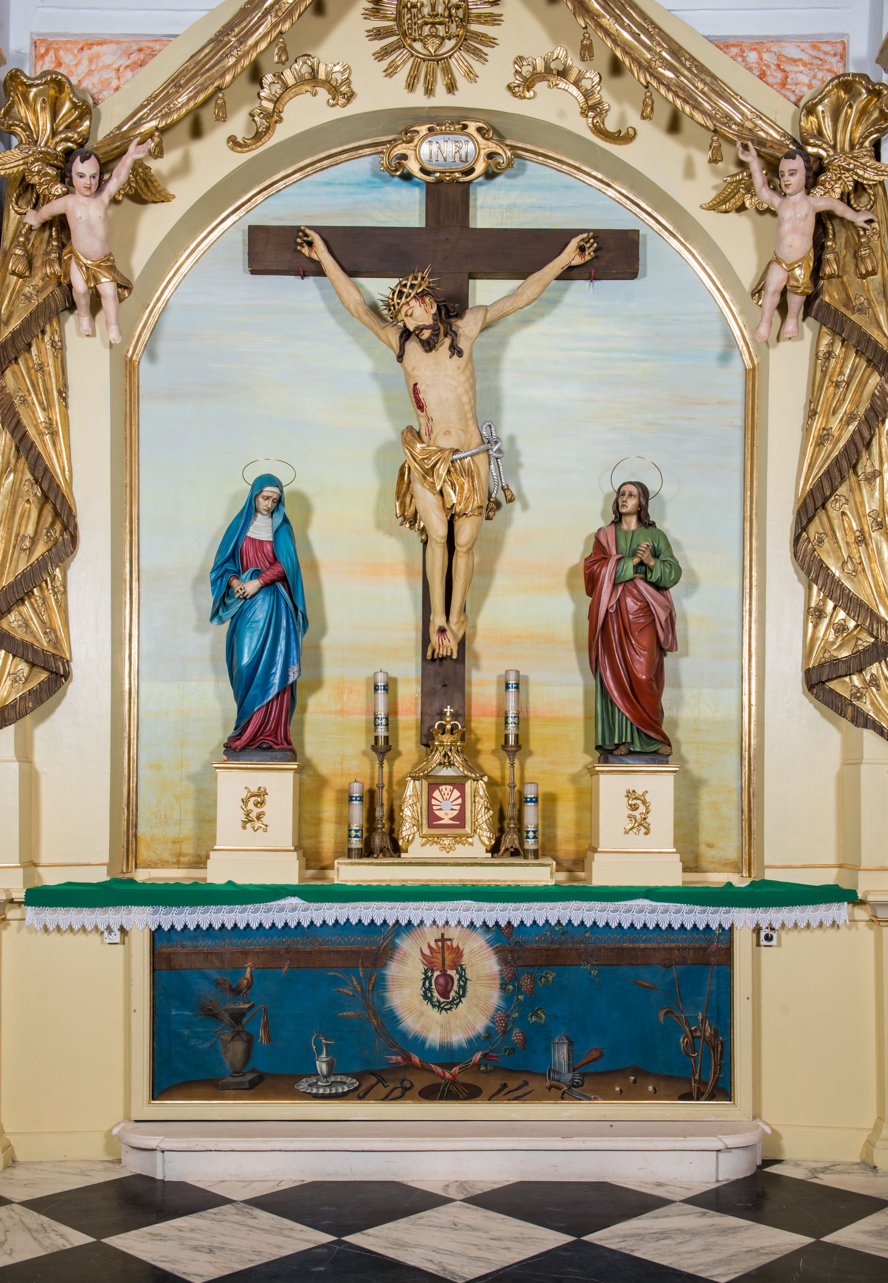 One of the side altars in the parish church in Kęty takes on a form that is rare in the Lesser Poland, adorned with a paludamentum motif. Referring to analogous structures of reredoses, it can be assumed that the Altar of the Crucifixion in Kęty was made in the second half of the 18th century under the influence of the Vienna and Moravian trend.