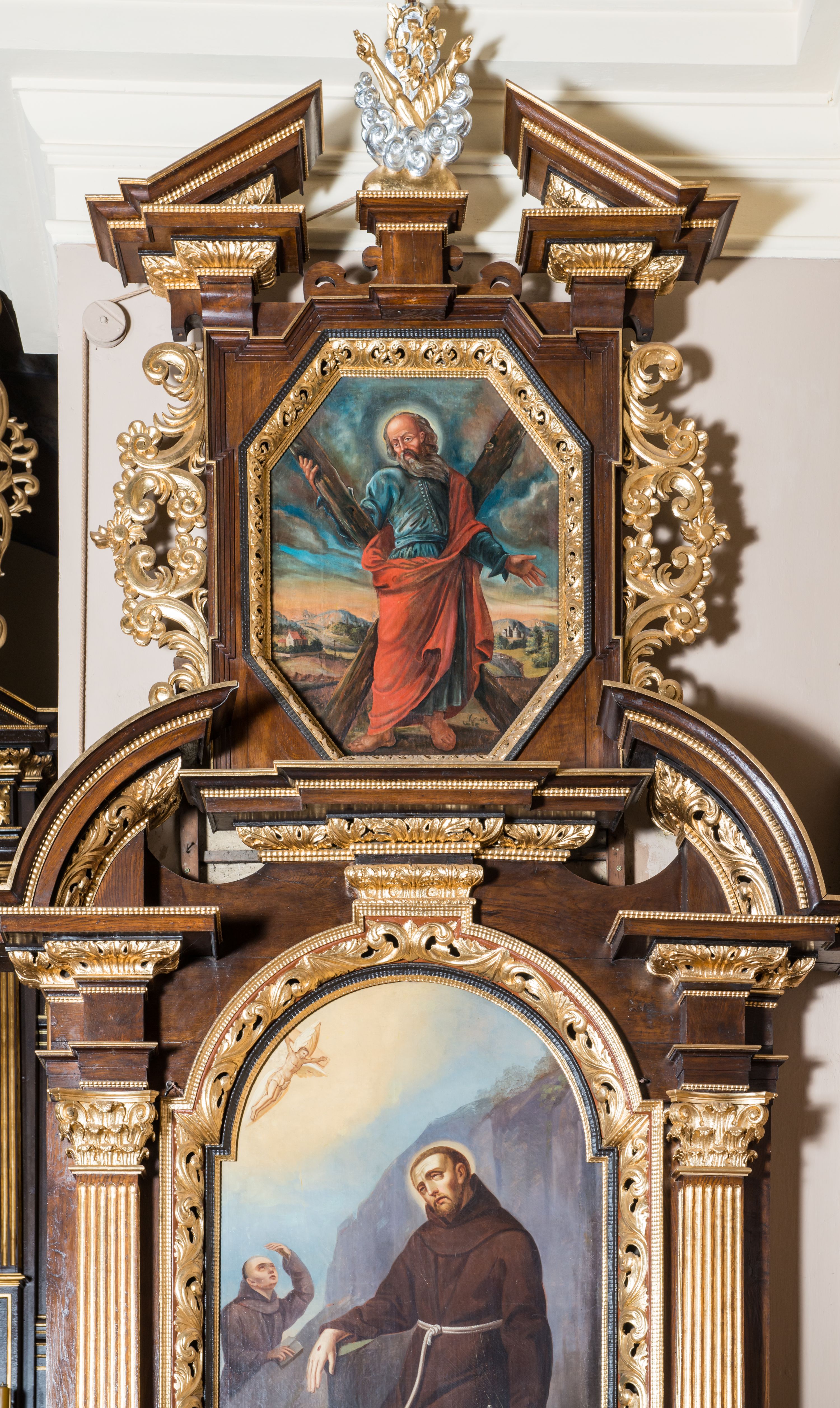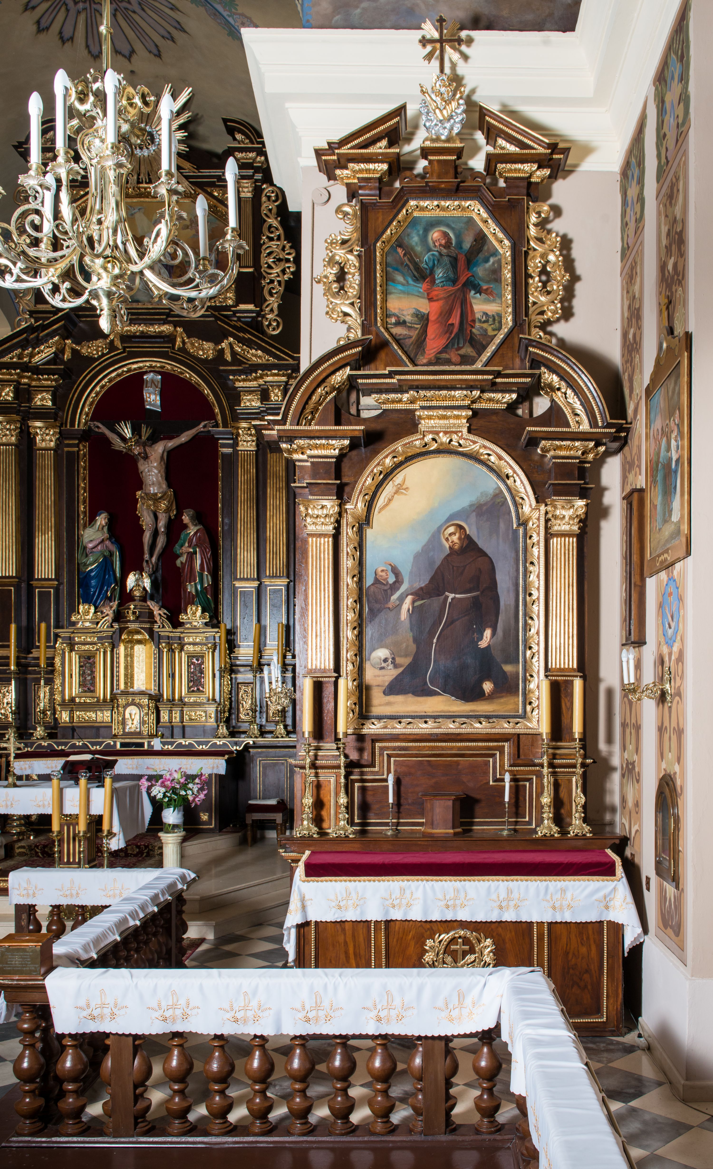 The side altar of St. Francis in the Reformed Church in Kęty was made in 1711-1715 by Brother Modest Gronalewicz. Together with the high altar and two side altars, it is one of the oldest furnishings in the temple. The form of the reredos constitutes an example of a solution typical to the furnishings of Reformati temples. A particularly close analogy are the side altar structures at the Reformati church in Jarosław.