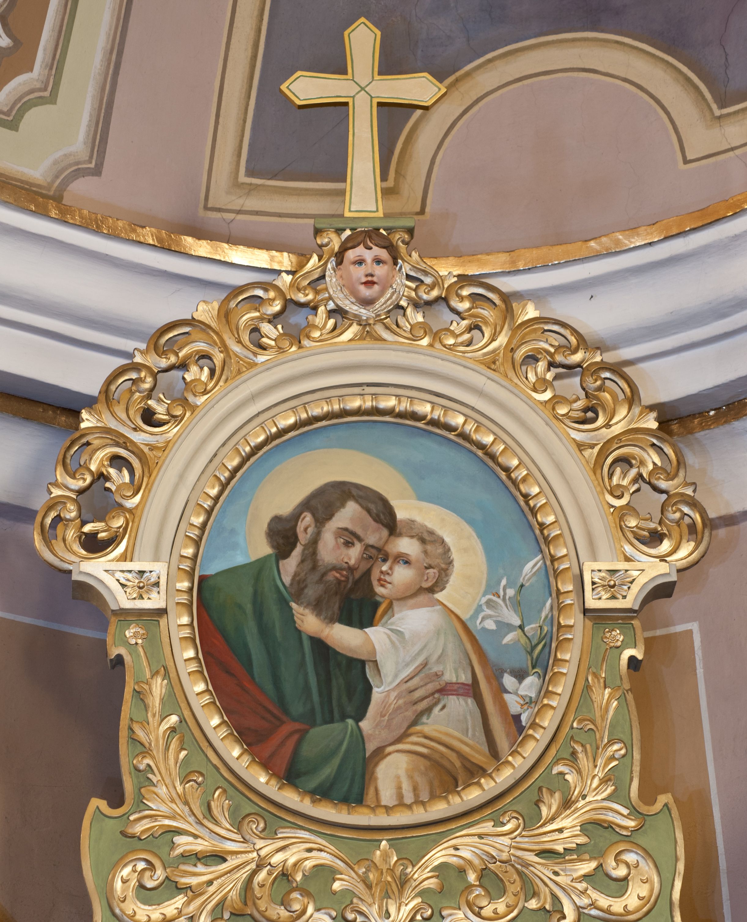 The side altar was probably made in a Tyrolean workshop in the first quarter of the 20th century. In the middle of the altar there is a painting of Our Lady of Perpetual Help brought from the church in Trzciana, and previously brought from Rome as a copy of the miraculous painting from the Roman Church of Saint Alphonsus. On the sides of the altar, there are sculptures of Polish saints: Saint Hyacinth and Saint Casimir the Prince, and in the altar finial one can see the painting of Saint Joseph with the Child. The side axes were reworked by two carpenters from Jabłonka: Czesław Kojs and Ignacy Suwada, who made them in the form of octagonal, openwork tempiettos.