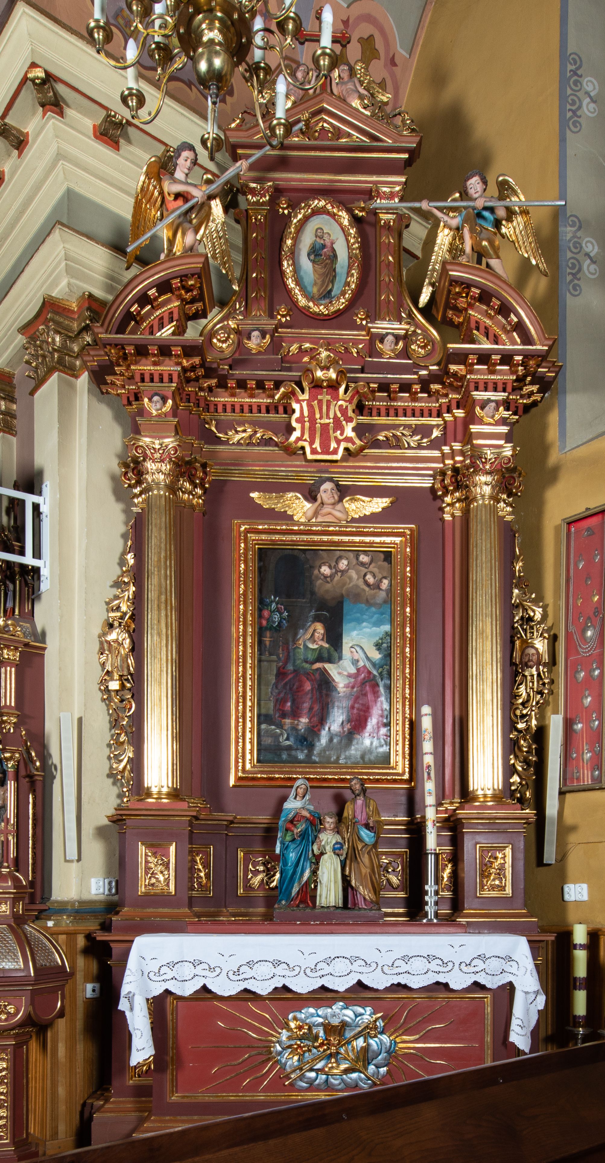 The two side altars in the parish church in Włosienica were made in 1896, most probably in one of Cracow's woodcarving workshops. The structure of the altars is in the Neo-Baroque style, as it refers to the forms that developed in art in the 17th and 18th centuries.