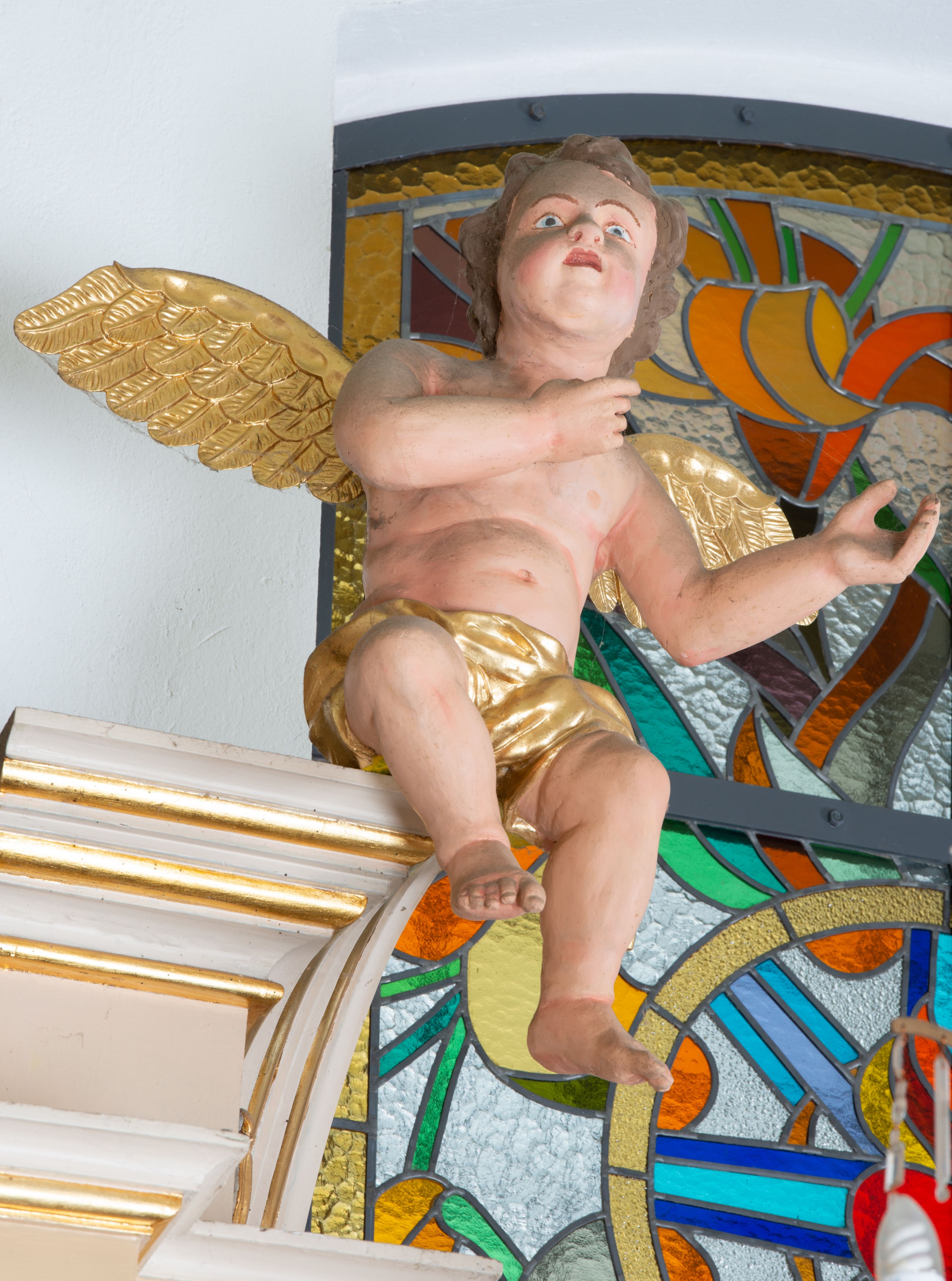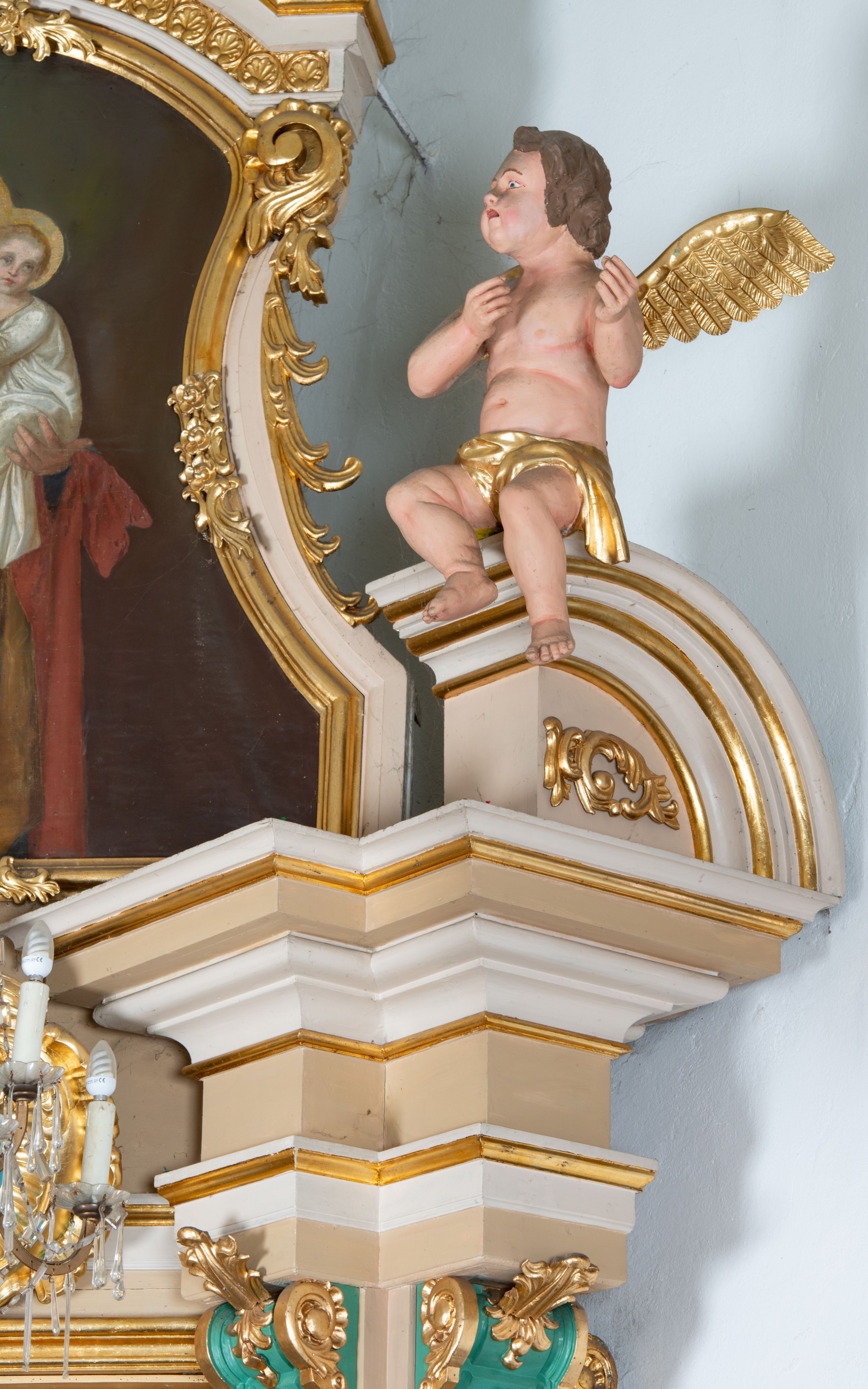 The altar of Our Lady of Lourdes is a perfect example of secondary trading of sacred art works with unique background. In 1796, the altar from the St. Norbert's Church in Kraków, which is no longer included in the Roman Catholic church structure, was bought. The altar is adorned by new sculptures, including the statue of Our Lady of Lourdes ordered in 1895 in the workshop owned by Kazimierz Mieczysław Chodziński in Kraków, a foundation of father Szewczyk. From the original decor, statuettes of angels located in the altar finial have been preserved.