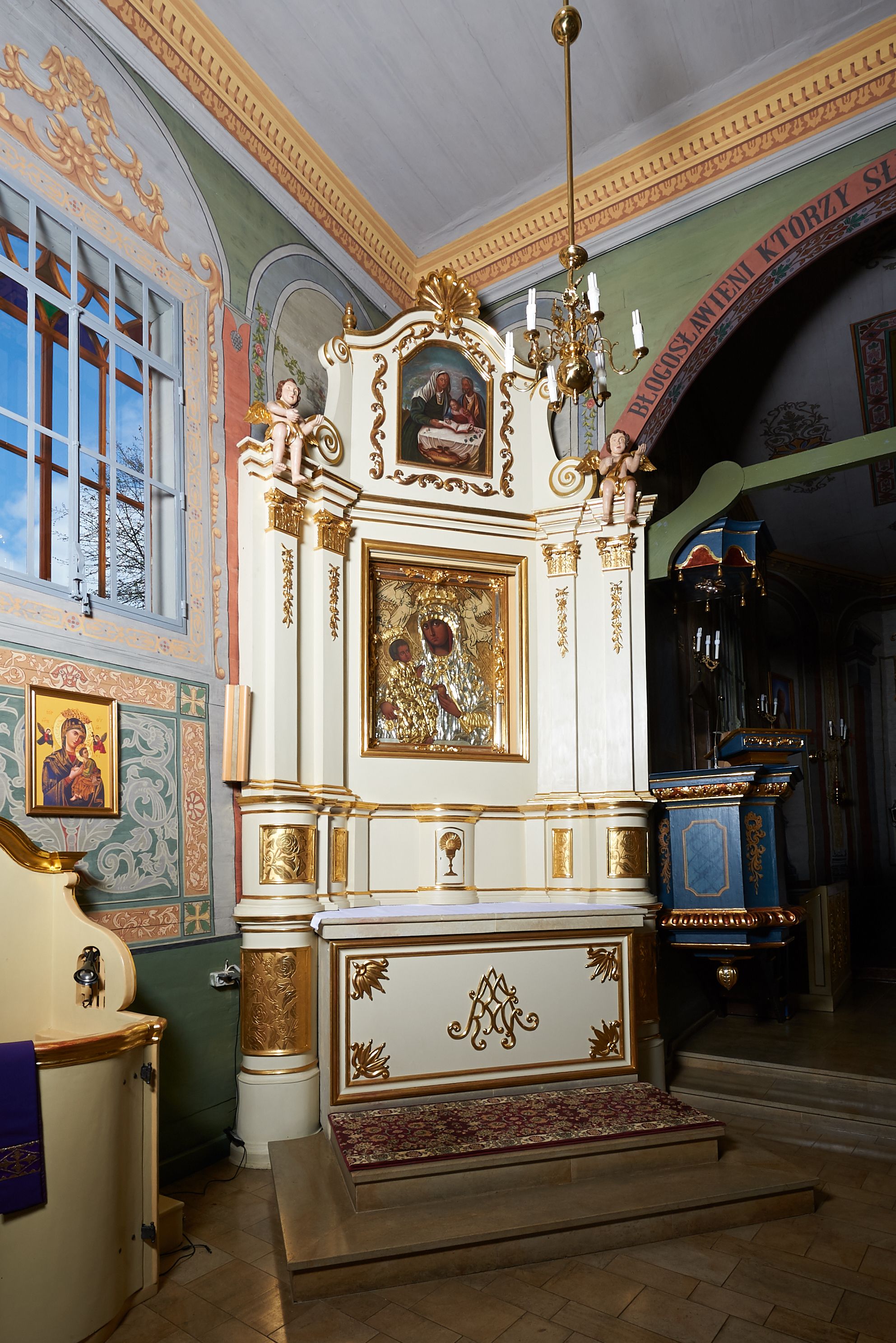 The altar from 19th century and with a structure typical of this period. In the main area of the altar there is 16th-century painting depicting the Virgin Mary and the Child. On a sliding panel there are two paintings: St. Nicholas from the mid-19th century and - St. Joseph from 1901, painted by Antoni Gramatyka of Cracow. A painting depicting Teaching of Mary (the turn of the 18th and 19th centuries) is located in an altar finial.