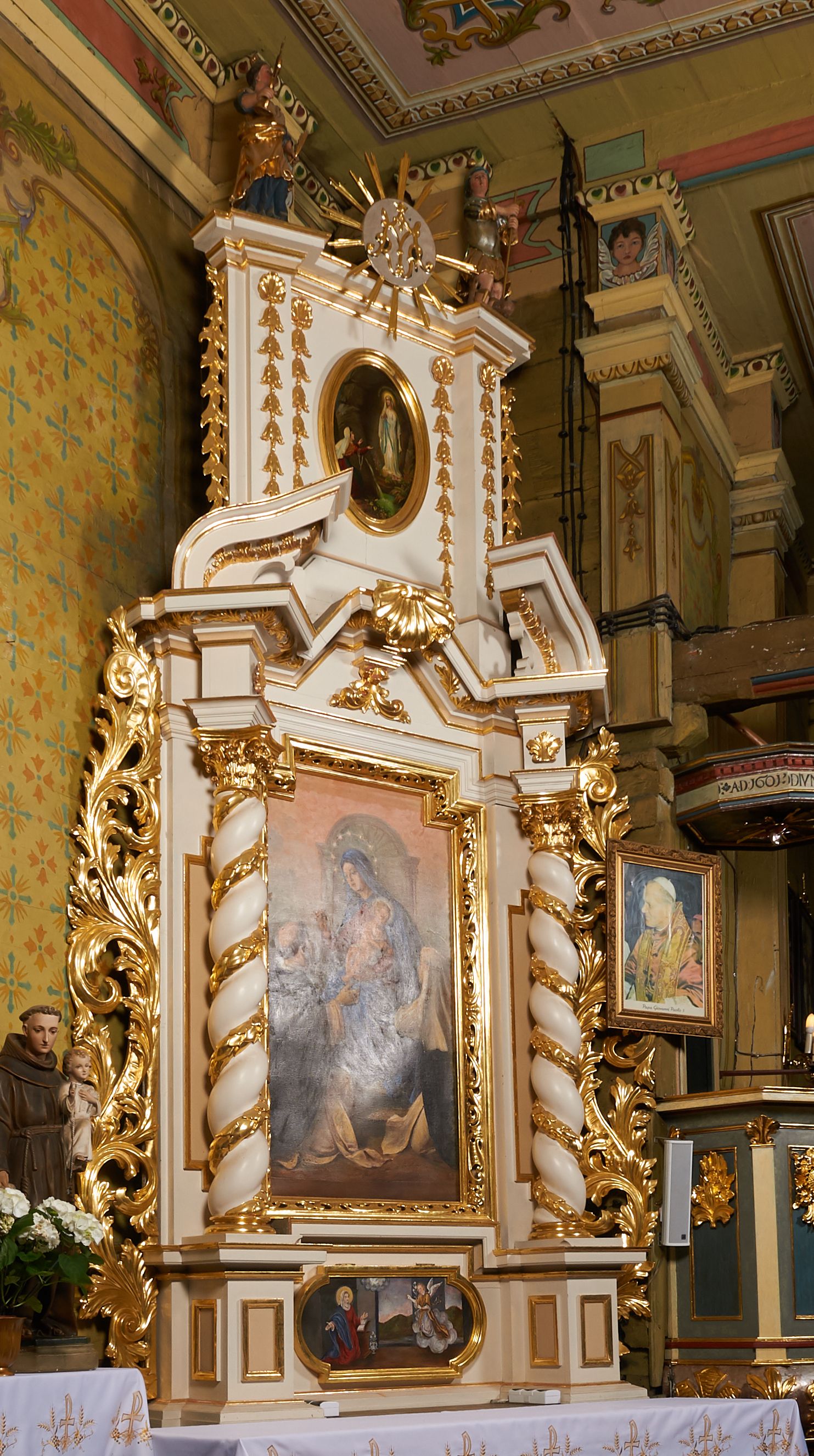 The original altar was built in the years 1742-1747 and was dedicated to St. Anne, and later to the Transfiguration. It was destroyed during the war in 1914. In the years 1929-1930, on the initiative of then parish priest Józef Raźny, the altar was reconstructed and modelled on the neighbouring altar of St. Joseph, and was given a new invocation of Our Lady of the Rosary.