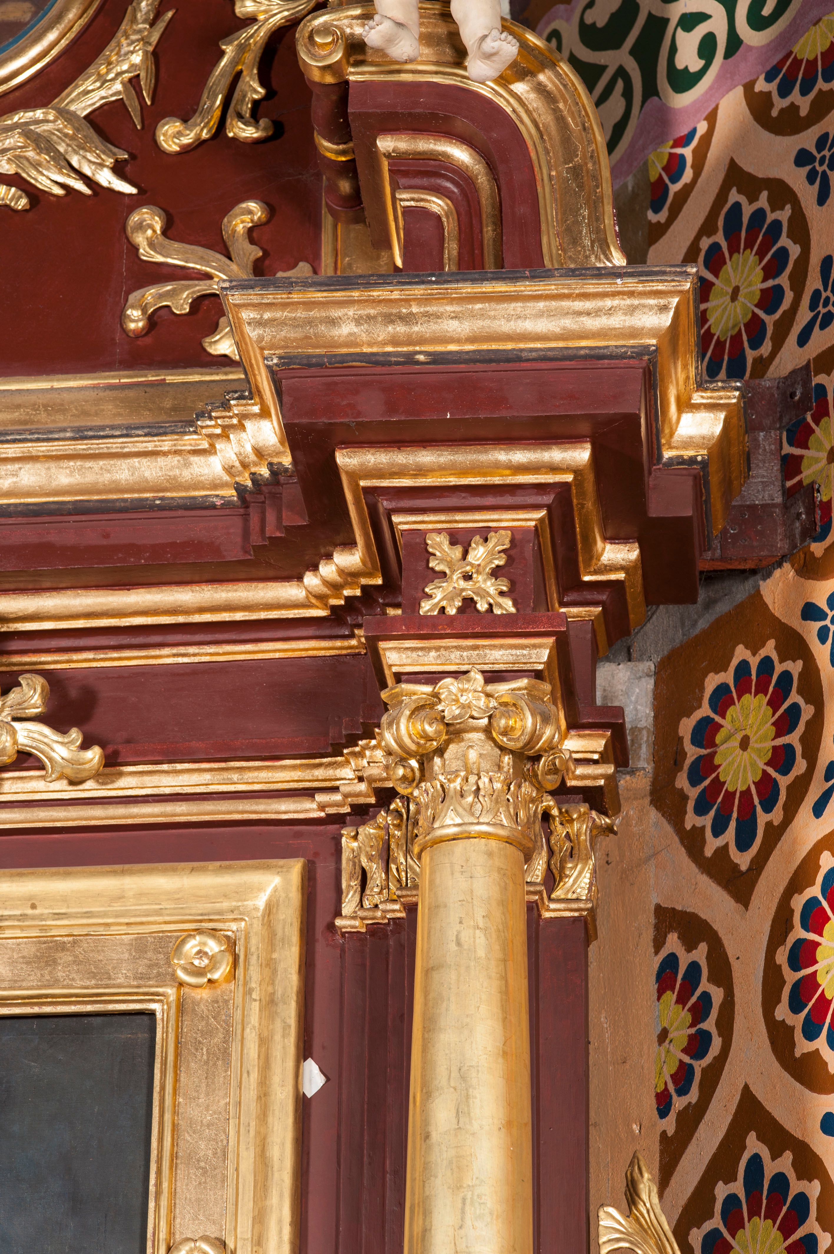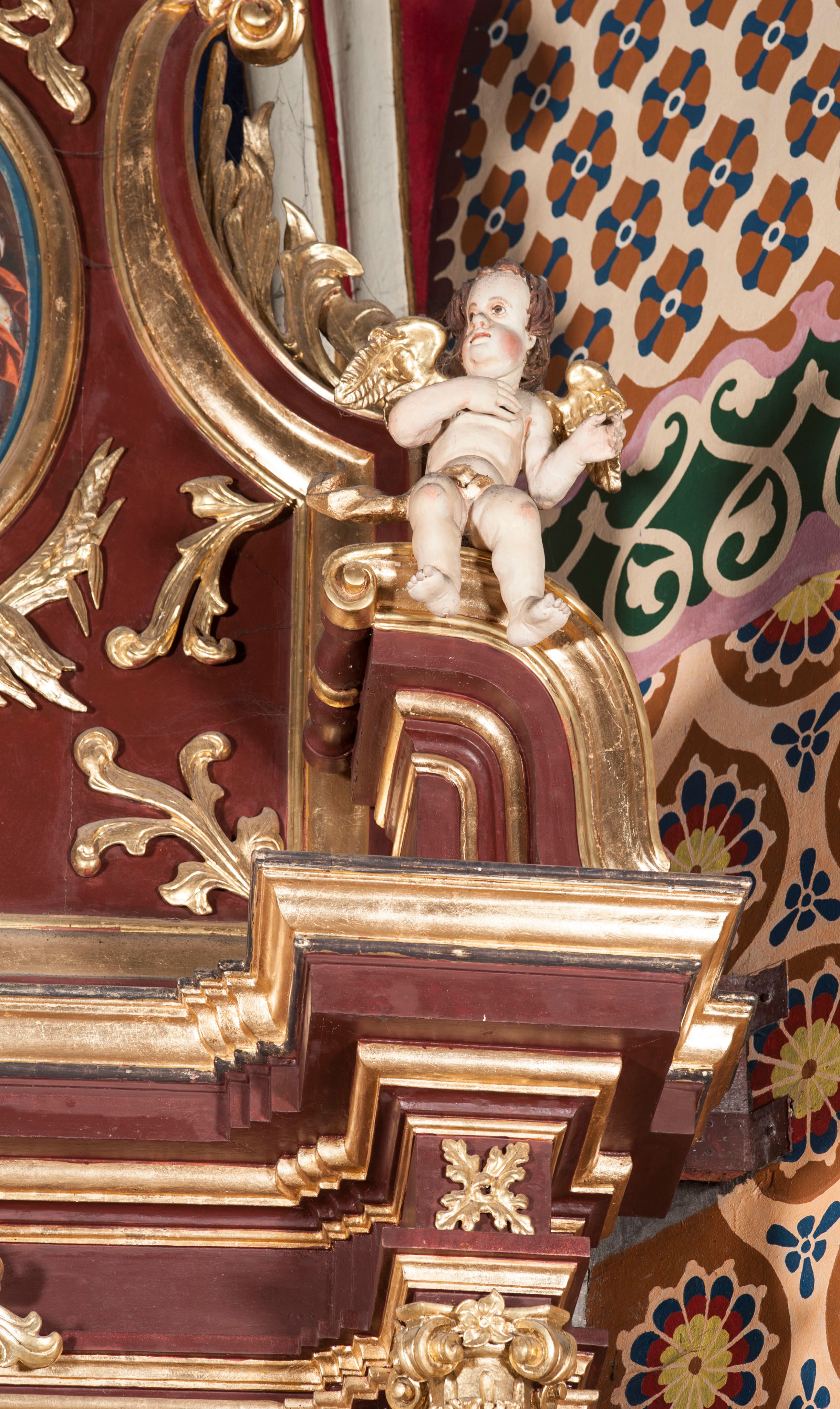 The side altar was built in 1899. The reredos represents the aedicula type, i.e. a one-axis and one-storey reredoses with the altar finial located on a pair of structural supports. It was the most popular type of reredos in the 17th and 18th century that could be also used in the 19th century, which can be observed on the basis of the altar described.