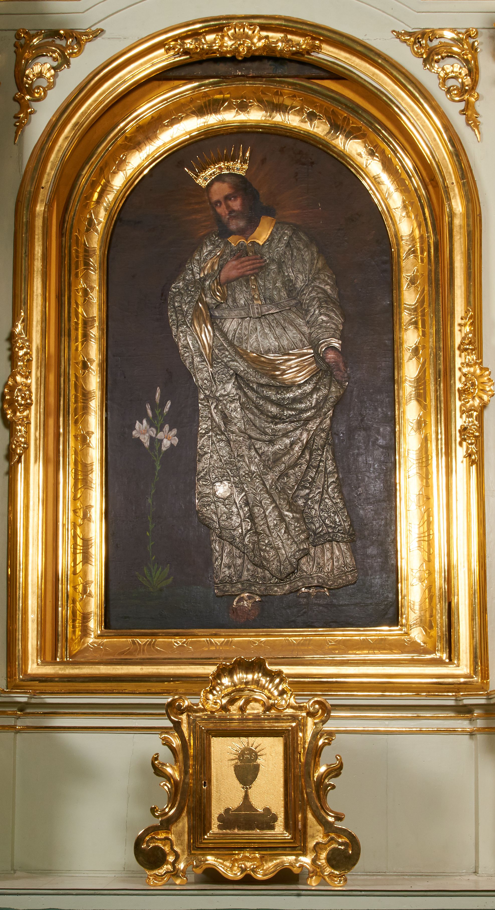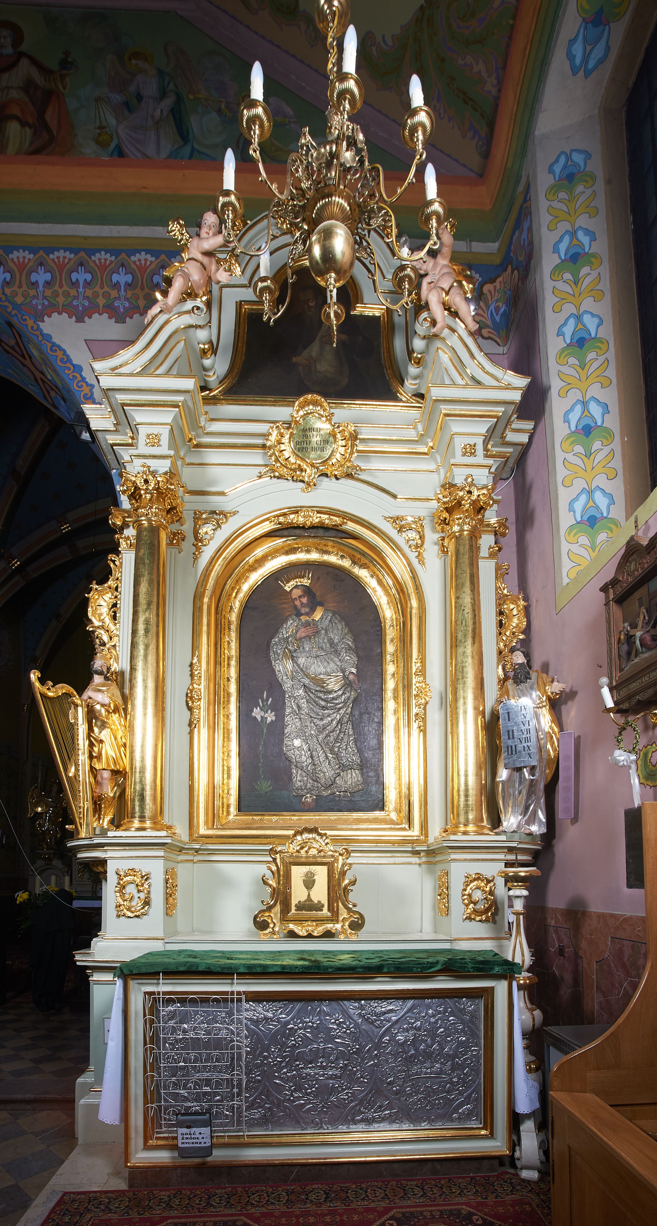 According to the visitation records from 1783, furnishings of the church, thus altars and sculptures were created in 1766 on the initiative of the then parish priest Andrzej Dominik Lipiewicz. The St. Joseph's altar corresponds to aedicula structures - typical in the 18th century. It was created in an unknown workshop.