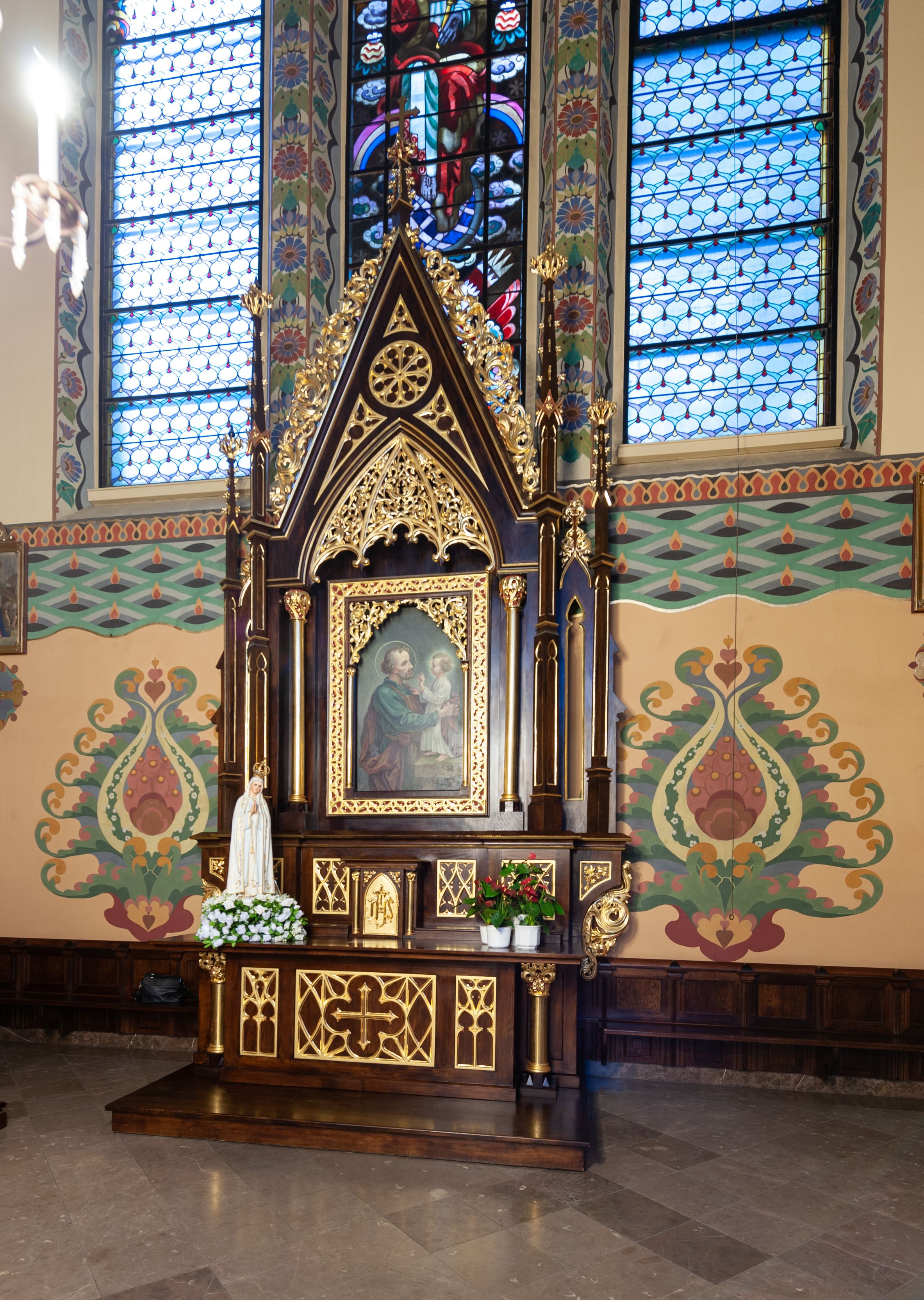 The altar was made by Andrzej Węgrzyn and Stanisław Dobrowolski in 1956. In the middle area there is a painting of St. Joseph and the Child, created in a traditional iconographic pattern by the local artist Stanisław Ciężadlik. The painter is also an author of ornament surrounding the painting.