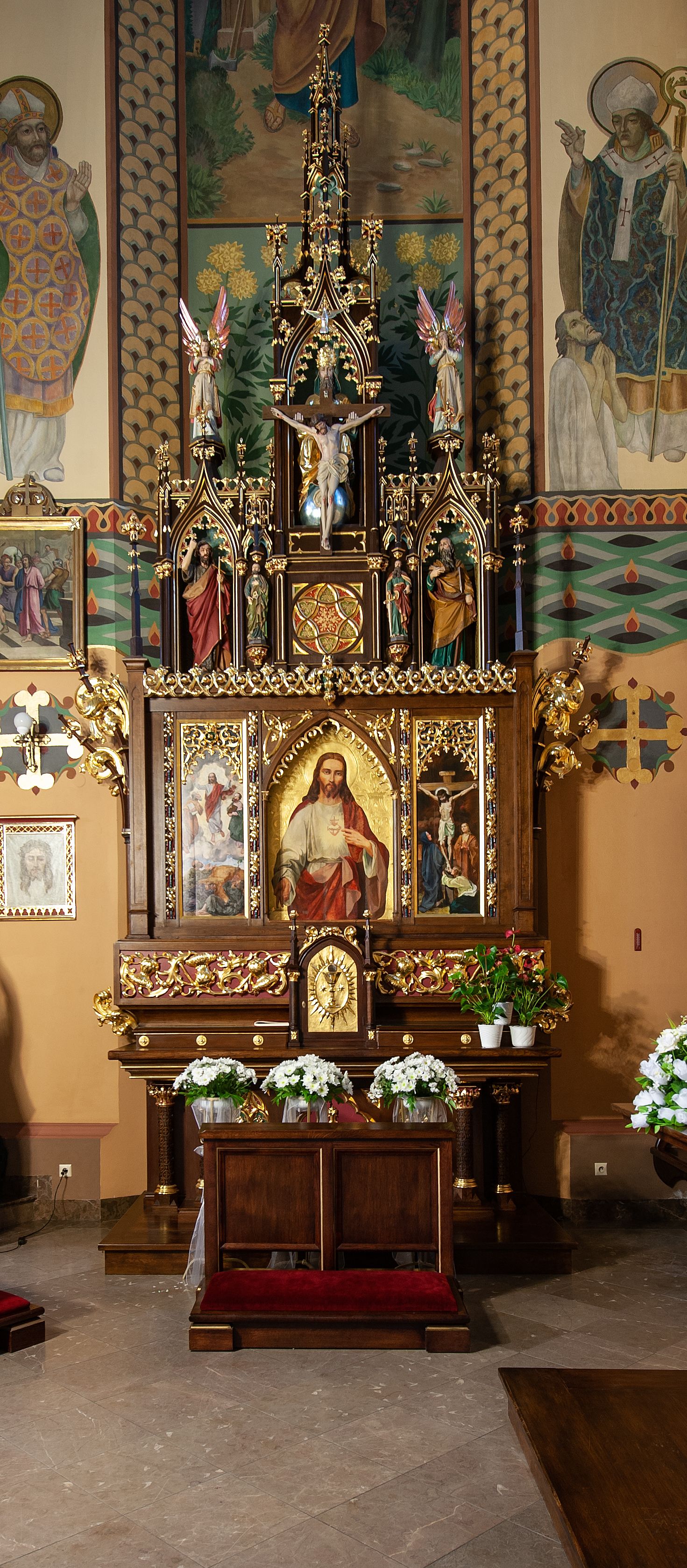 The altar was made in the 19th century in the Neo-Gothic style and it originates from the former church in Mszana Dolna. In 1927, Juliusz Markieiwcz prepared a design of the altar's transformation by adding a new, middle part in a form of a triptych.
