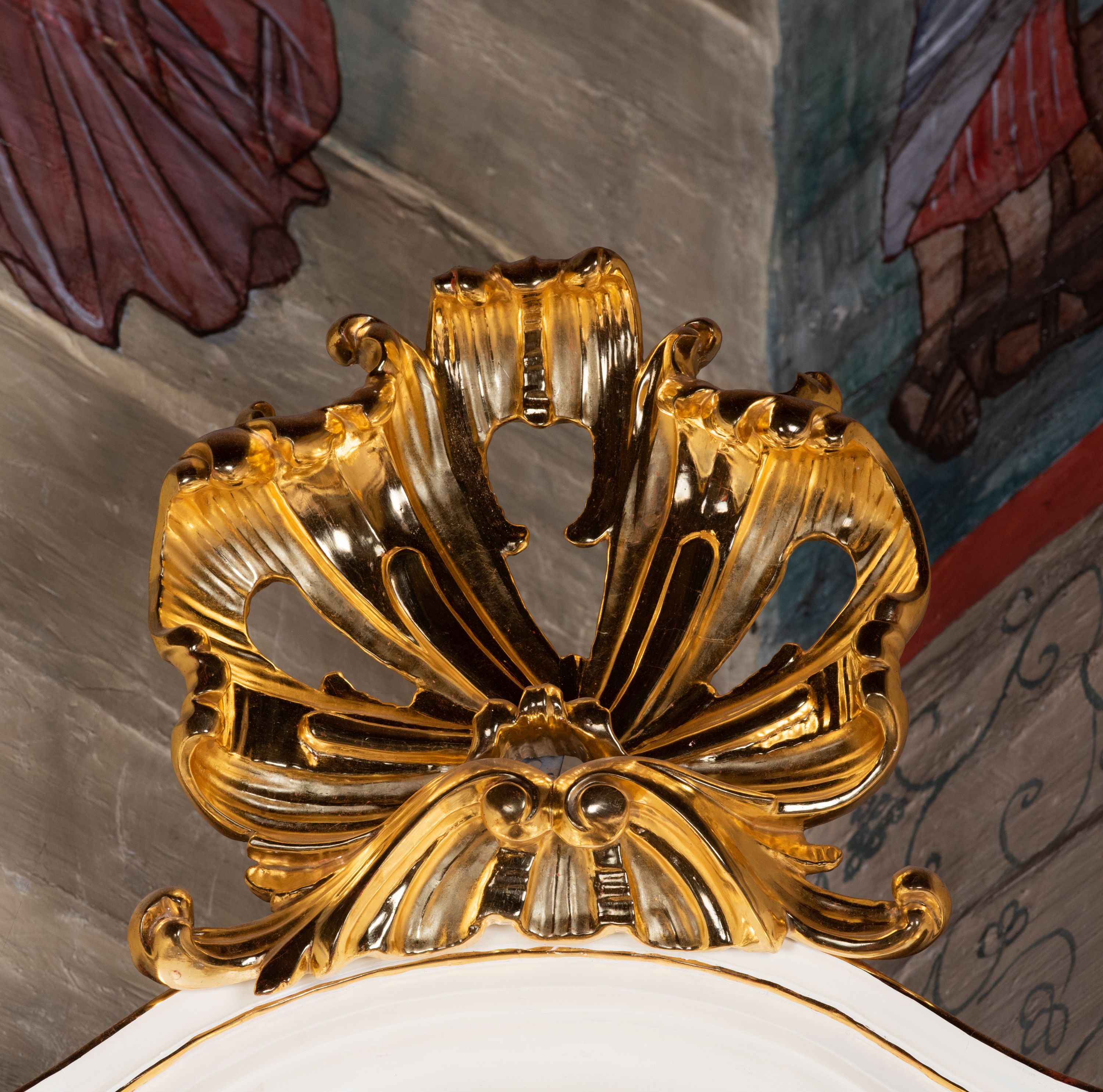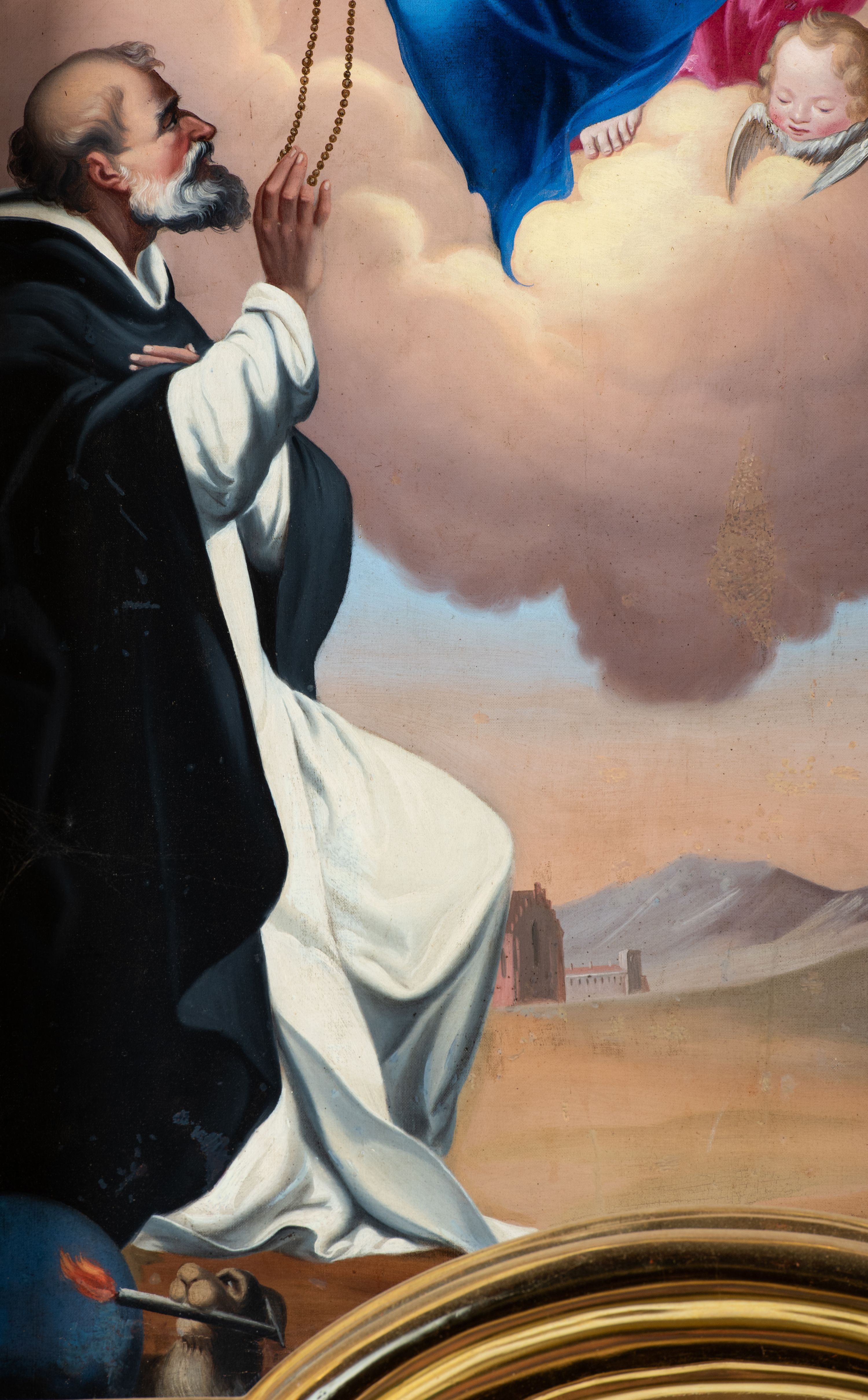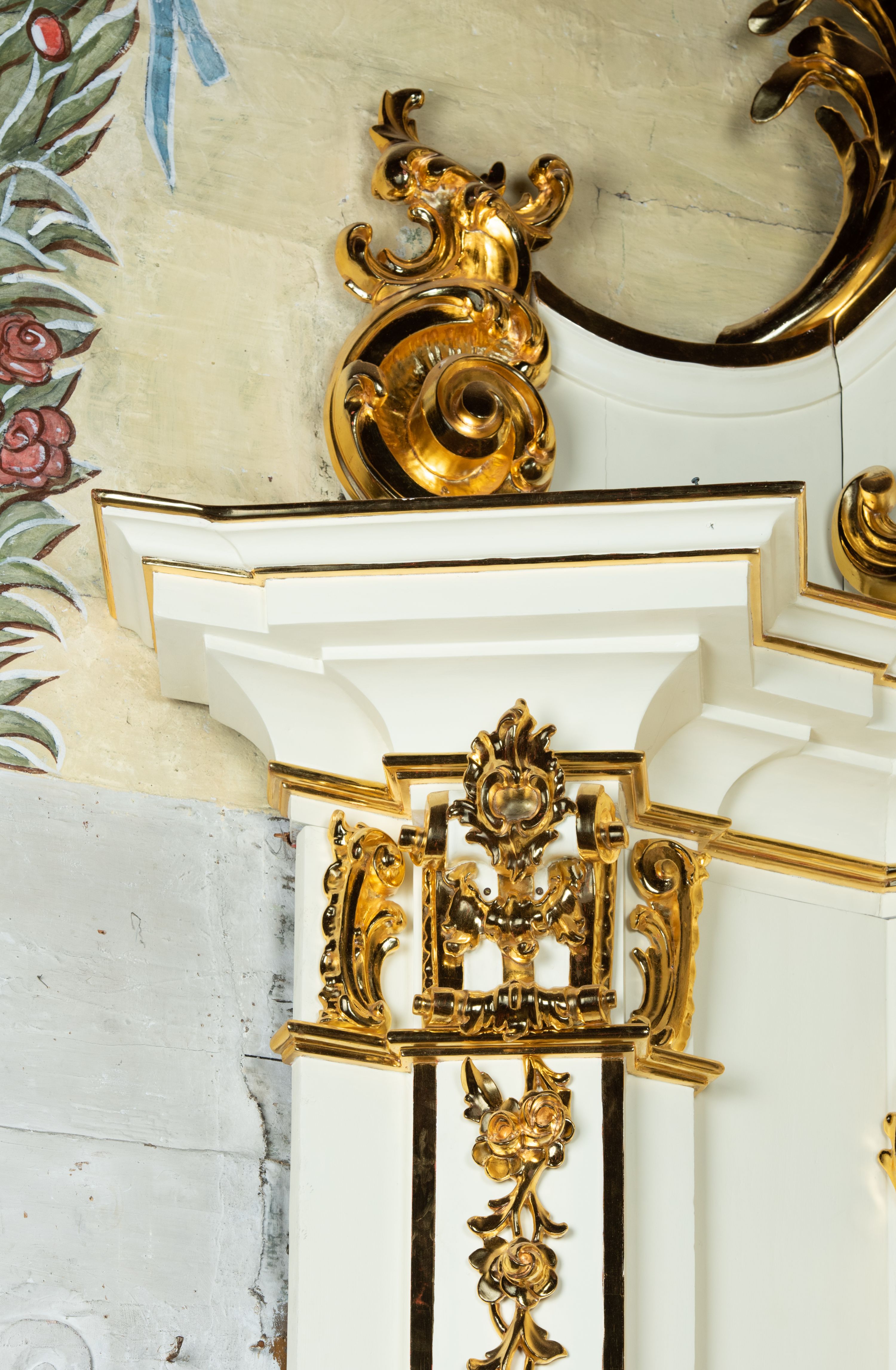The side altar in the church in Marcyporęba was probably made by an anonymous employee of Antoni Gegenbaur in the second half of the 18th century. In the middle area there is a painting of Our Lady of the Rosary with Dominican saints, and in the altar finial there is a painting of Saint Anthony of Padua with the Child.