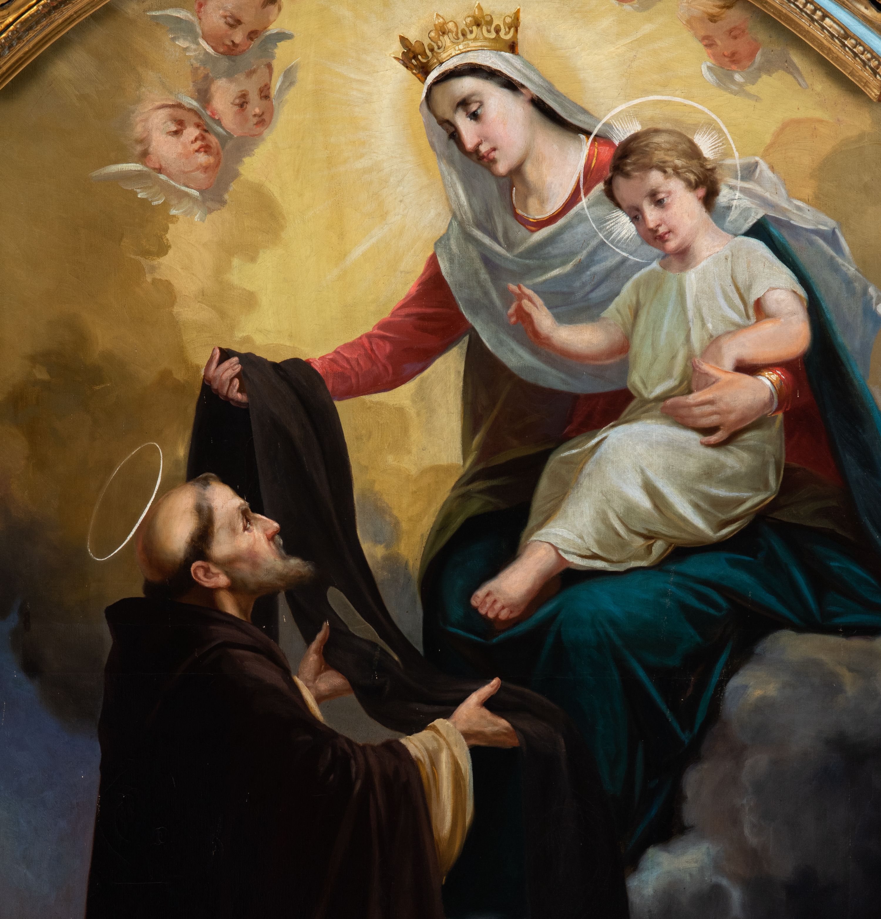 The altar may have been built ariund 1666. The work is a typical example for this period of the altar structure characterised by a simple, uniaxial, but two-storey form, richly decorated in an auricular style. He belonged to the Scapular Brotherhood which was established at a church in Zembrzyce on 8 August 1666. The altar is decorated with the 19th-century paintings: the central part of the altar contains paintings of: Our Lady of the Scapular, Joseph and the Child. There is a painting of John the Baptist on a sliding pane, while the altar final contains painting of Catherine of Alexandria. At the sides of the altar, sculptures of St. Barbara and St. Catherine of Alexandria from the 17th century are placed.
