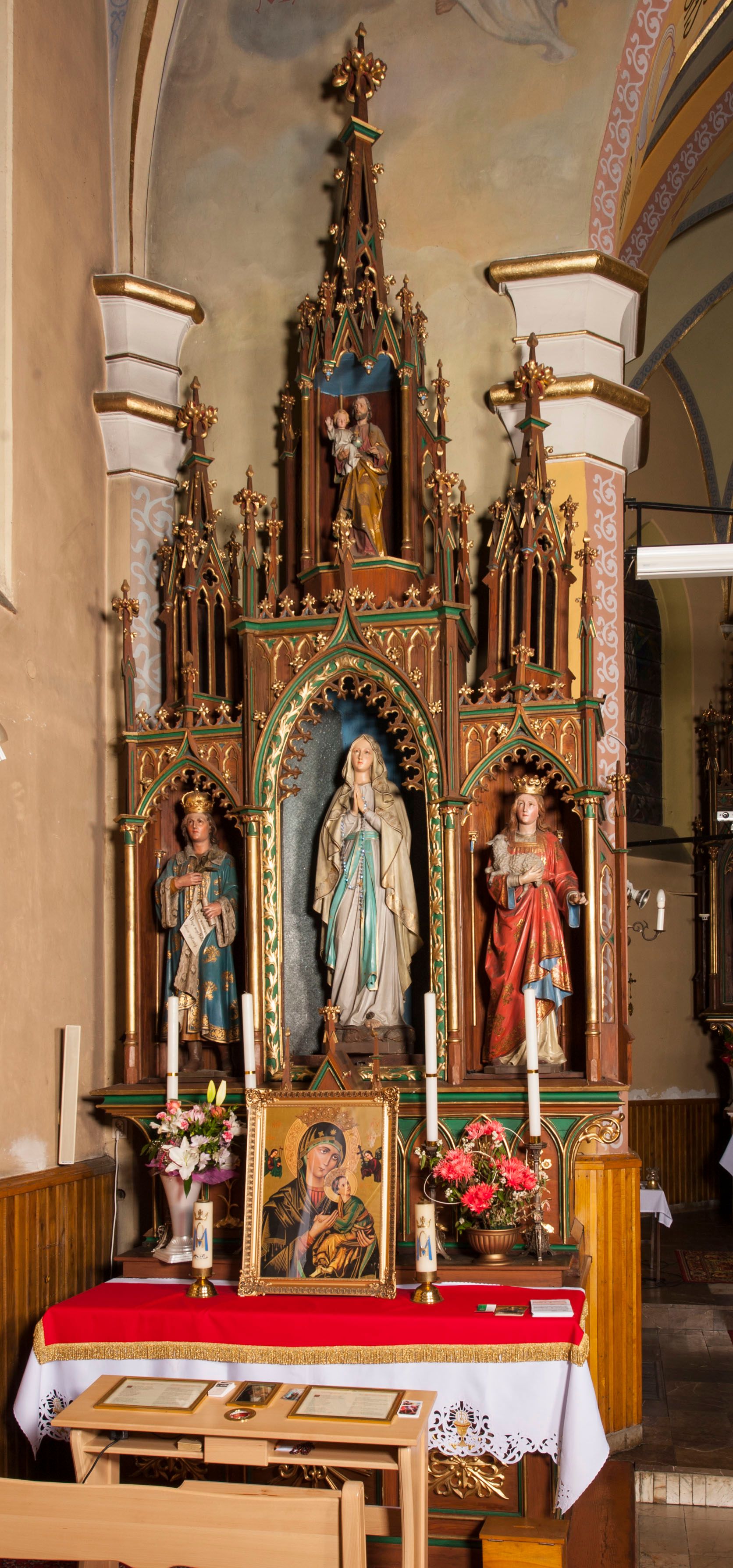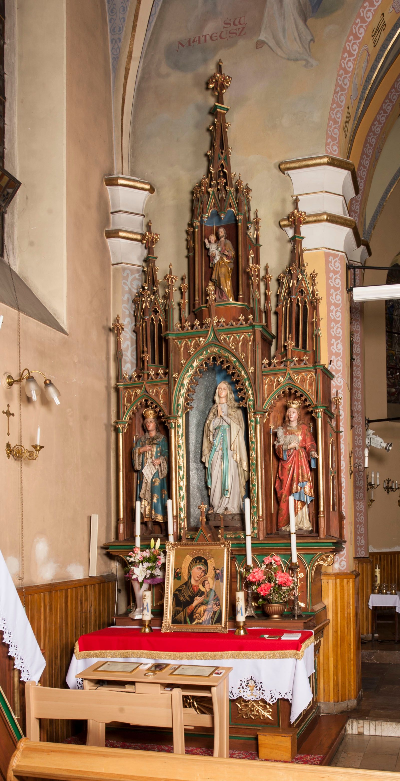 Side altar of Our Lady of Lourdes in the church in Stryszawa was created almost simultaneously with the body of the building and, like it, was made in the neo-Gothic style. Its author was Stanisław Jarząbek of Kęty, who made all the altars in the main nave.