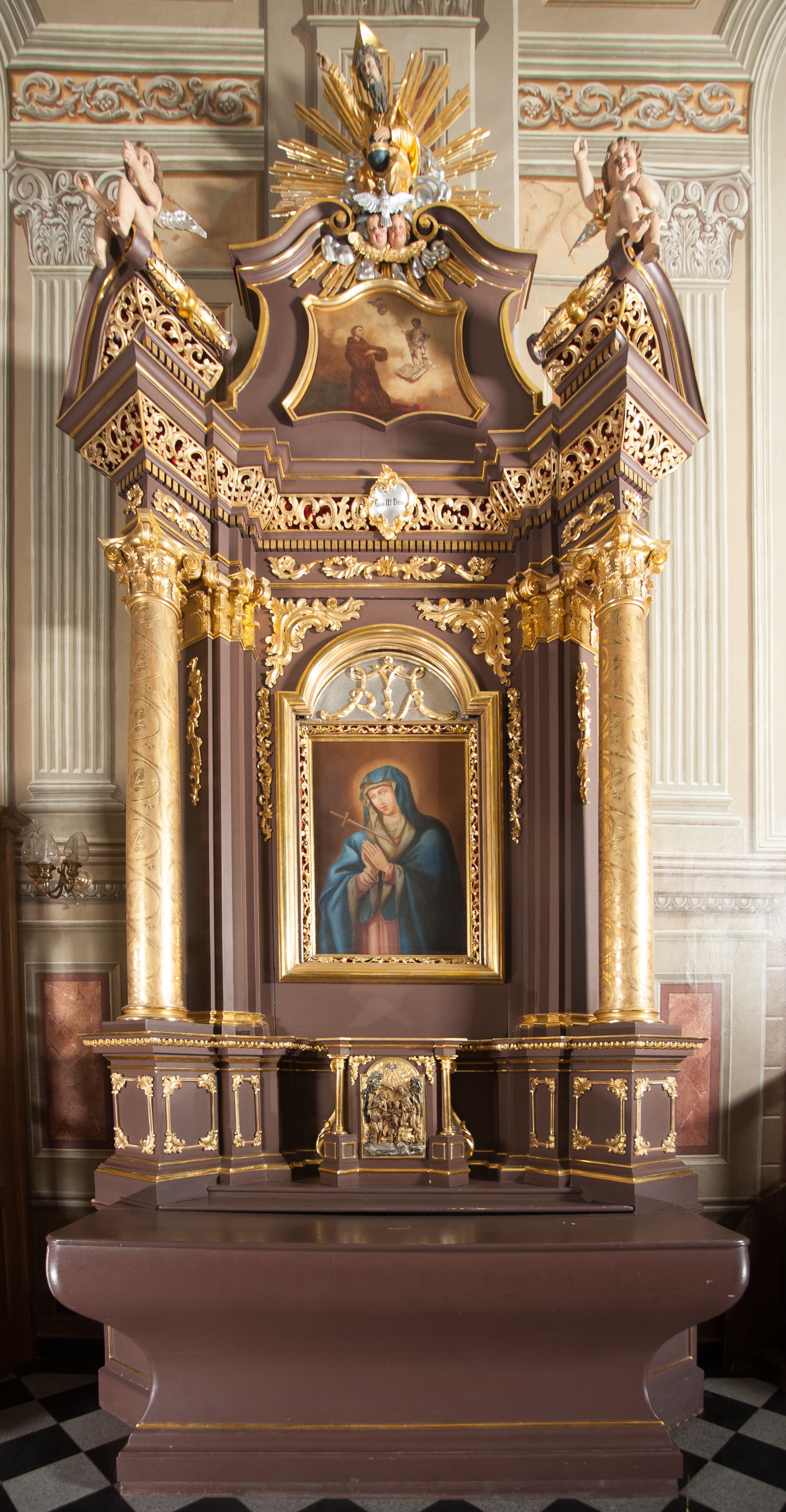 The altar of Our Lady of Sorrows or Michael the Archangel was built in the 1860s. Originally it was set in the Morsztyn chapel, now it stands in the northern nave. It refers strictly to Baroque art patterns, it can be seen as a neo-style work or stylishly delayed.