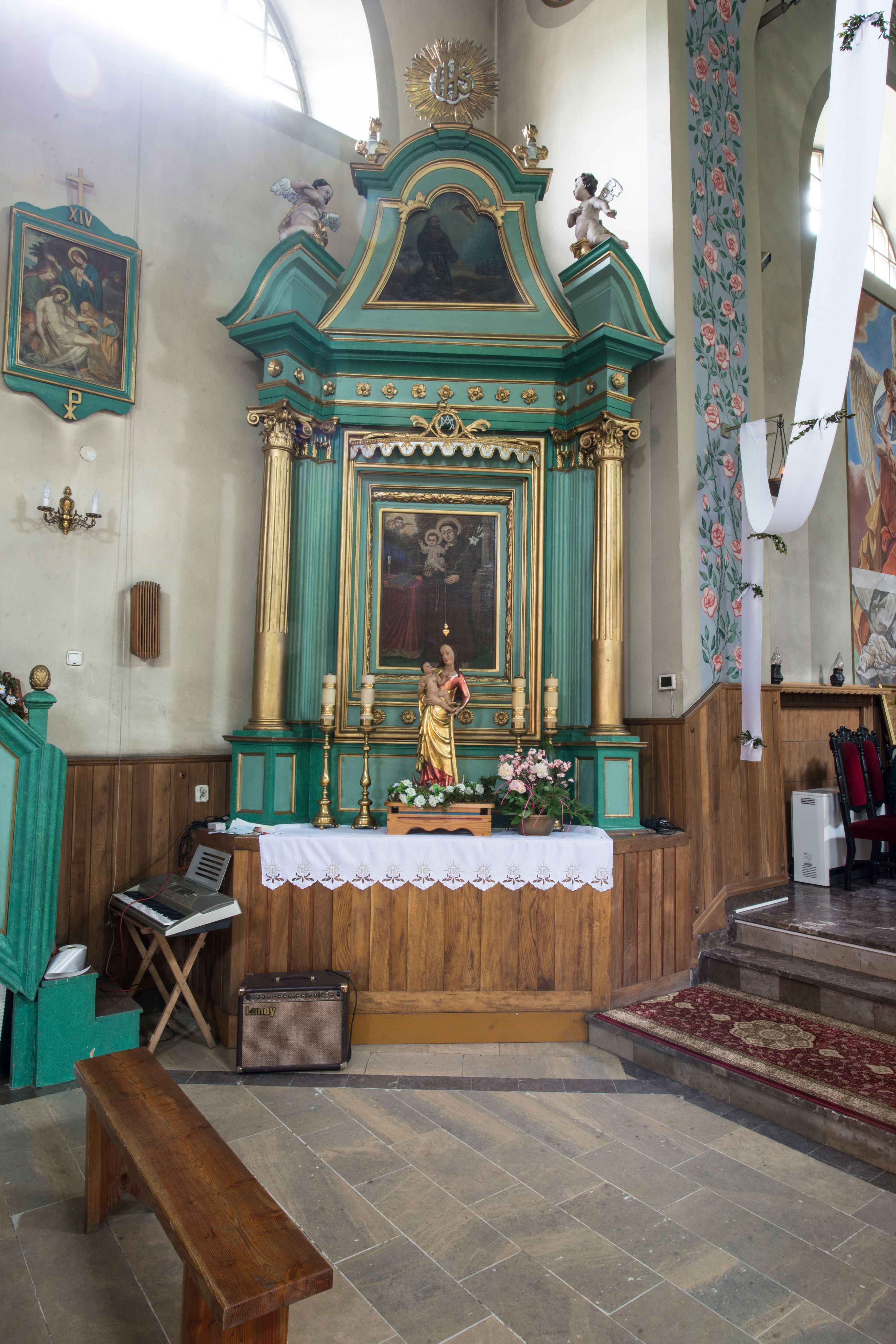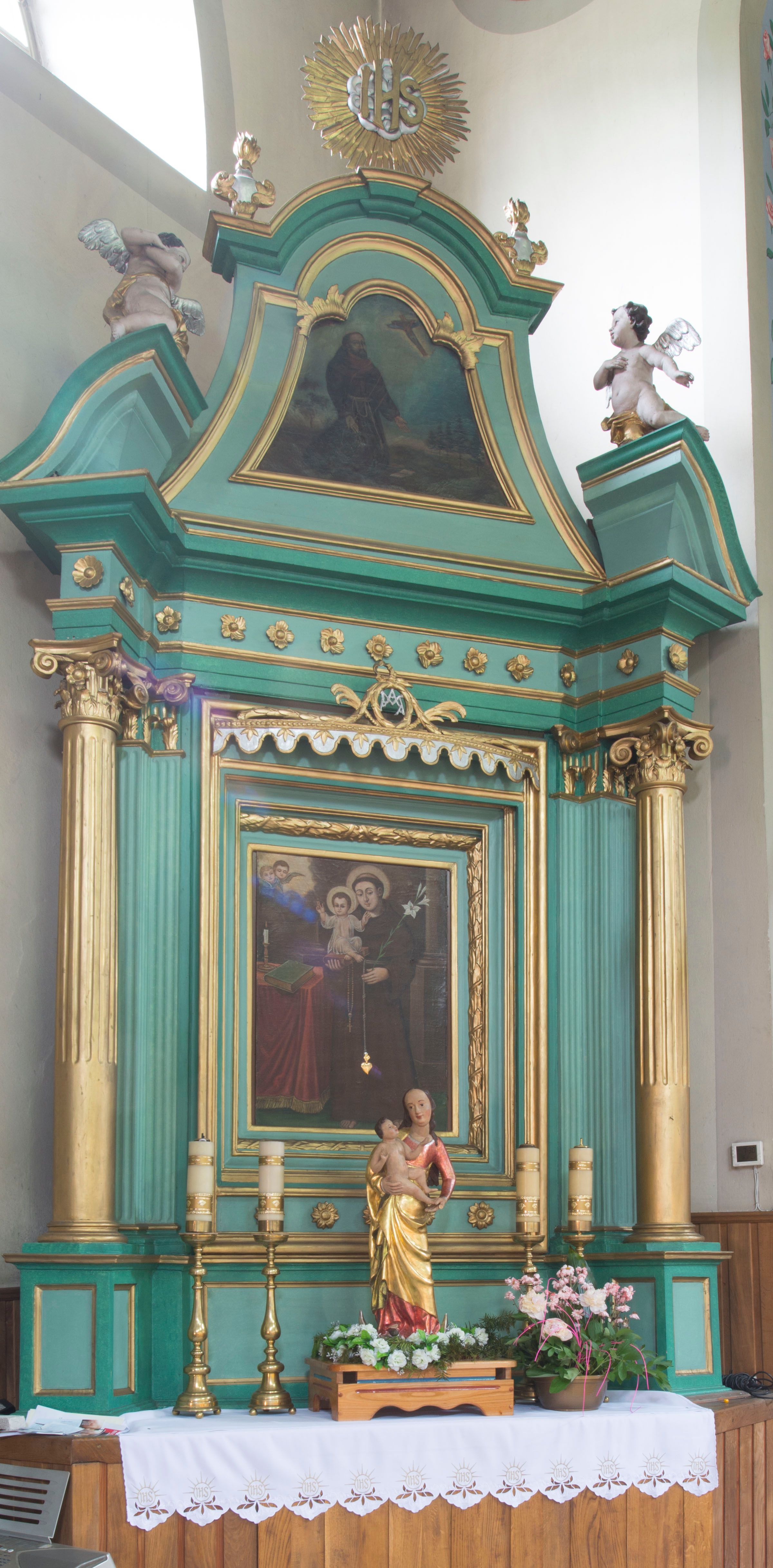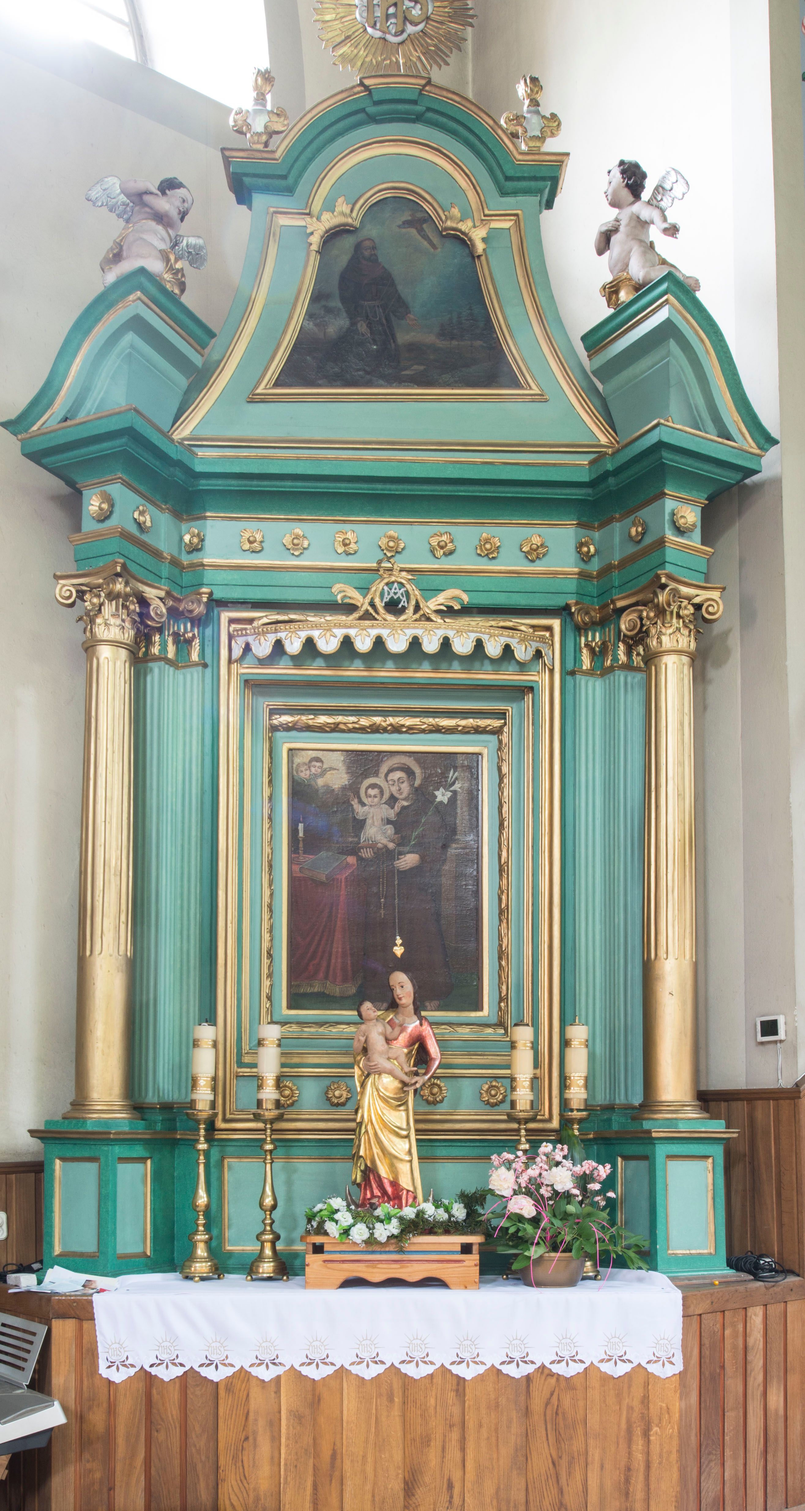 Altar with the representation of Saint Anthony of Padua in the Church of the Holy Name of Mary is, together with the two other altars, the pulpit and the choir, a coherent article of furnishings created for a newly built temple in 1828. All of them come from the same workshop, which used historising forms. The influence of the late Baroque is visible in the side altars.