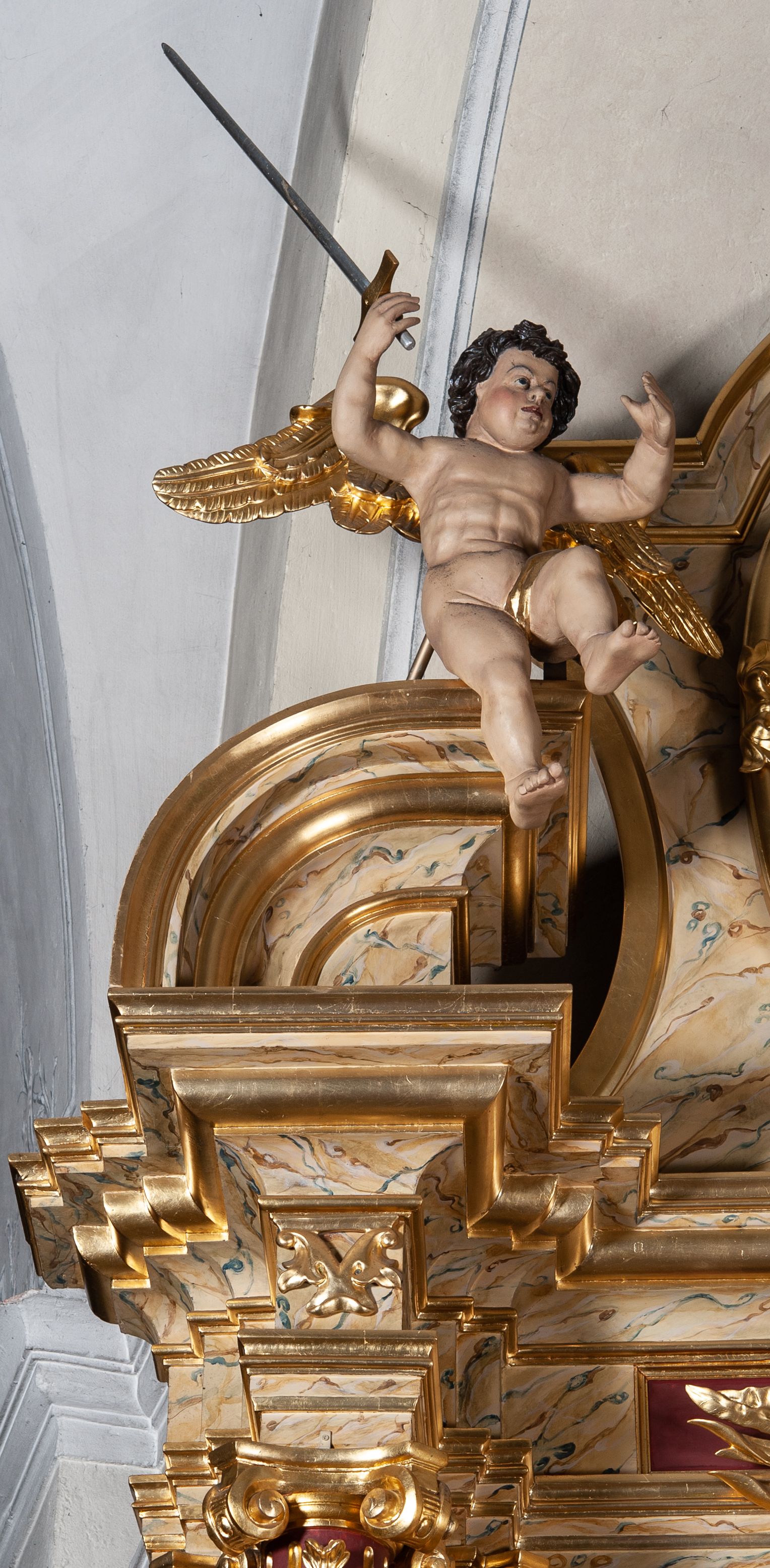 The reredos was made in the second half of the 18th century. Its structure and ornaments used indicate the influence of Late Baroque and Rococo styles.