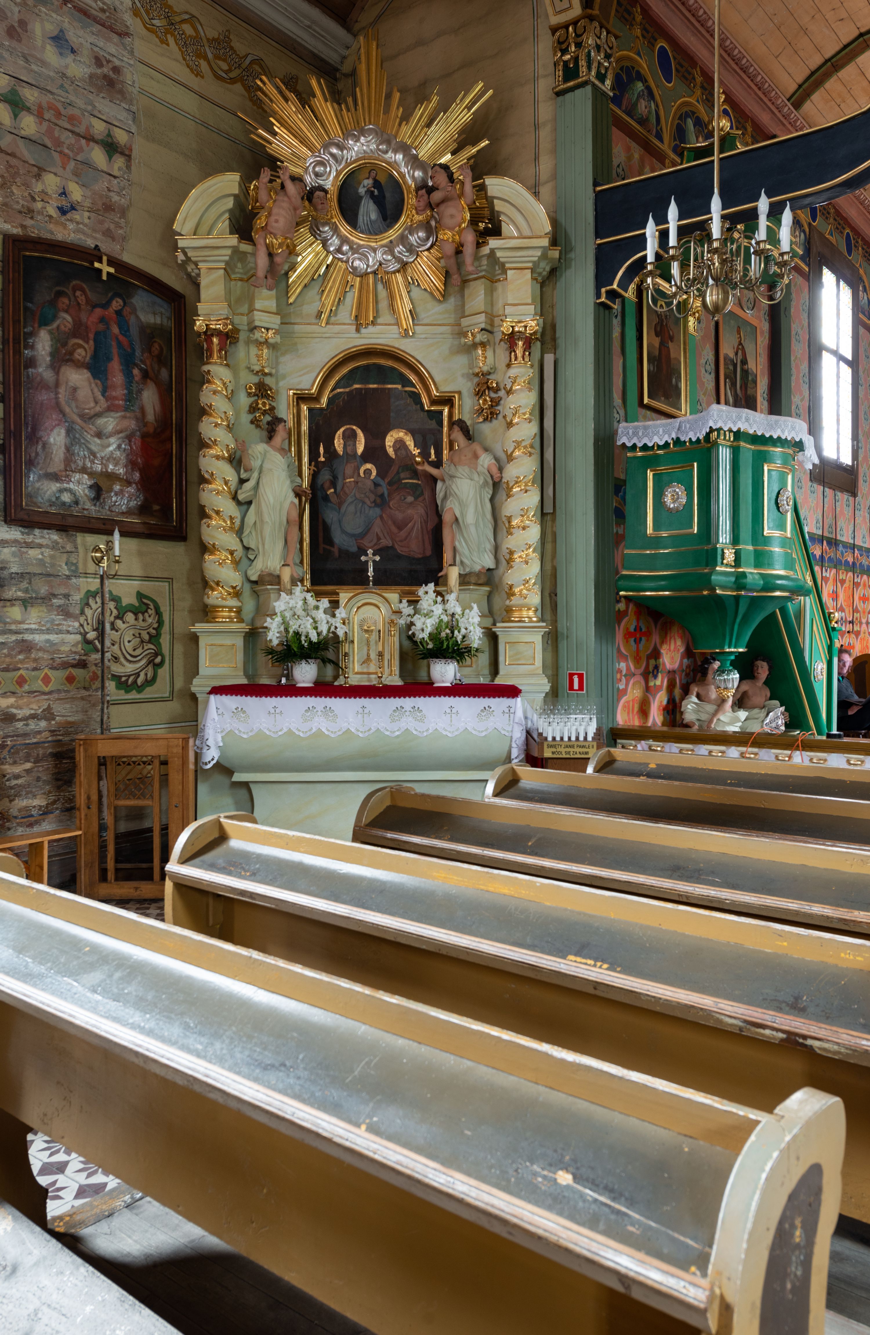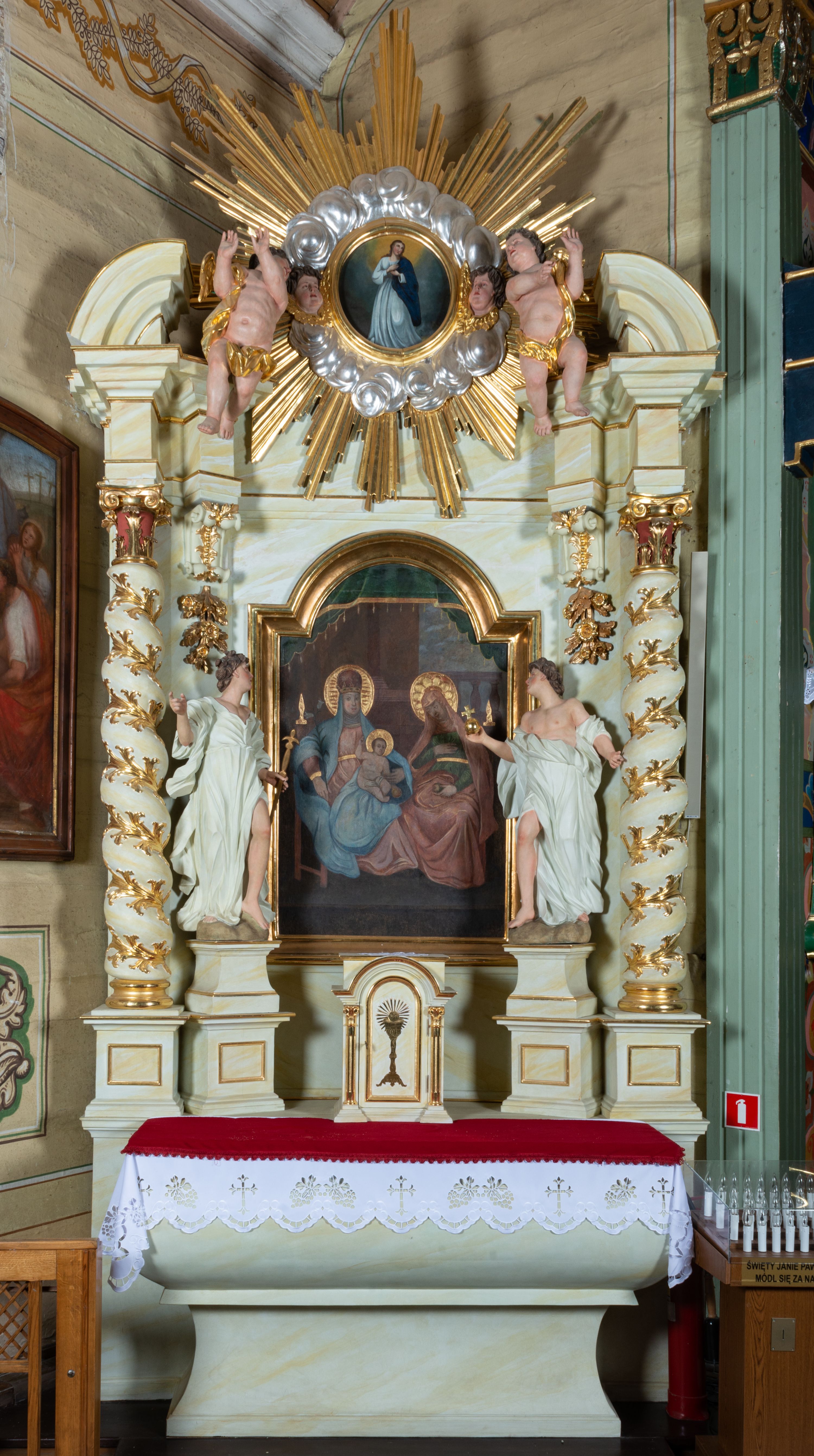 The side altar of Virgin and Child with Saint Anne in the Baroque style was transferred from the church in Niegowić and was inappropriately reconstructed out of the original and the newly-made elements. The next reconstruction was made around the year 2011.