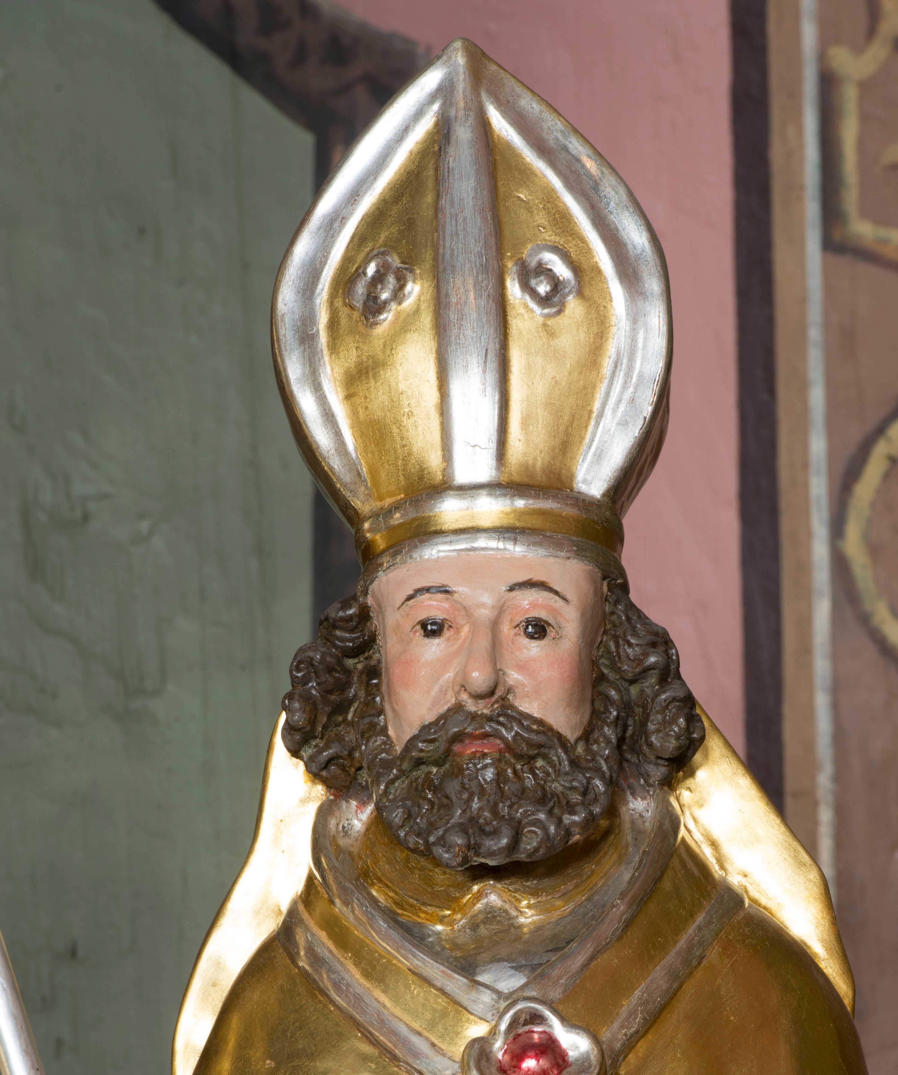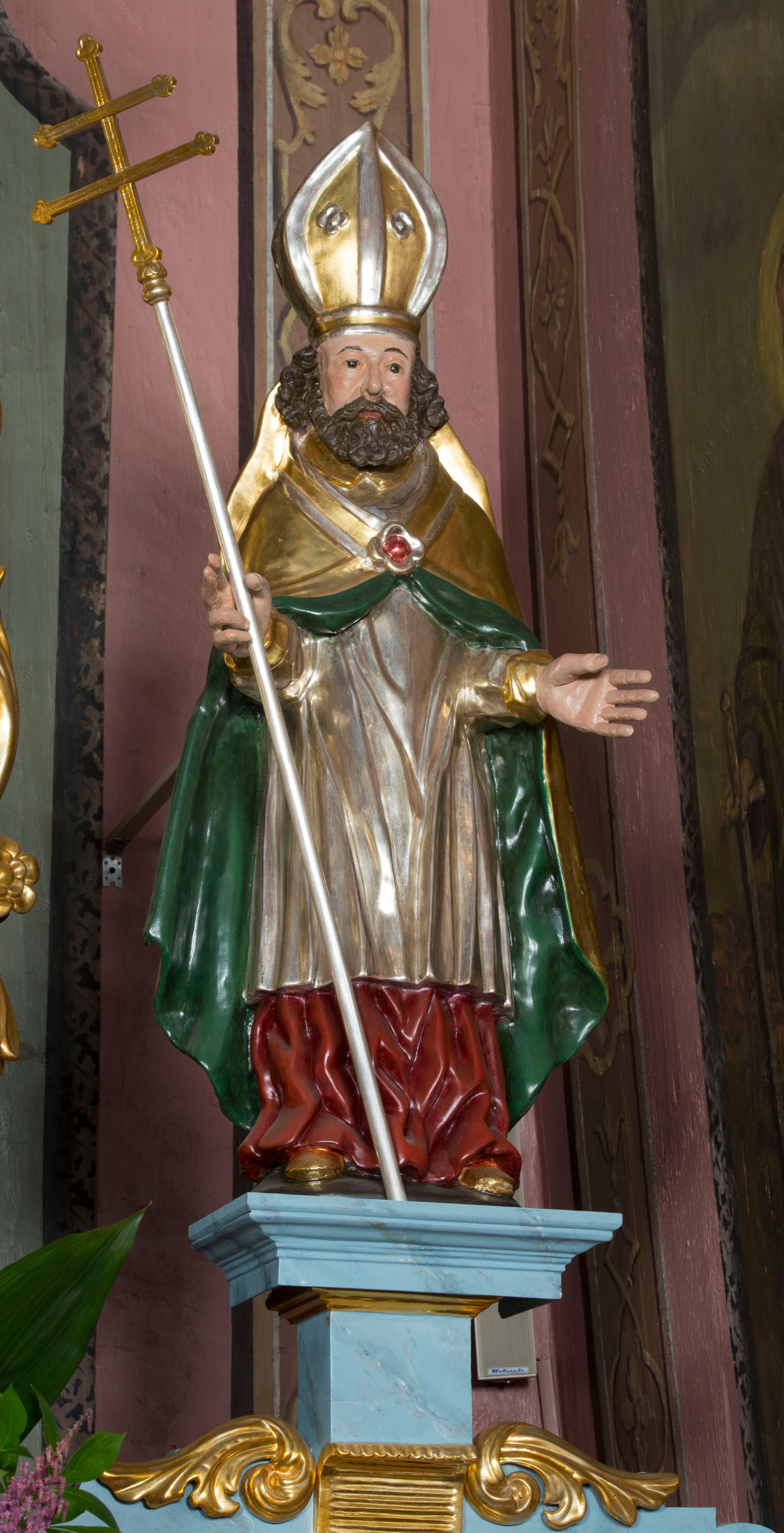 One sculptures flanking the high altar in the church in Krzeczów is a statue of Saint Adalbert who, together with Saint Stanislaus, is recognized as the main patron saint of Poland.
