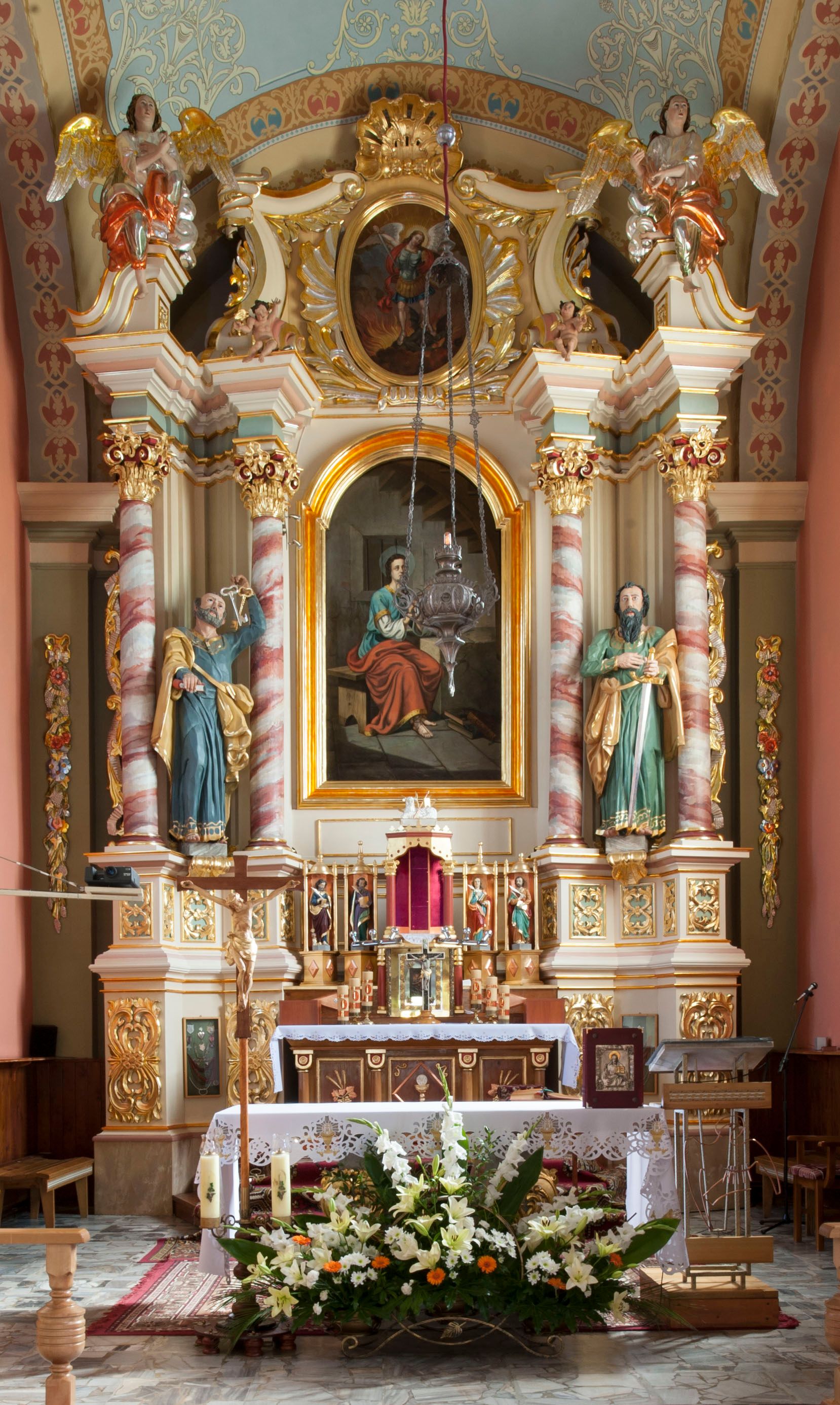 It is not clear whether the present image of the high altar has been part of the decoration since its construction in 1862-1863, but it is very probable. The image of St. Alexius refers to the invocation of church, that was given by the initiator of the temple's construction - father Aleksy Bocheński.