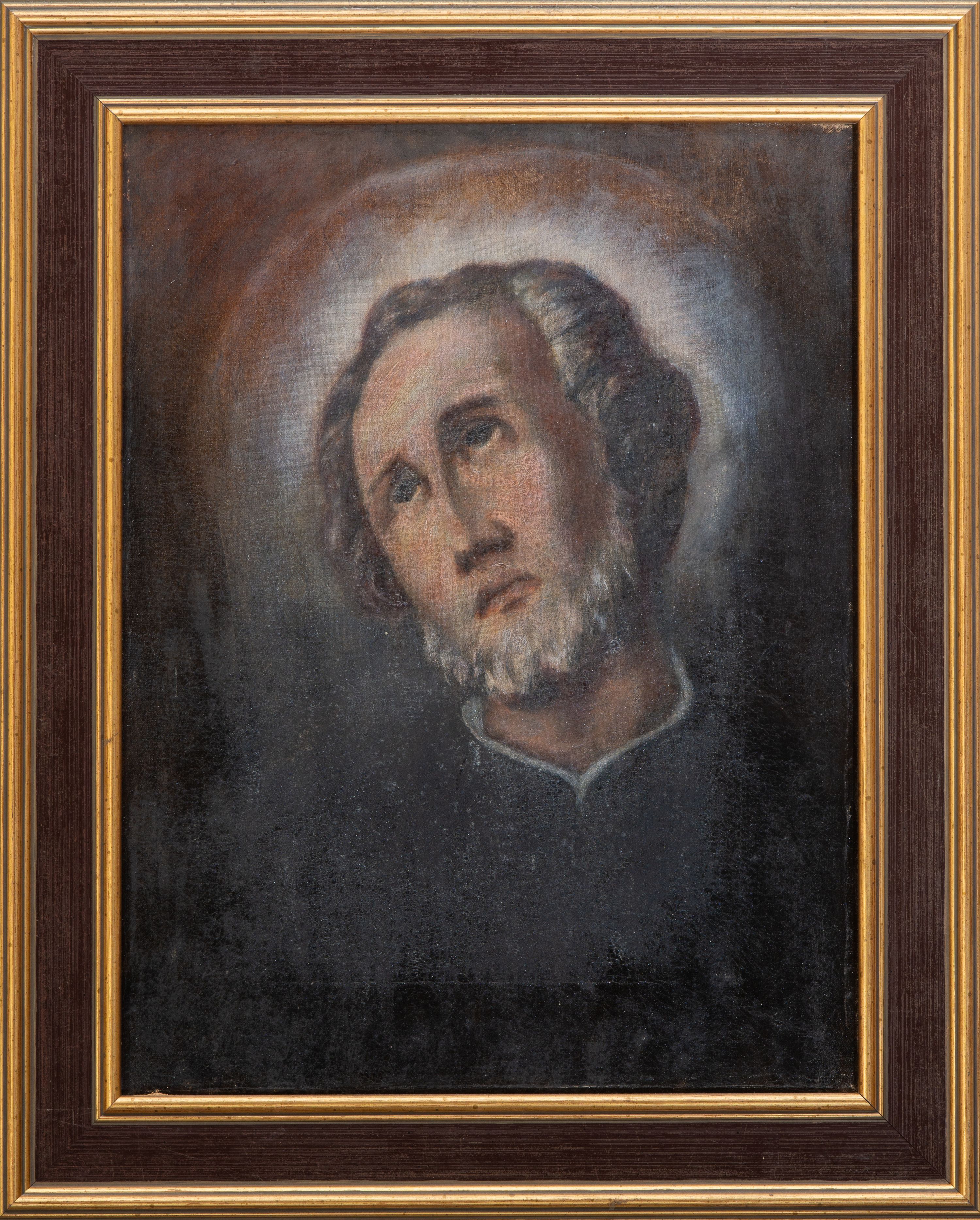 The painting concerned is a work of an unknown author and was created in the 20th century. It depicts St. Andrew Bobola – a Jesuit, a missionary and a martyr, one of the patrons of Poland. St Andrew Bobola was born in Strachocin in 1592, and he died a martyr's death in Janów Poleski in 1657. The cult of St Andrew Bobola developed from the beginning of 18th century in Poland, Germany and Austria. In iconography, he was first presented amid or at the background of the scenes of martyrdom, with sabres stuck in his neck and the left hand. Since 19th century his image has been presented without the previously accompanying scenes. Facial features, also on the image from Stróże, mostly tend to be replicated from the graphics of a Roman artist Girolamo Rossi.