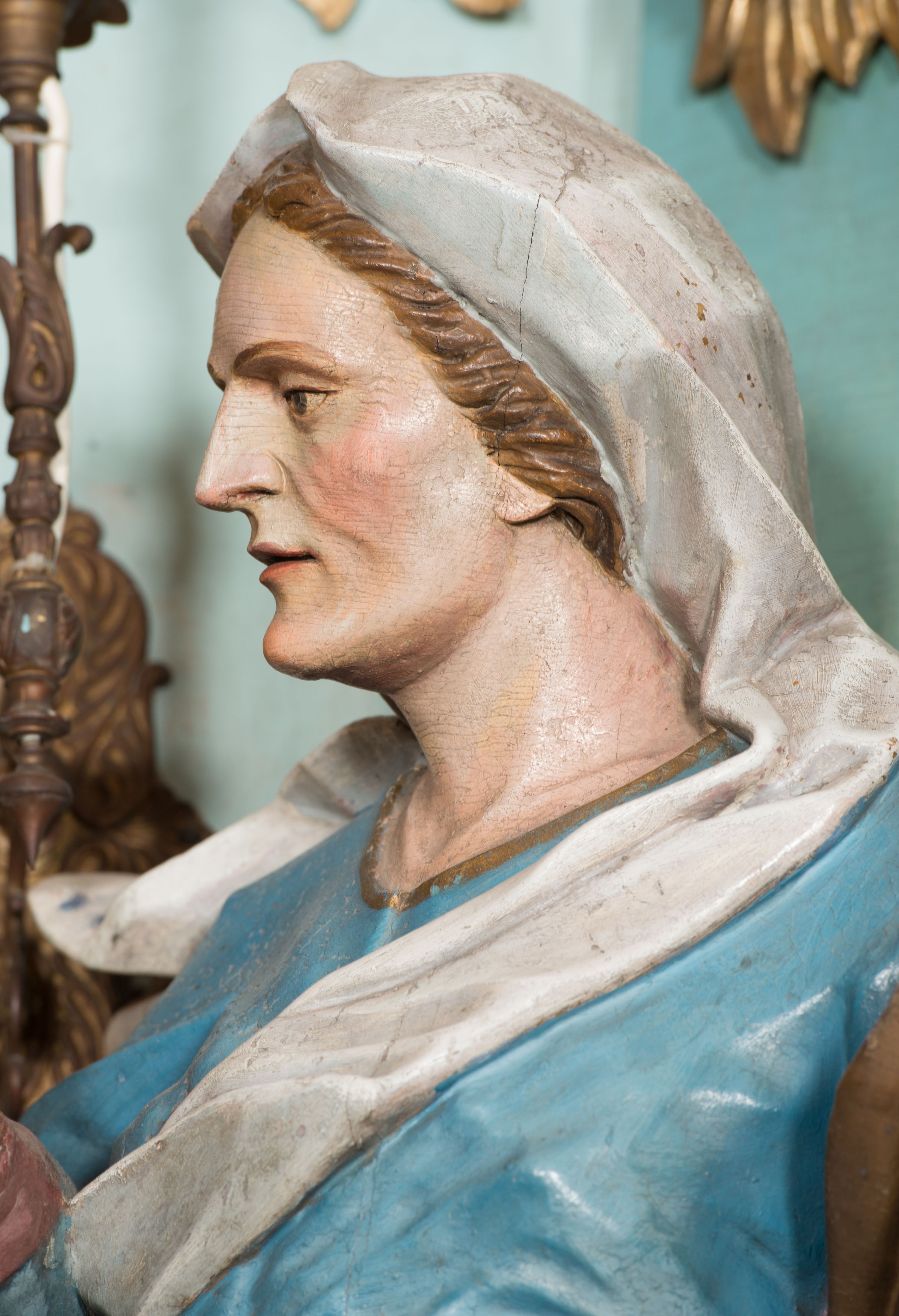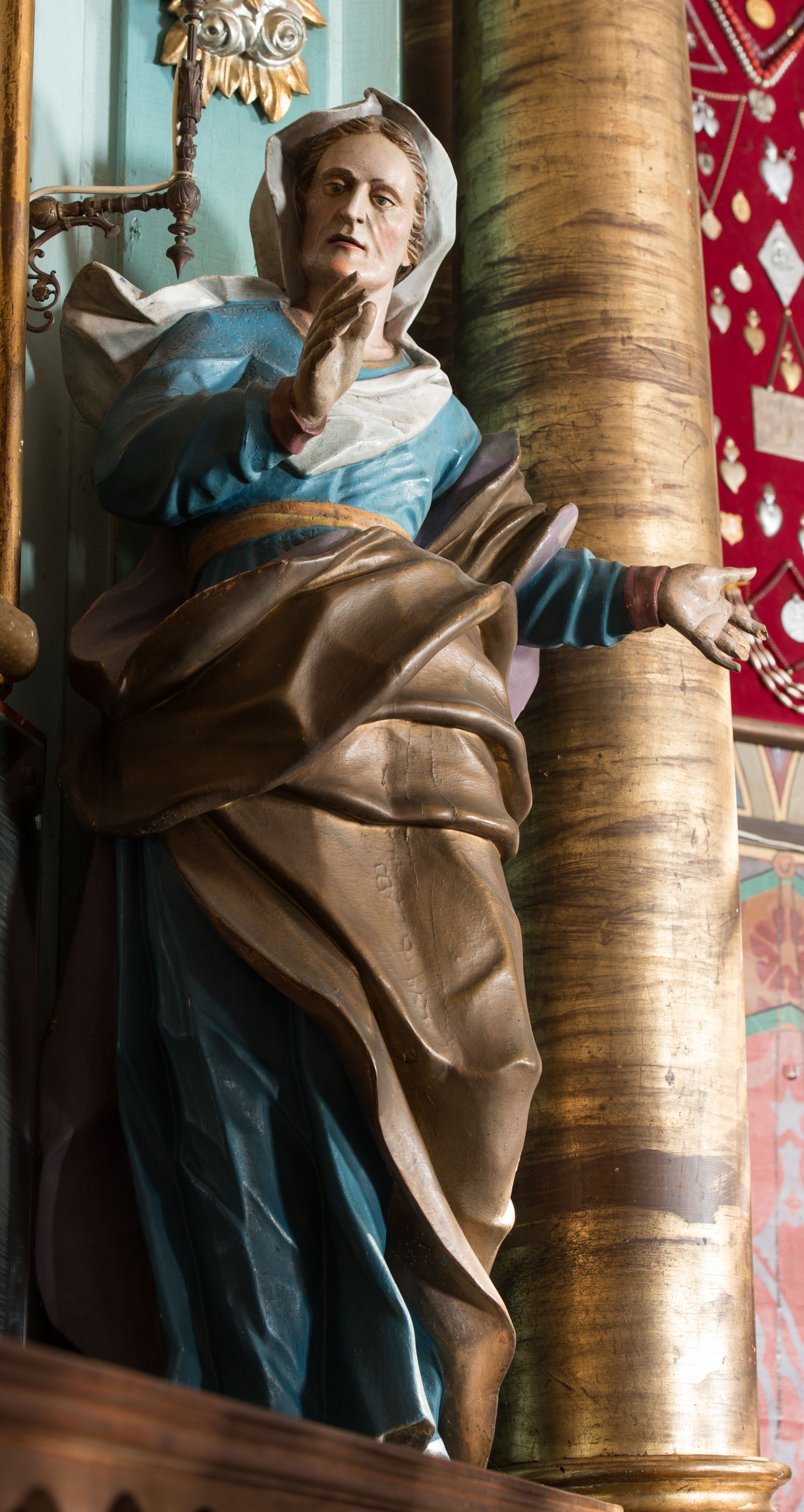 St. Anne statue was created as one of four sculptures intended for the high altar, which was made for the new church around 1780 by the Kornecki brothers - Antoni and Ignacy. In the iconography, St. Anne was portrayed as a mature woman, because according to tradition, thanks to her prayer she managed to have a child – Mary – when she was in old age. She is most often depicted with her husband – St. Joachim.