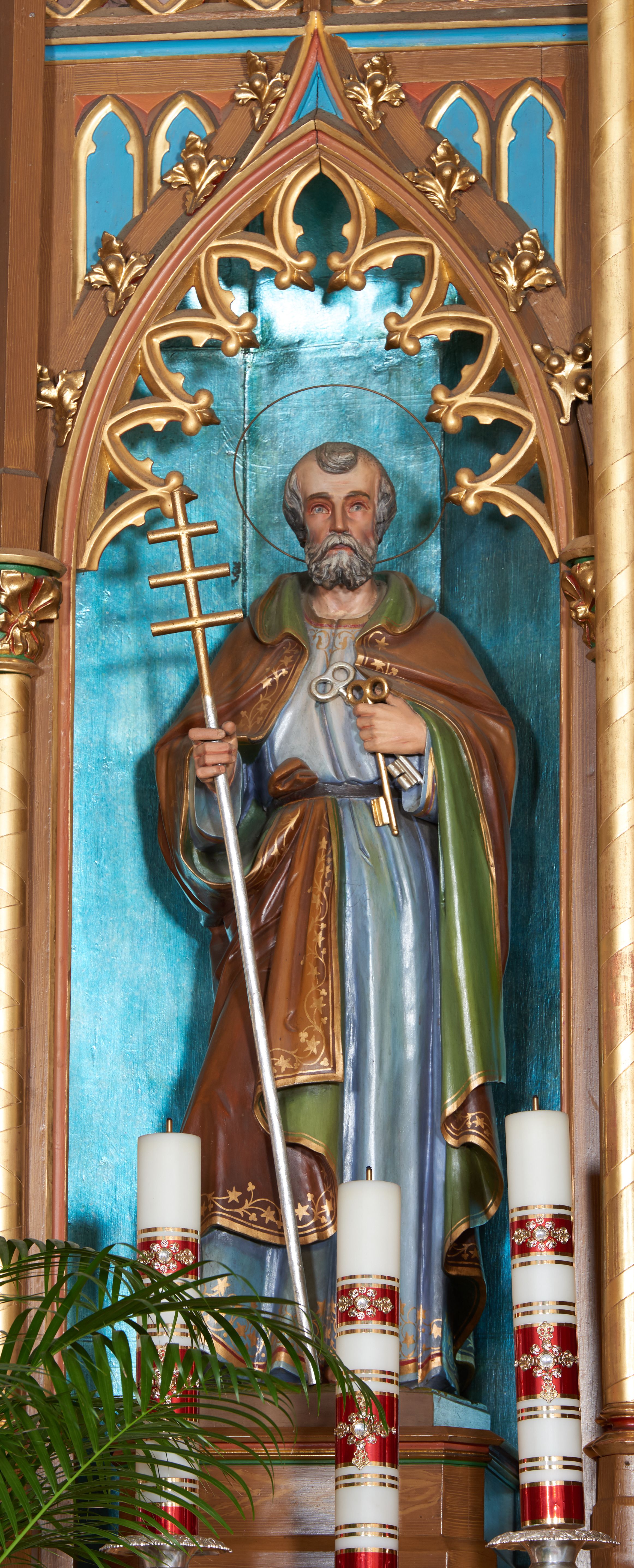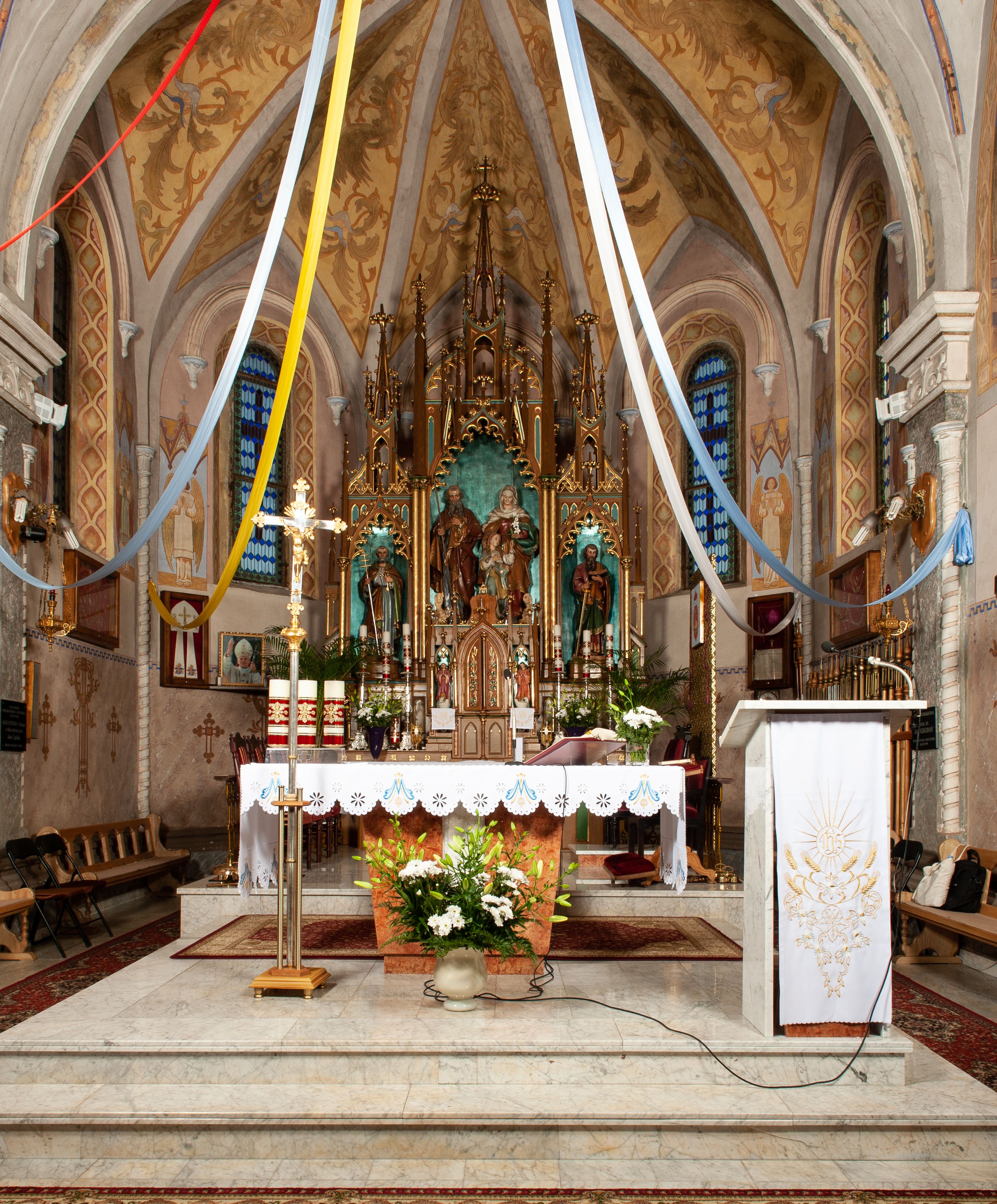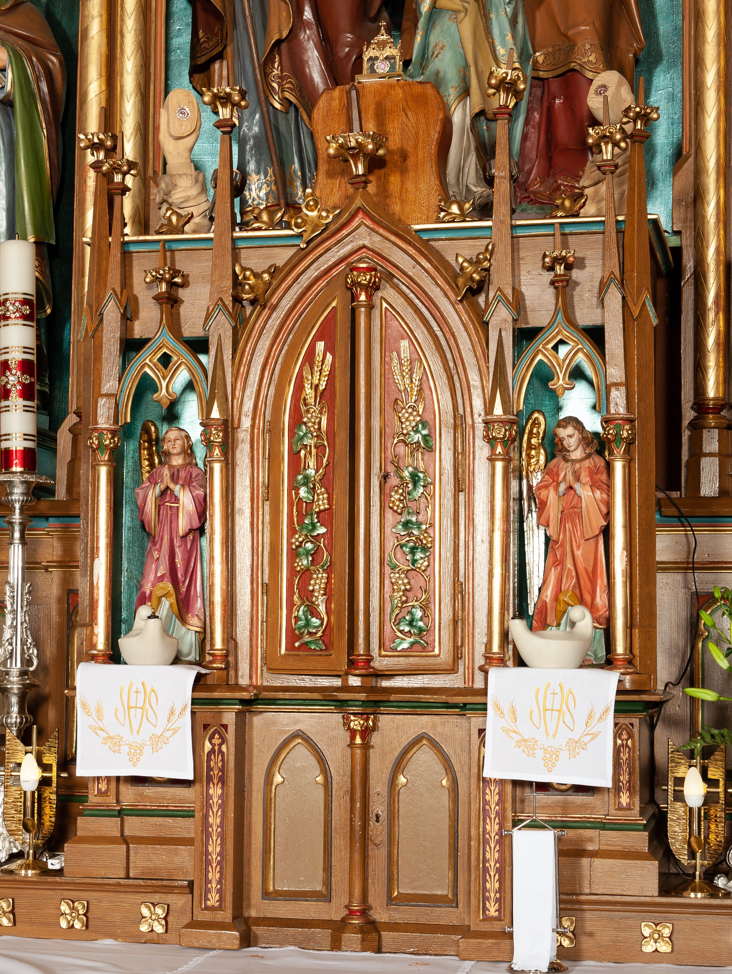The high altar in the church in Chyżne is a reproduction of the work destroyed during warfare of World War II. The original altar was most probably created in a Tyrolean workshop. Both the altar and its modern reproduction represent the Neo-Gothic style.