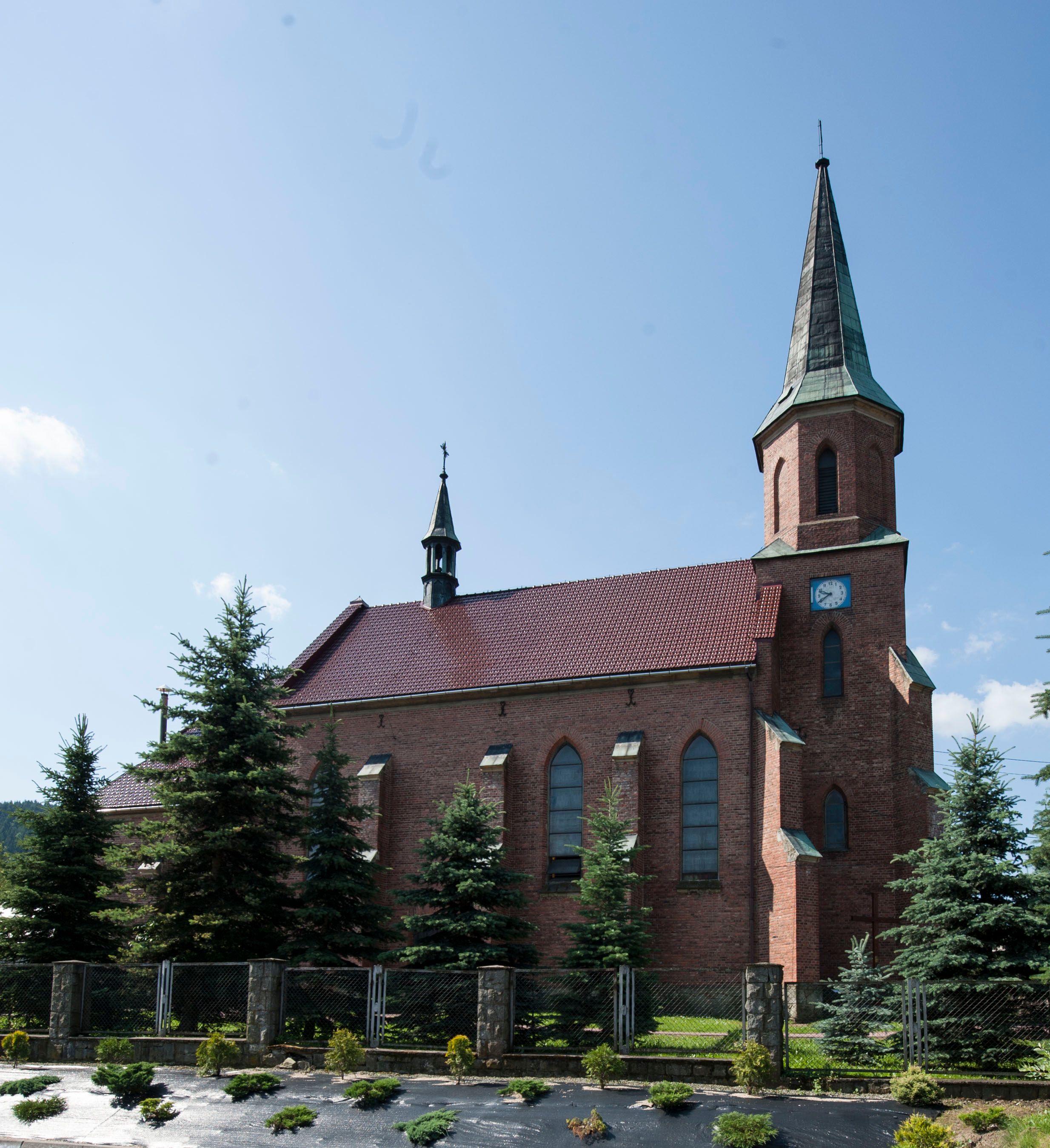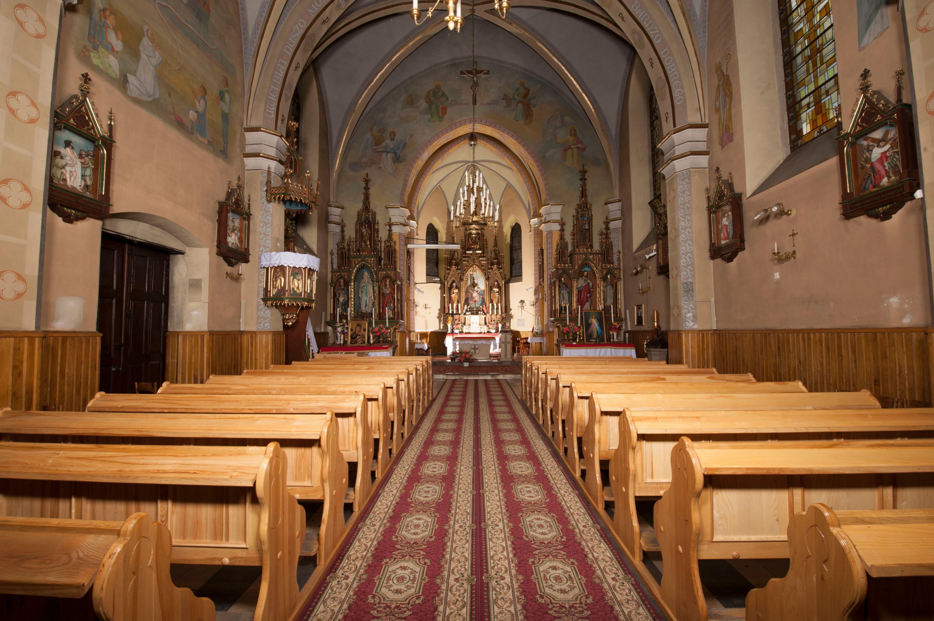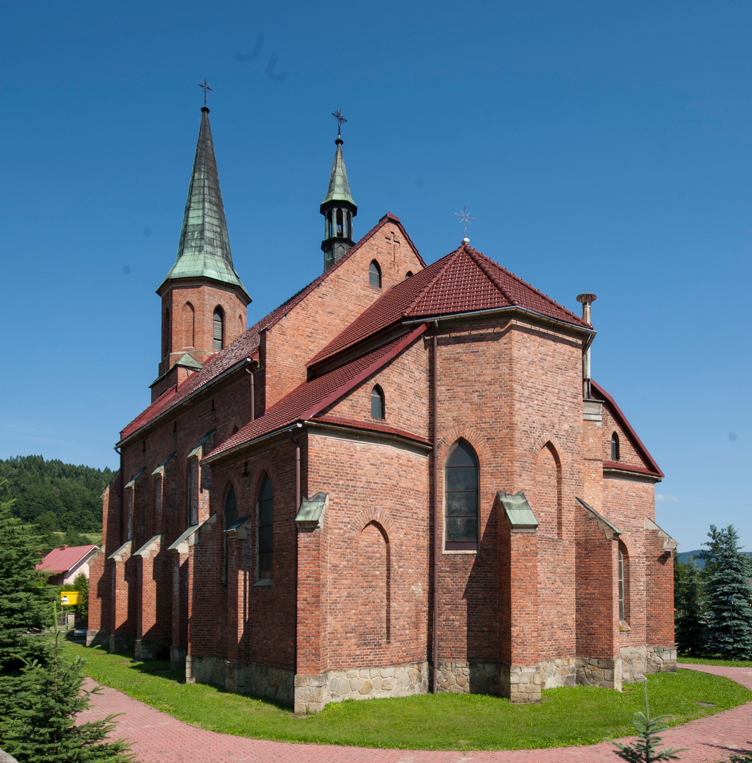 The church in Stryszawa of Saint Anne was built in 1892-1894 and was consecrated in 1897. It was created on the initiative of a resident Michał Trzop with the support of the Branicki family and the parish priest of the church in the neighbouring village of Sucha. It was designed in the neo-Gothic style, including the interior furnishings. Three neo-gothic altars in the chancel and main nave were carved by Stanisław Jarząbek from Kęty, the altar in the side chapel was made by local sculptors Ignacy Szklarczyk and Franciszek Laśniak. Tomasz Fall prepared the organs stylistically adapted for these furnishings. The statuette of the Risen Christ and the Stations of the Cross were brought from Tyrol, where thriving manufacturing centres of church furnishings housed in the 19th century.