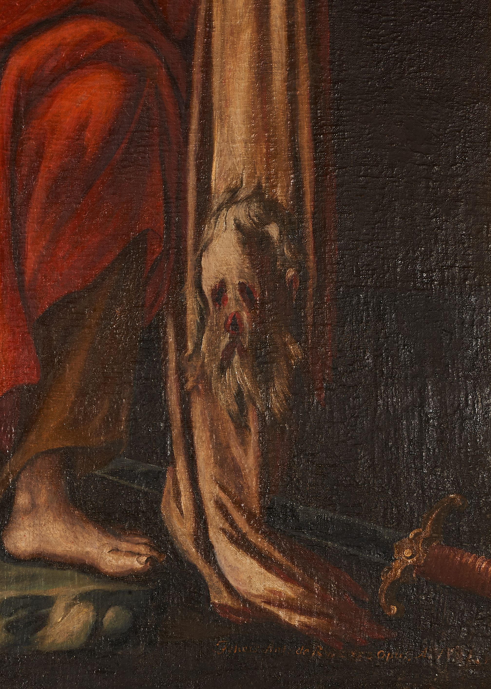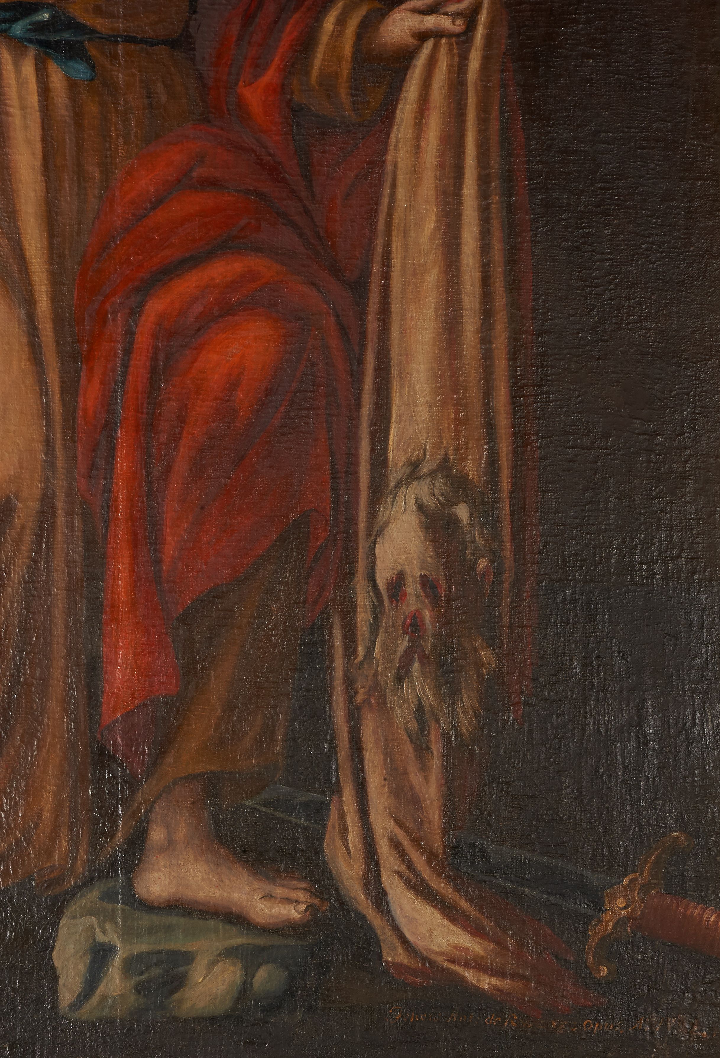 A painting depicting St. Bartholomew was created in 1762. It was later placed in the high altar. St. Bartholomew was one of the apostles called by Jesus. He preached the gospel in Armenia where he was captured by order of the king, who had him skinned, and then Bartholomew was to be crucified and beheaded with a sword. The tools of torture constitute his attributes. He is usually depicted with skin in his hands.