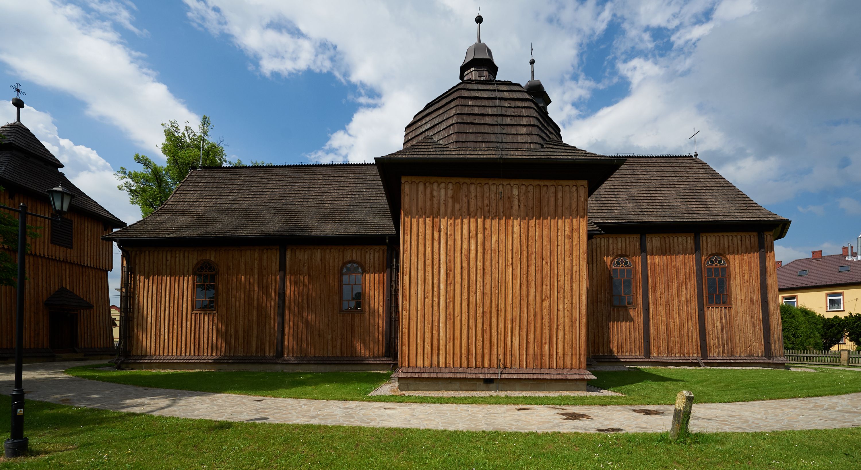 The inventory from 1891 includes a description of a wooden church with a chapel, vestibule, porch and brick sacristy. Inside there were five altars, a pulpit, an organ, a baptismal font, three confessionals, 13 paintings on the walls, the Stations of the Cross, 5 procession floats, a crucifix with two figures on a rood beam, etc. During the ministry of the parish priest Karol Guzkiewicz, the church was restored in 1899-1903 and a new bell tower was erected at a cost of 14,349 crowns and 90 halls. In 1903, the church was painted by Michał Tarczałowicz of Bochnia (inscription under the loft). A 1916 publication already mentioned four side altars in the nave, i.e. including an additional side altar. In 1921 the church committee requested a "competition" to paint the church. Three years later, new bells were purchased thanks to donations. In 1944, a new hoarding was built around the church - "a concrete foundation, stone pillars and timber bolts and balusters". In 1950 the chancel was renovated and the great altar and the painting of Our Lady of the Rosary in the chapel were gilded.