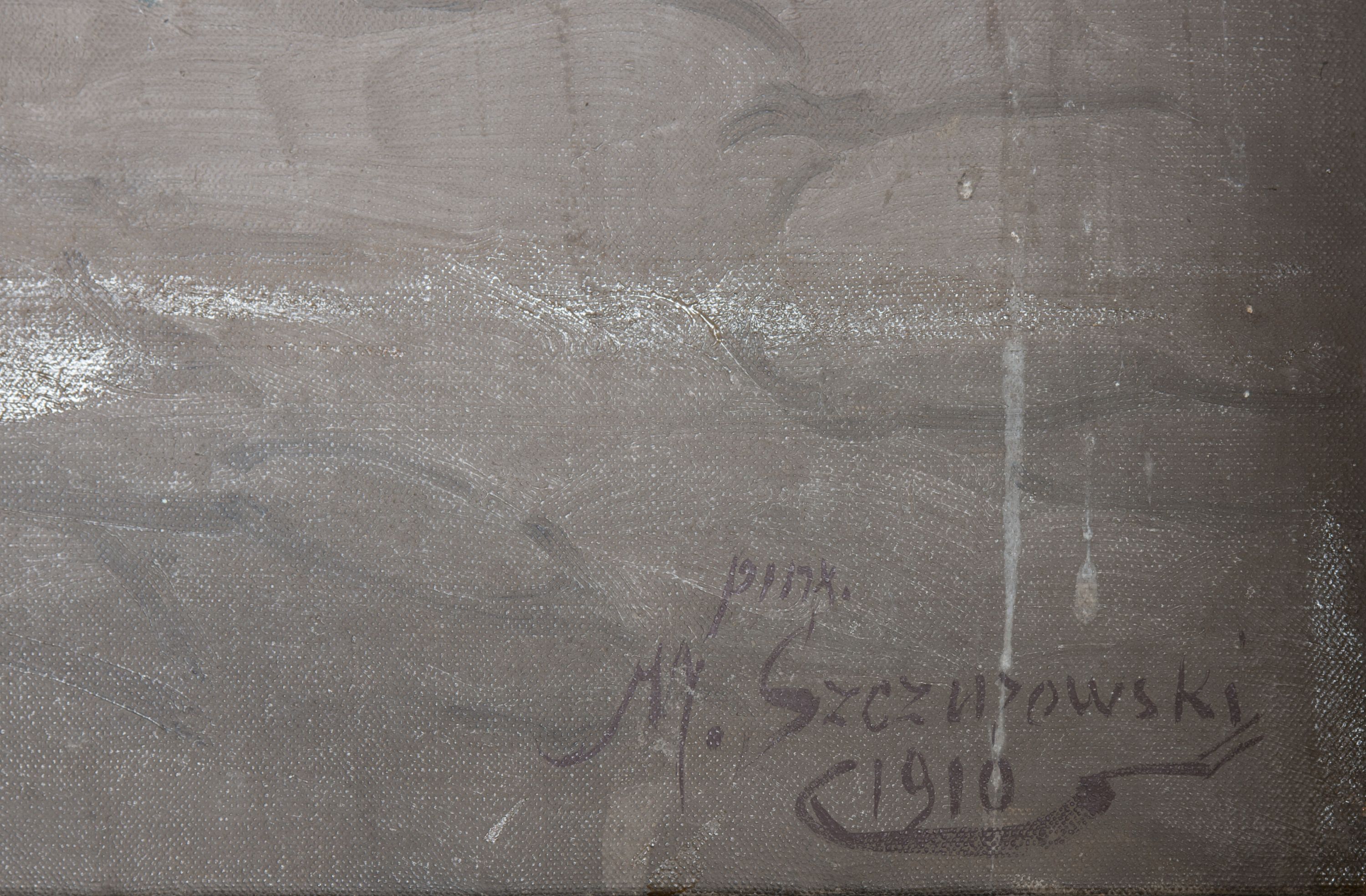 The painting of Catherine of Alexandria was produced by Marian Szczurowski in 1910. Saint Catherine came from Alexandria. According to legend, she was a princess, therefore, she is portrayed in royal garb with a diadem. During the persecution of Christians under Emperor Maxentius, she was captured and sentenced to cruel torture. A wheel and sword are her attributes, as they were used to torture and kill her. The woman saint holds also a martyr's palm and a lily twig symbolising chastity.