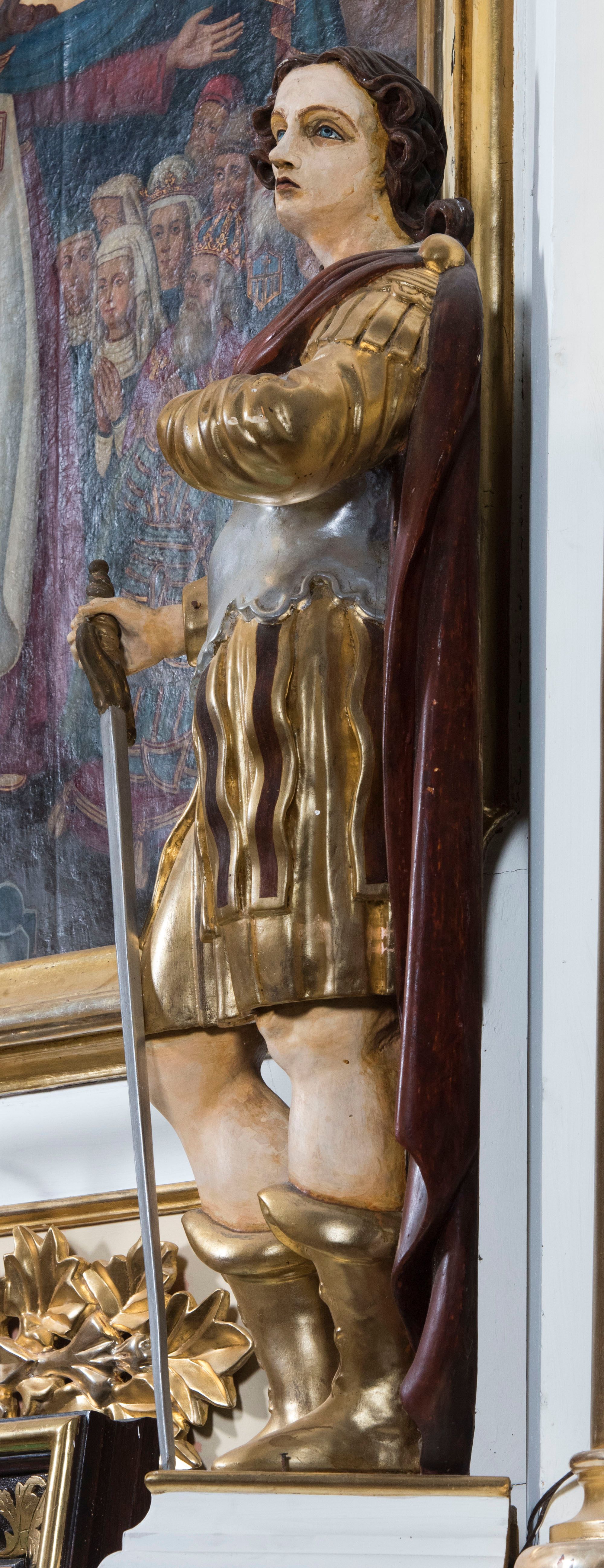 The sculpture of St. Crispinian decorating the reredos of the side altar of Our Lady of the Redemption of Slaves, depicts one of the oldest saints of the Catholic Church. In the plastic arts images he is usually showed with the representation of his brother - St. Crispin.