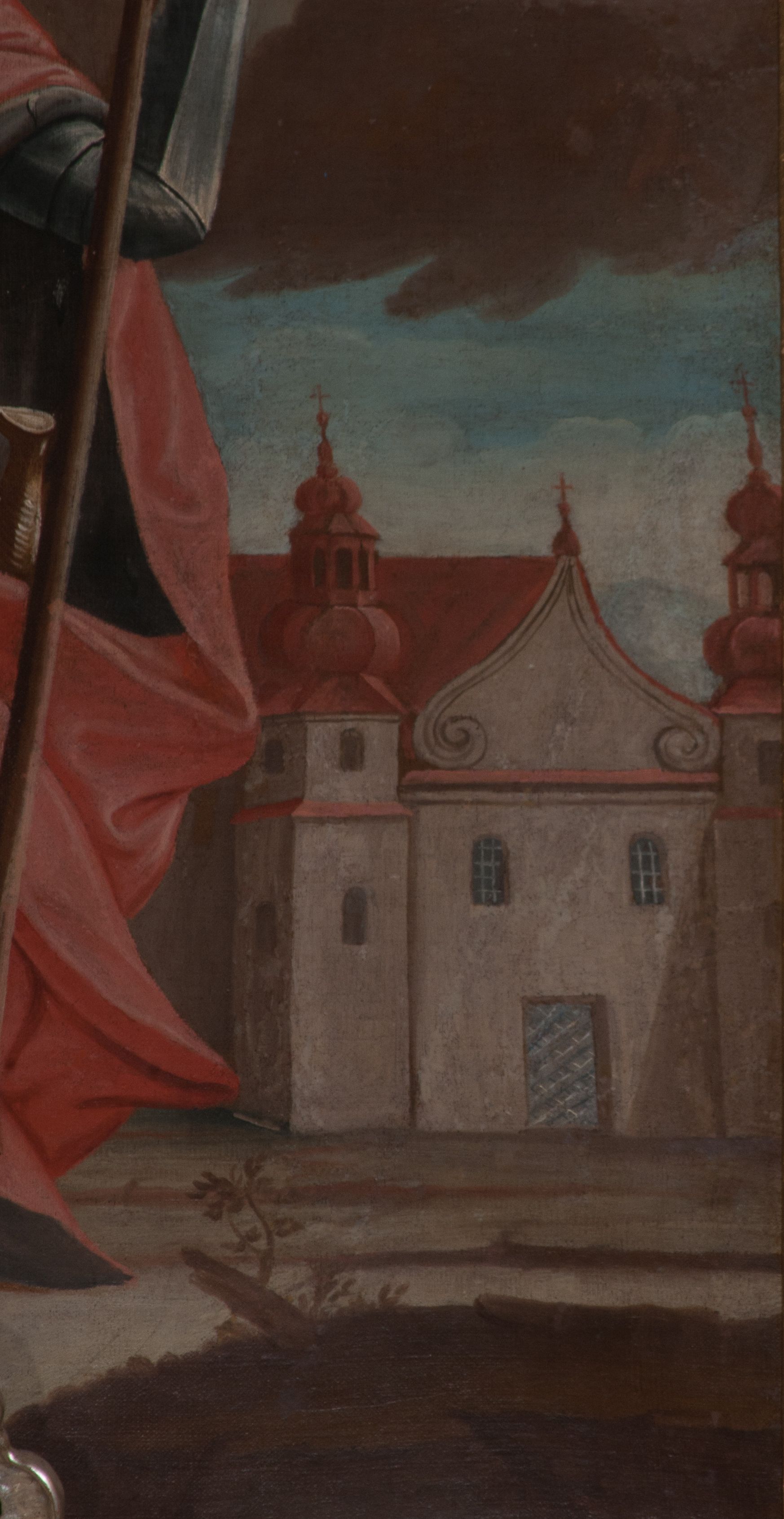 The painting of St. Florian was created for the altar finial of St. Sebastian in the 1750s. The work was painted in the workshop of the Kornecki family, probably by Piotr Kornecki himself, who was a painter and sculptor by trade. The painting of St. Florian is modelled on a work depicting the same saint from the high altar in the St. Florian's church in Cracow, painted by Jan Trycjusz in 1686.
