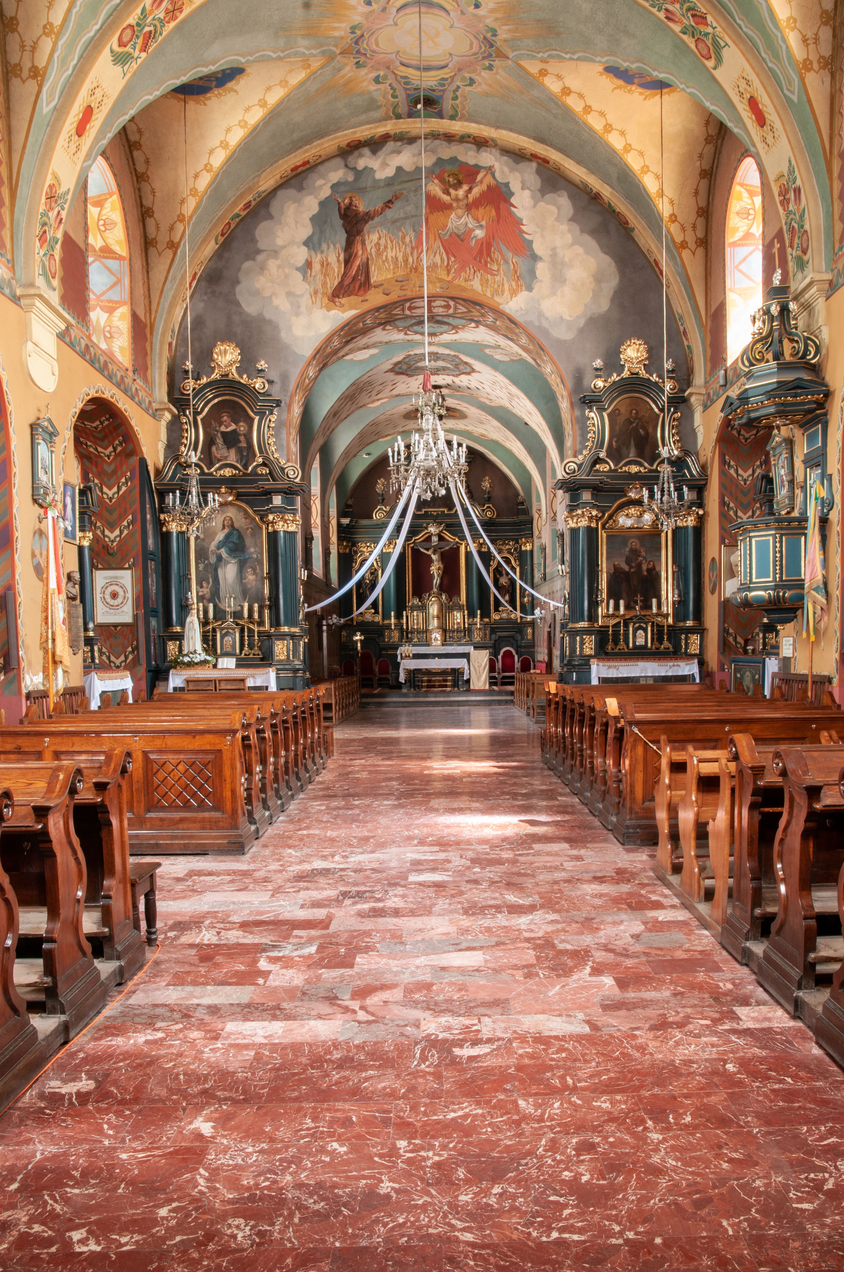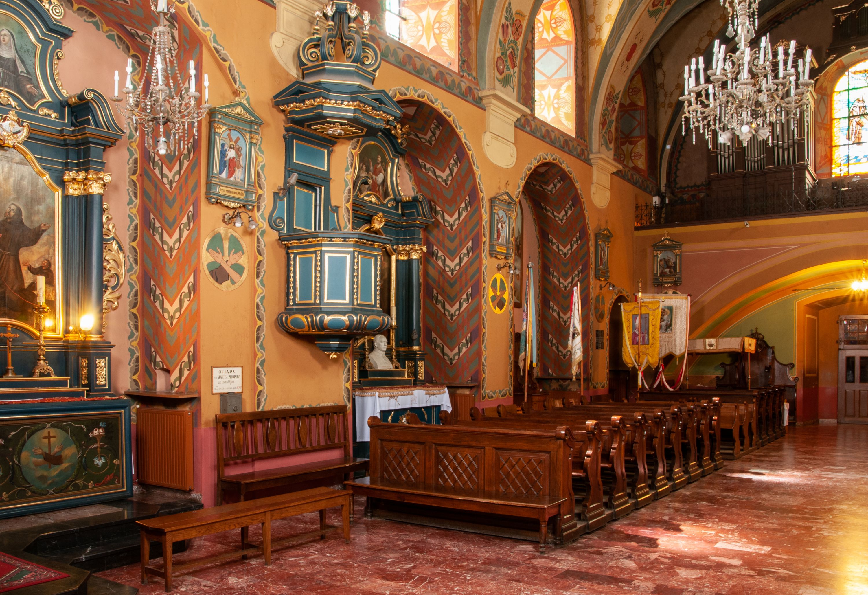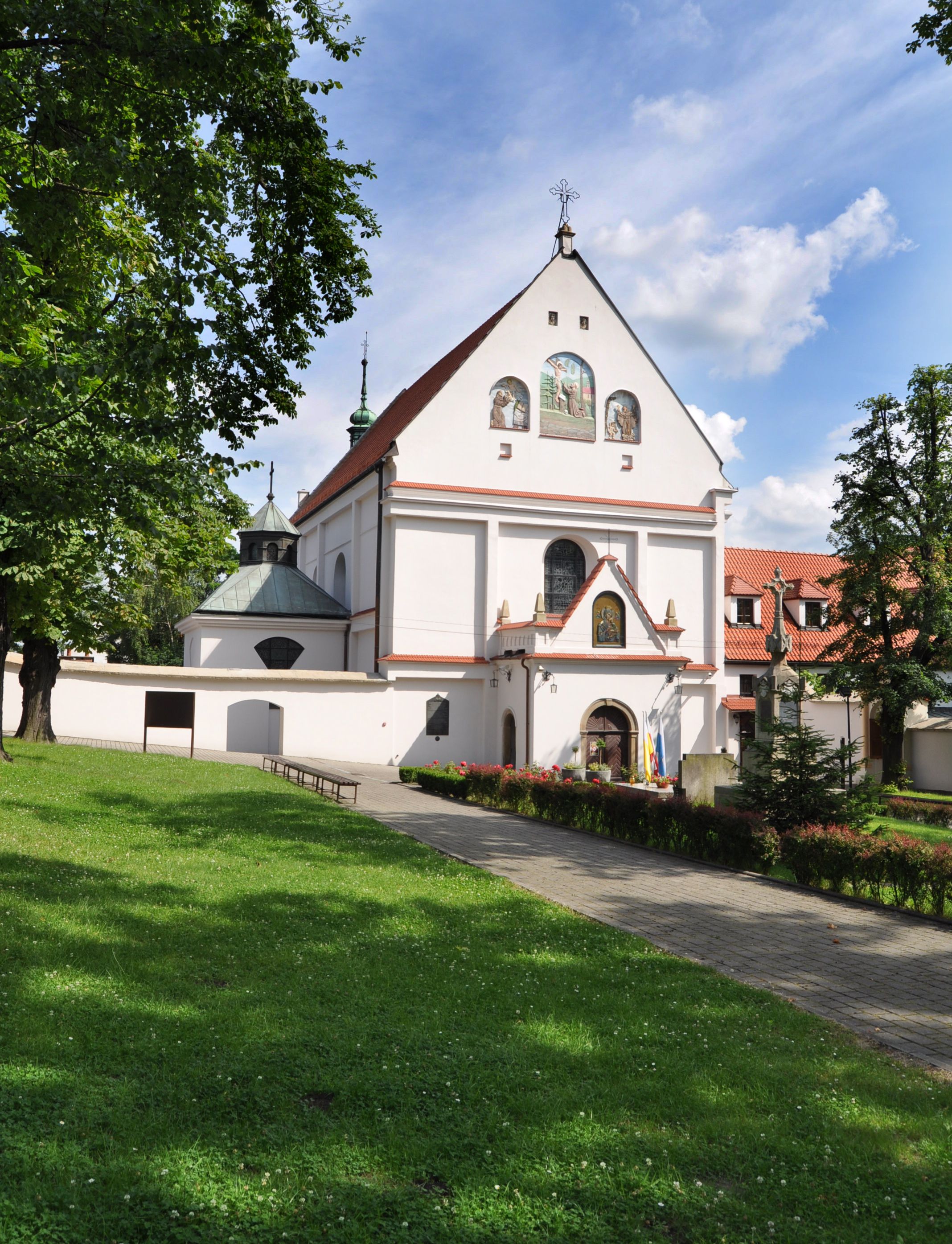 The church and monastery of Reformed Fransciscans in Wieliczka were funded by the Wieliczka council members, the management of the salt mines and king Sigmunt III. The works started in 1624 and were completed in 1626. The church was consecrated the same year, under the invocation of St. Francis of Assisi's Stigmas. The temple is a representative type of Baroque architecture solutions, implemented in a group of monastery Franciscan churches spread all over the region of Lesser Poland. Therefore, the architecture of the church is distinguished by its adaptation to the monasterial charisma, expressed by simplicity and modesty. The monks adopted a single-nave structure as the dominant type, with a narrower and extended chancel, enclosed with a straight wall and separated with a high altar. The chancel extension houses a monastic choir which was liquidated in the church in Wieliczka, and the high altar was moved towards the chancel wall. The church in Wieliczka has been recurrently referred to as a model for all reformation churches. The church furnishings (six side altars, high altar and a pulpit) was created after the fire of 1718. Special attention should be paid to: a painting created by Szymon Czechowicz, titled "St. Casimir Jagiellon", pieces created by Michał Stachowicz whose numerous works decorate altars in the church, and a painting of Our Lady of Graces which is currently presented in the chapel built in 1989-1990. According to the Franciscan tradition, the image is older than the very monastery complex and originates in a chapel dedicated to St. Anthony of Padua, the patron of miners. The painting of Virgin Mary was apparently left by Balkan or Italian merchants who presented it to local miners in exchange for salt. One of the characteristic features of the church in Wieliczka is its relationship with the miners who not only funded it, but contributed to the funding of the altars and the paintings. Many images of Saint patrons, placed on the altars, are Saints who have been glorified by miners themselves, such as St. Kinga of Poland, St. Barbara, or St. Anthony of Padua. The Madonna of Częstochowa painting originally came from the Wieliczka mine, where it was placed on the side, altar and transferred from one of the mine's shaft bottoms.