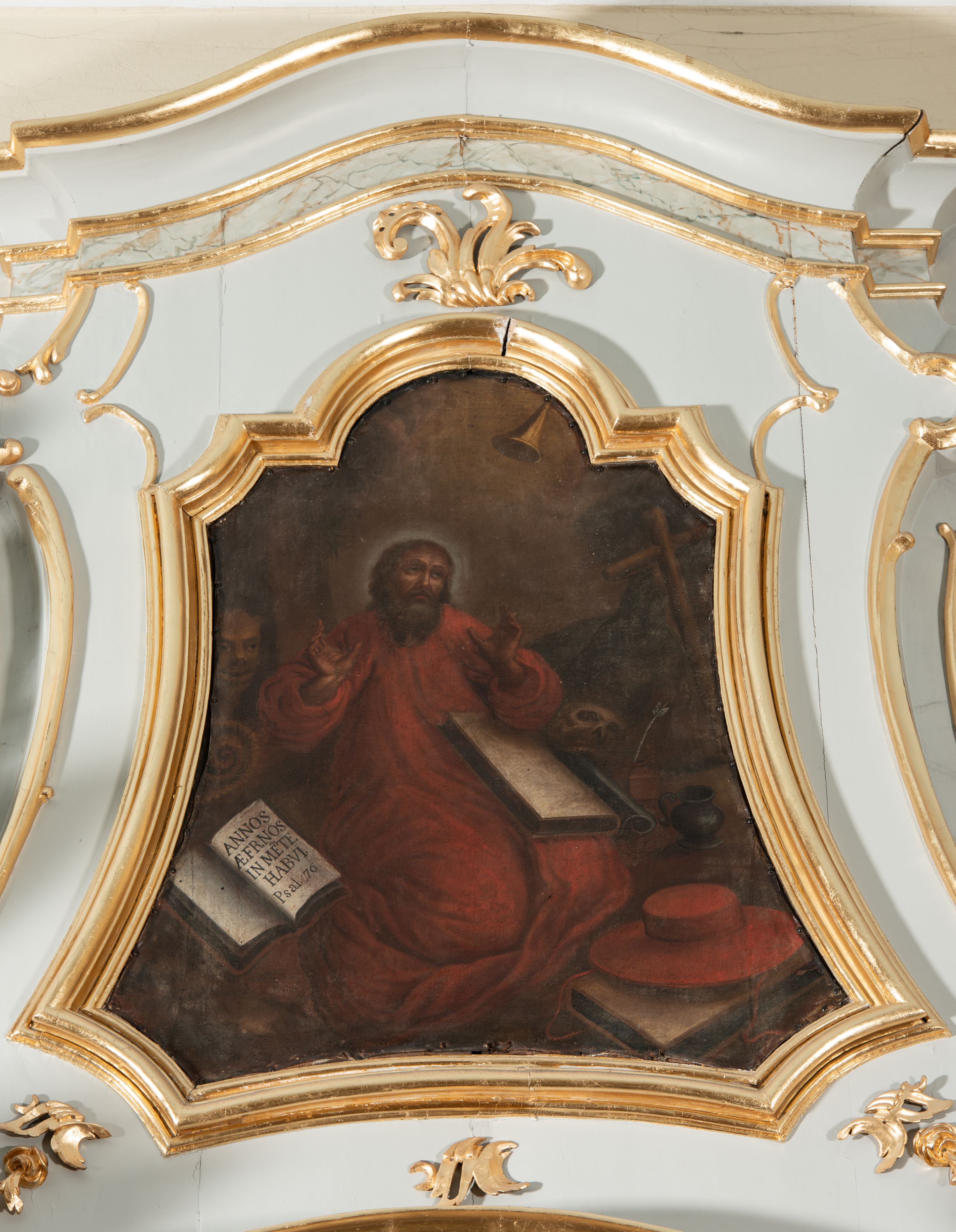 A painting depicting St. Jerome praying in a cardinal attire, created in the second half of the 18th century. It is characterised by a baroque composition in which the main accents form an oblique line, as well as an abundance of details and strong contrasts.