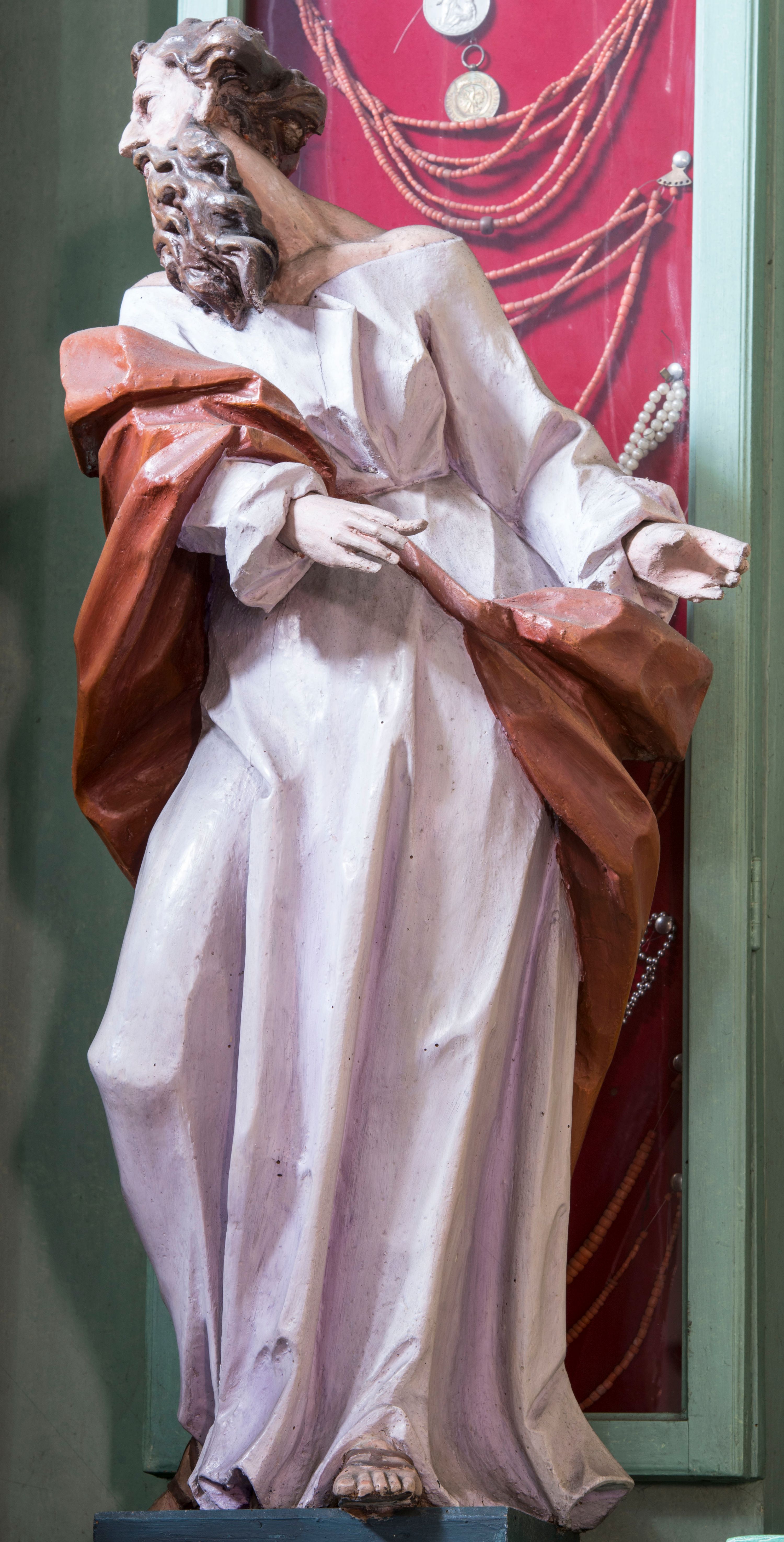 18th-century sculpture of Saint Joachim, father of the Mother of God, is an example of the expressive late Baroque art. The statues during this period were shown as strongly twisted, performing theatrical gestures. Their garments were loose with distinct folds. The authorship or origin of the statue is not known, but it is certainly one of the most valuable monuments of the church in Harbutowice.