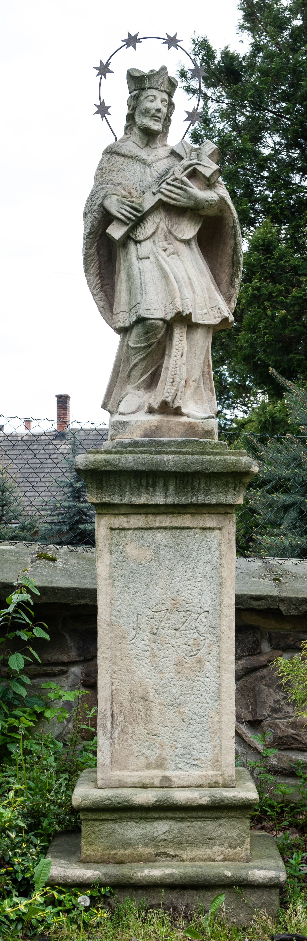 A statue of St. John of Nepomuk was formerly placed in a flower bed located in the former cemetery opposite the presbytery. Currently, it is placed on the right side of the main gate. It was made in 1779 and has a baroque form, which is evidenced by characteristically bent figure of the saint.