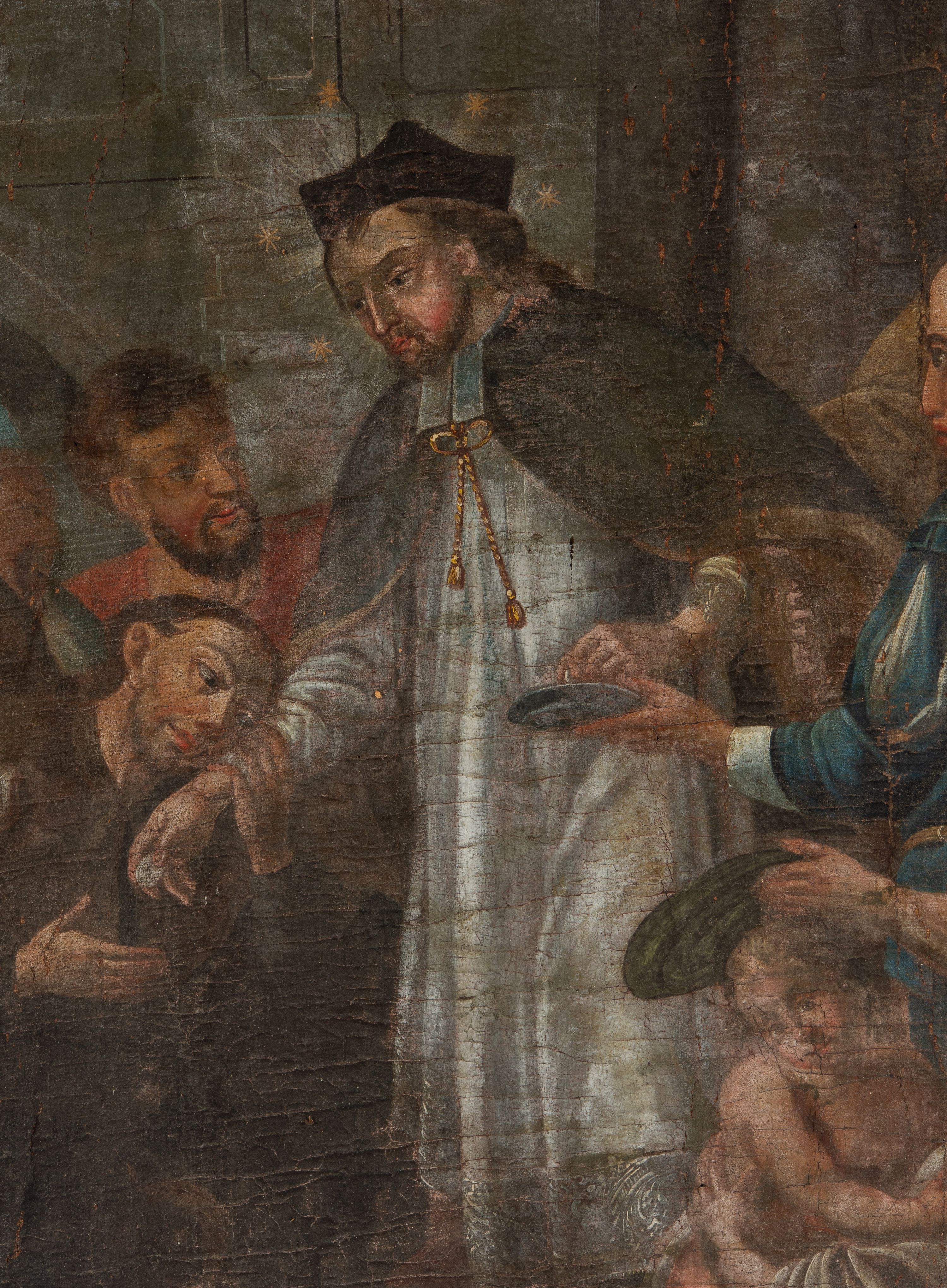 The painting which was one of the original elements of the side altars in the church in Inwałd presents one of Central-Eastern Europe's most popular saints. St. John of Nepomuk was displayed in a rare narrative referring to his biography and his service as the royal almoner. The stylistic features of the piece are typical for a provincial guild workshop from the fourth quarter of the 18th century.