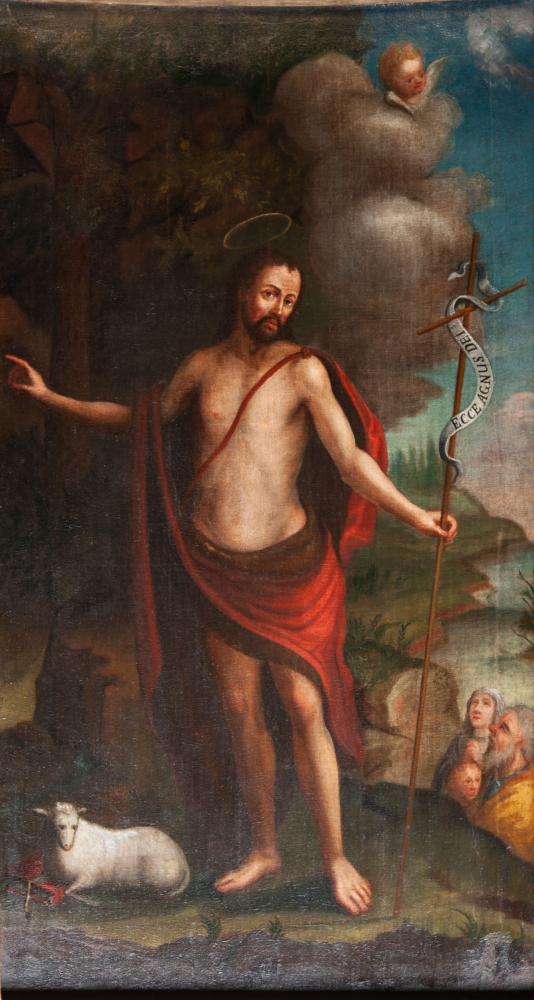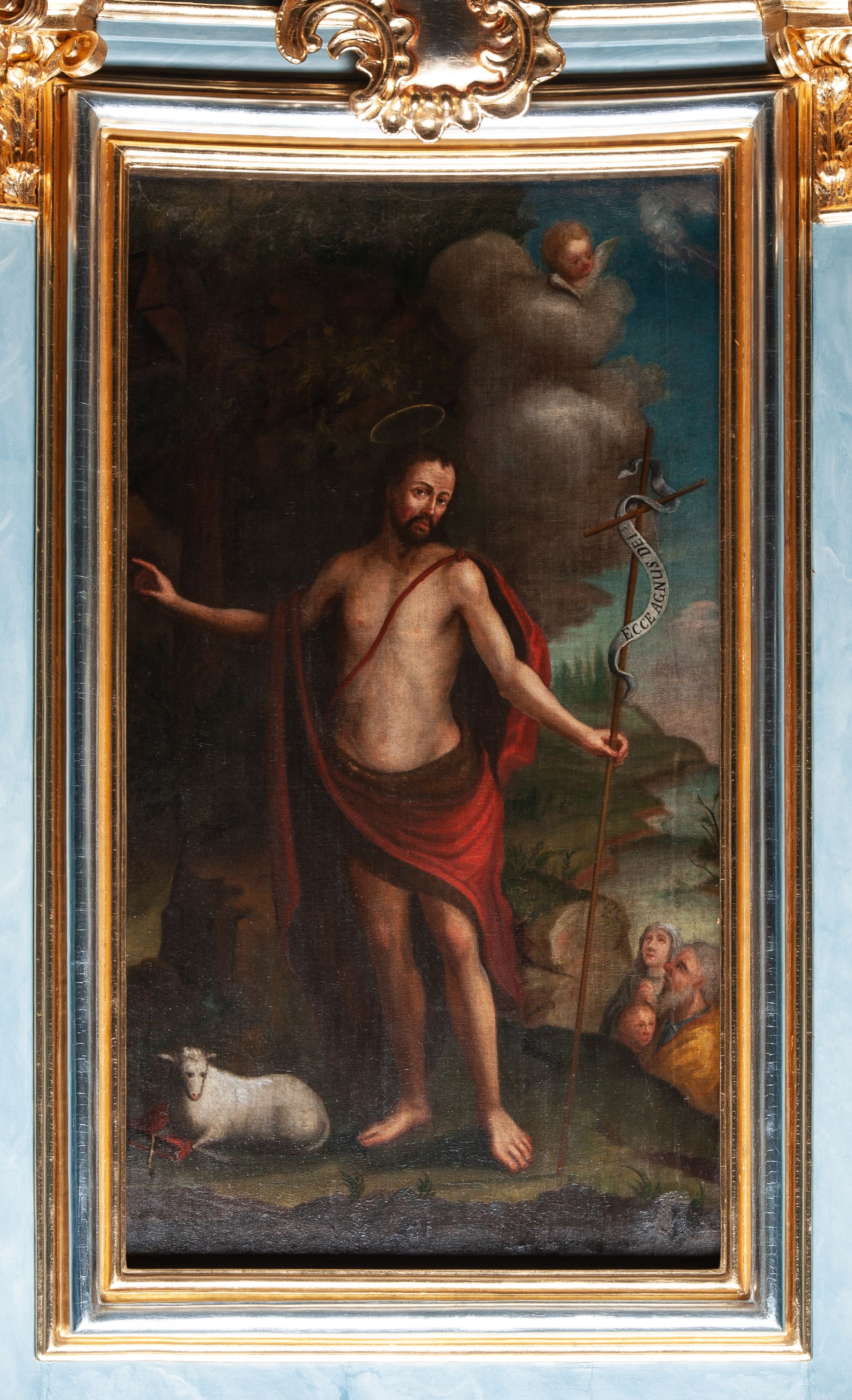 The painting depicting John the Baptist was made in the second half of the 18th century and hung at first on the opposite altar. It has only been mentioned as the main image of the left altar in a chancel area since 2004.