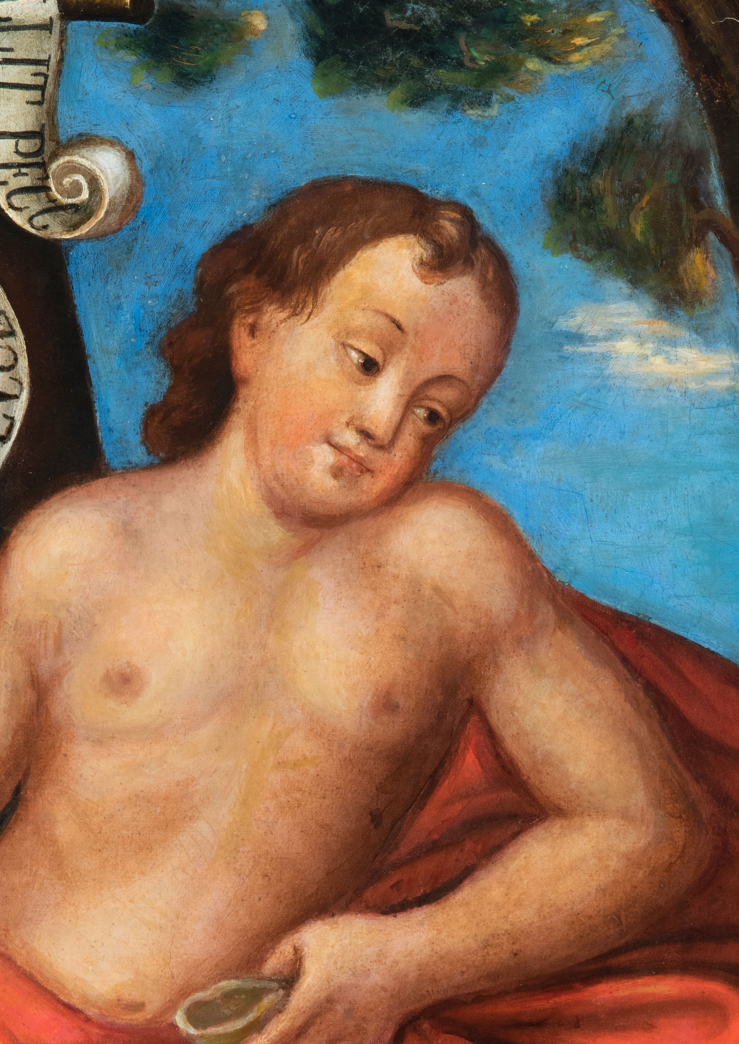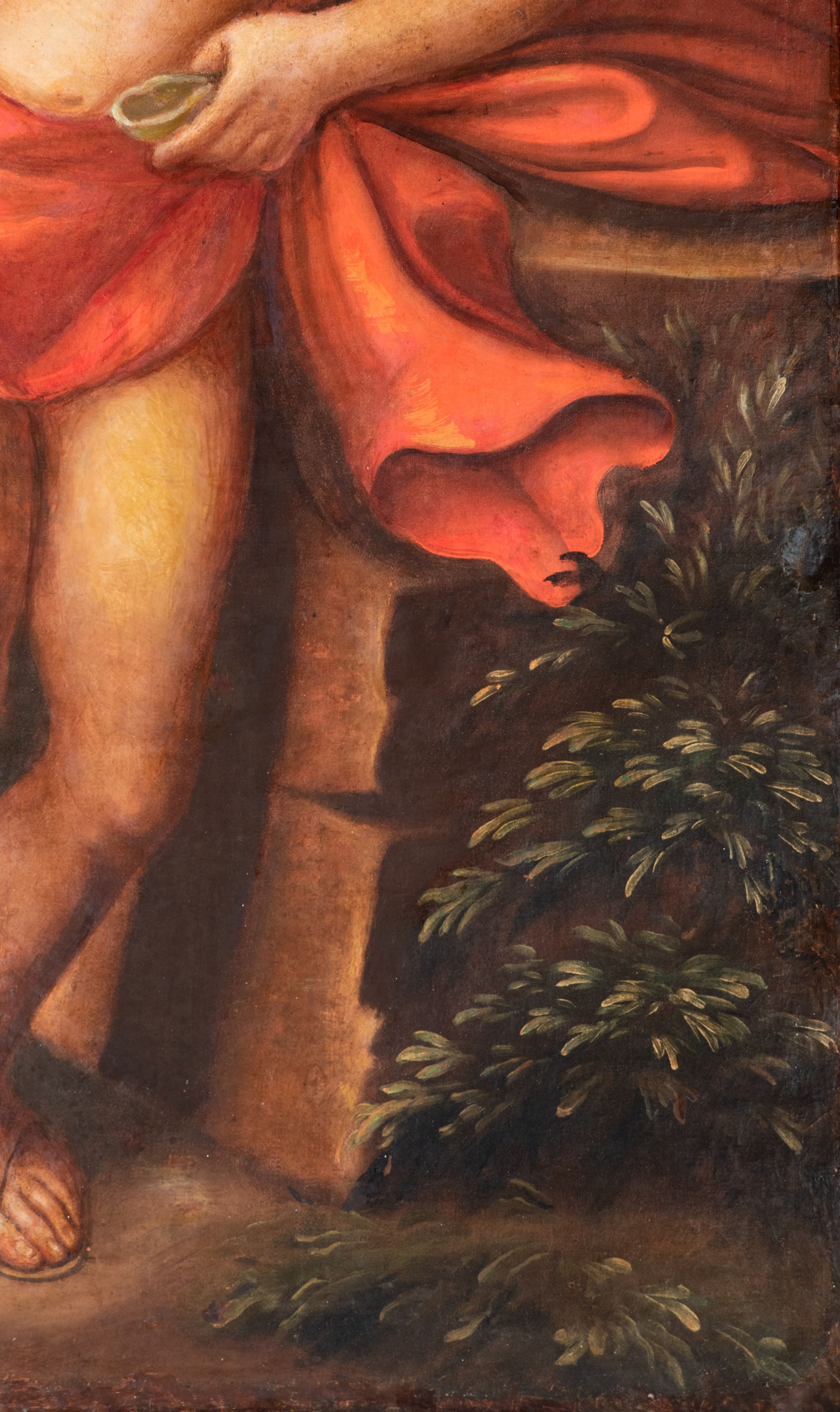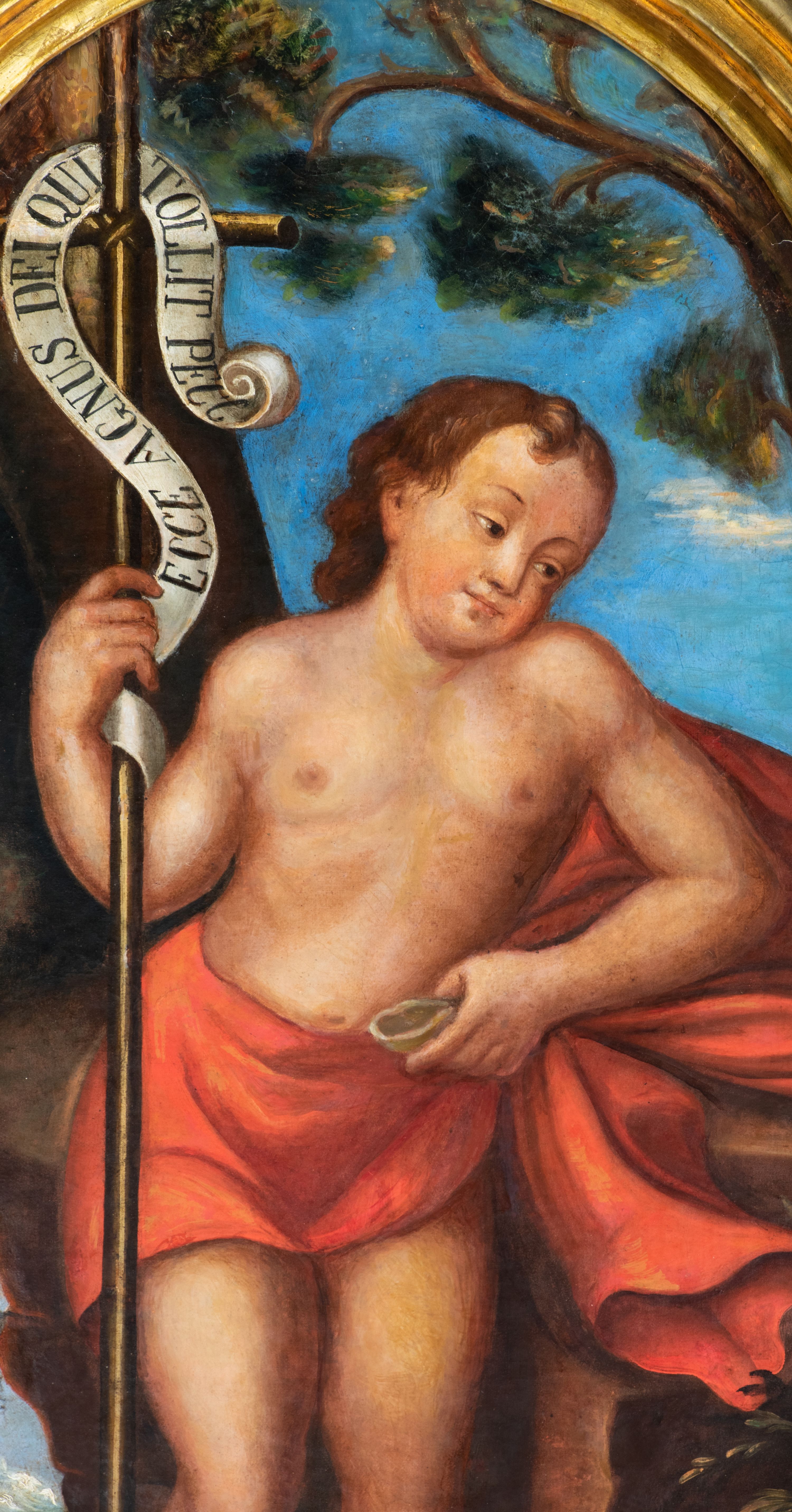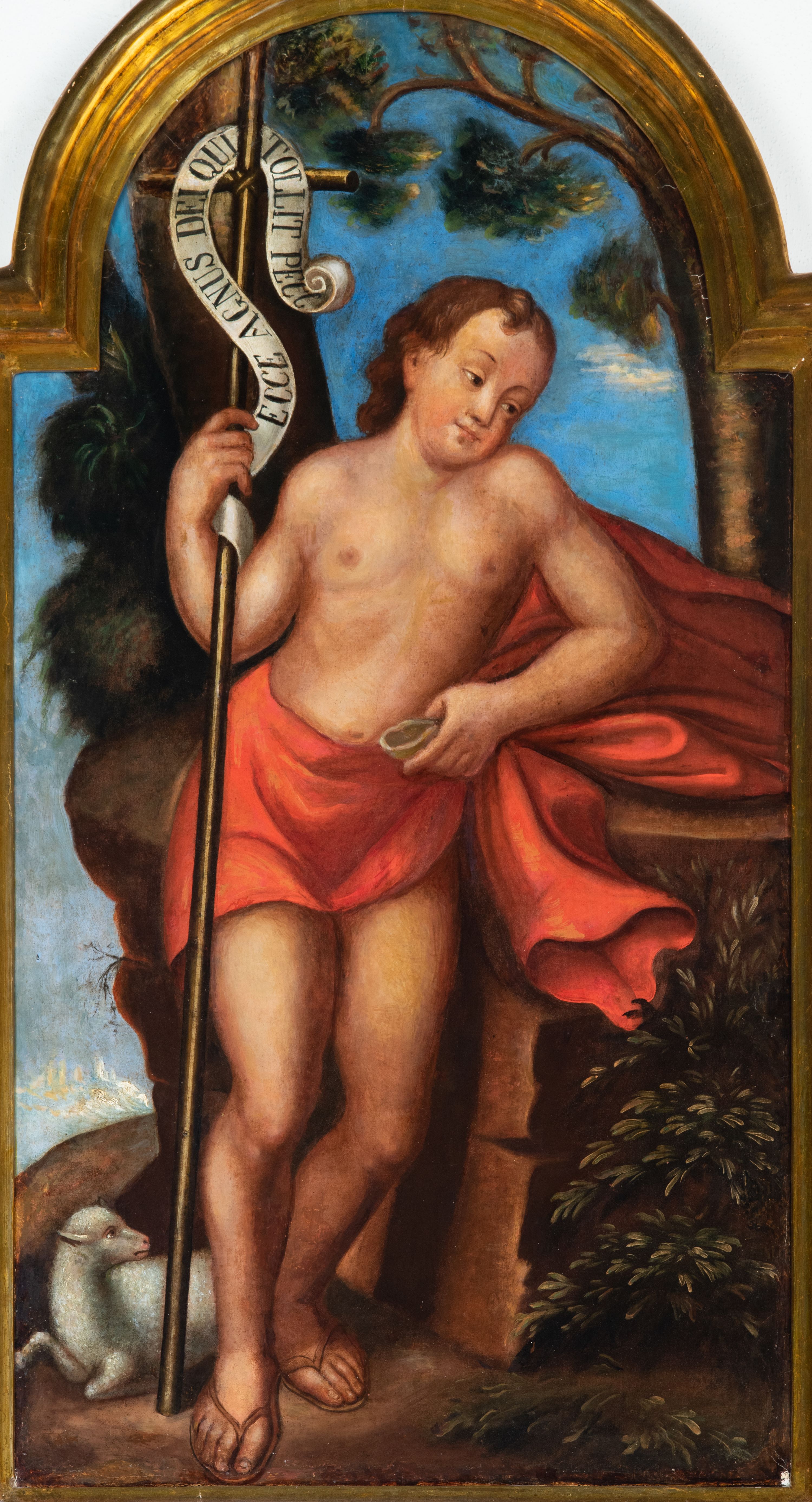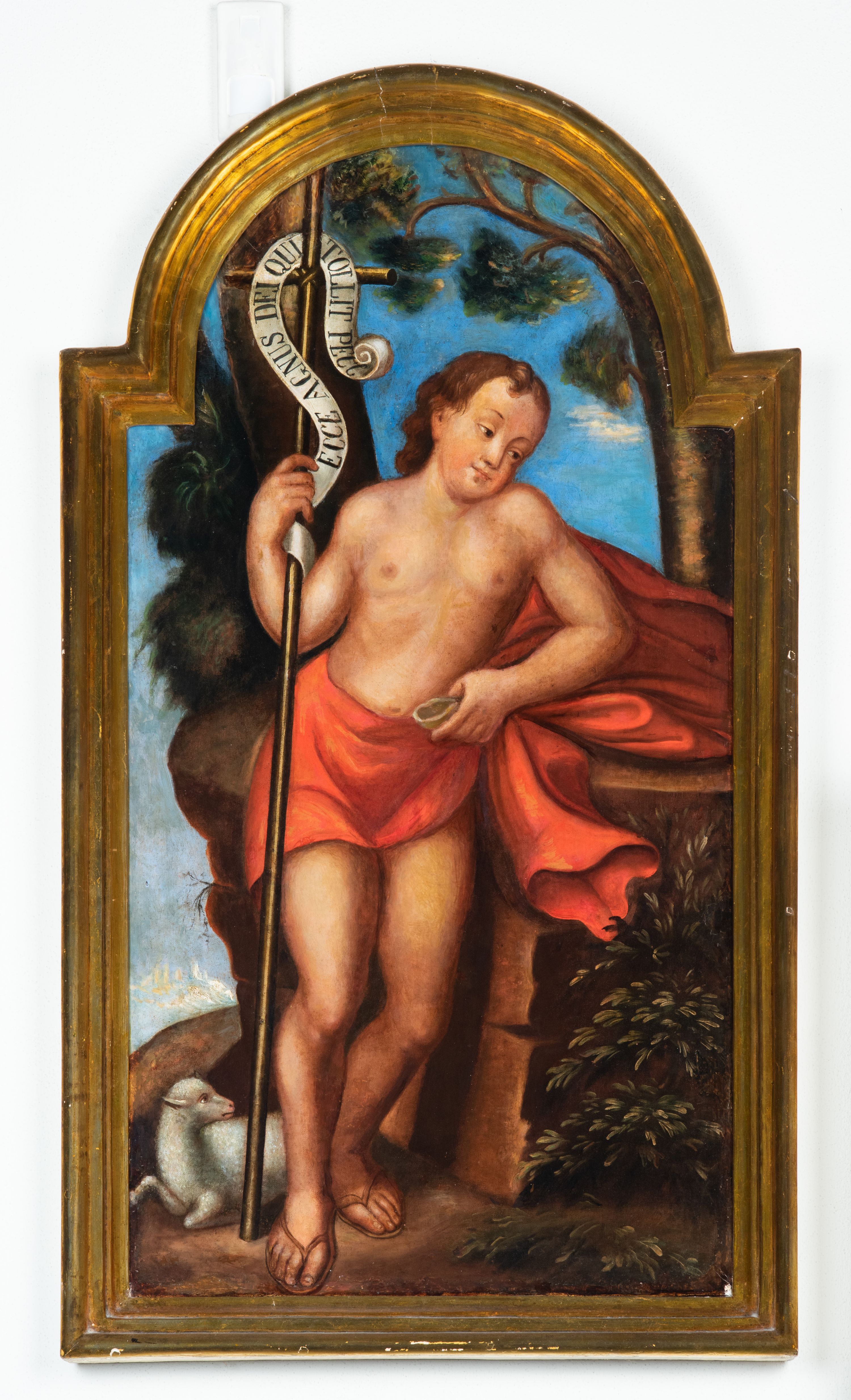 Probably, the painting was produced at the turn of the 17th and 18th century and it was an altar painting. The painting shows Saint John the Baptist – a hermit, prophet, son of Zechariah and Elisabeth. Saint preached about the need for repentance and prepared the way for the coming of the Messiah. Both a cross with the inscription "ECCE AGNUS DEI QUI TOLLIT PECC[ATA]" and a lamb are his attributes - referring to a scene described in the Gospel of Saint John. Unfortunately, the author of the work remains unknown.